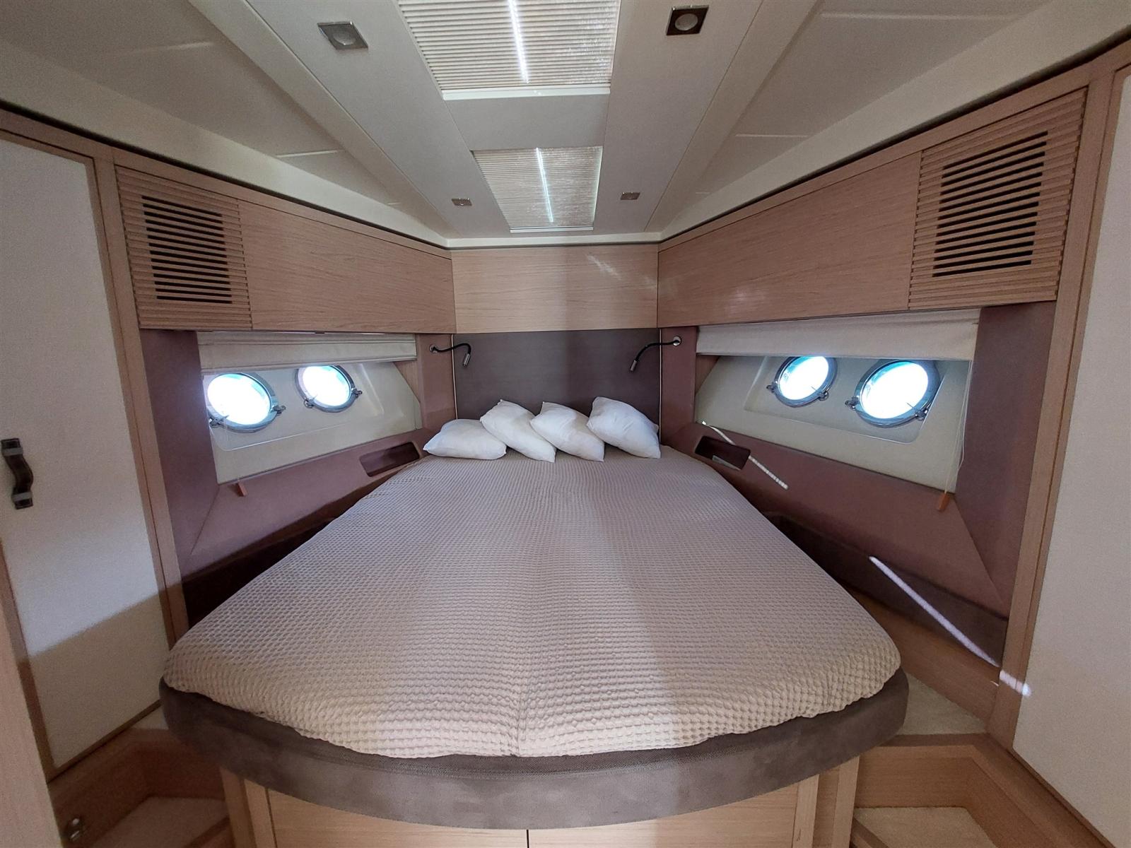 Boiler (60 Litri), Inverter (24 V / 12 V), Pavimento interno in legno, Prese interne 12v, Prese interne 220v, Serbatoio Acque Nere, 3 WC marino elettrico (Vacuflush).