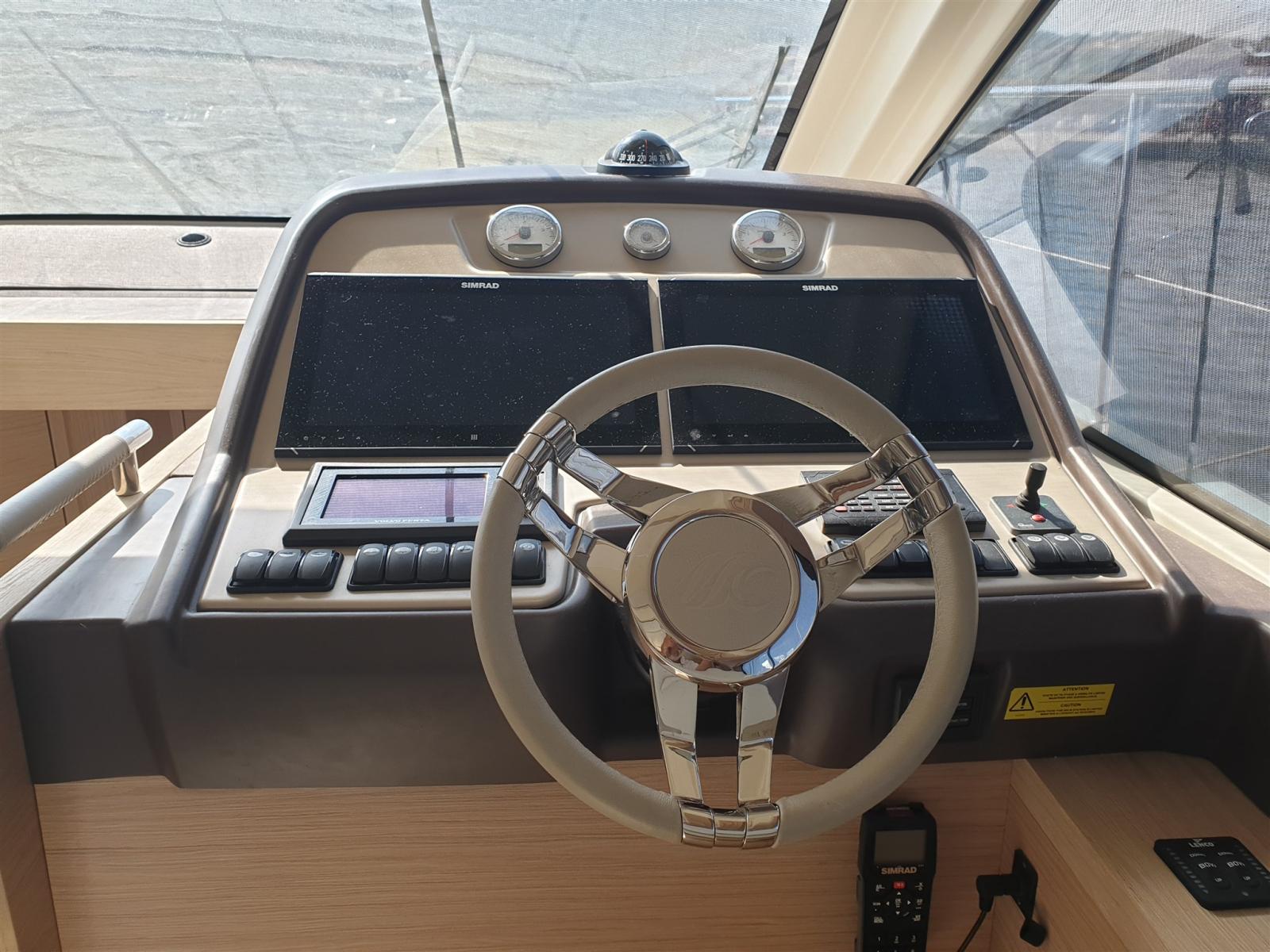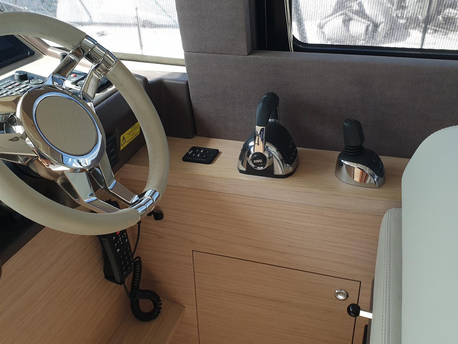 Angolo barra, Antenna radar, 2 Comando motori elettronico (Volvo Penta), 2 Computer di bordo (Volvo Penta), Contametri catena, Contamiglia (Simrad), GPS (Simrad), 2 Radio VHF, Sedile Copilota.