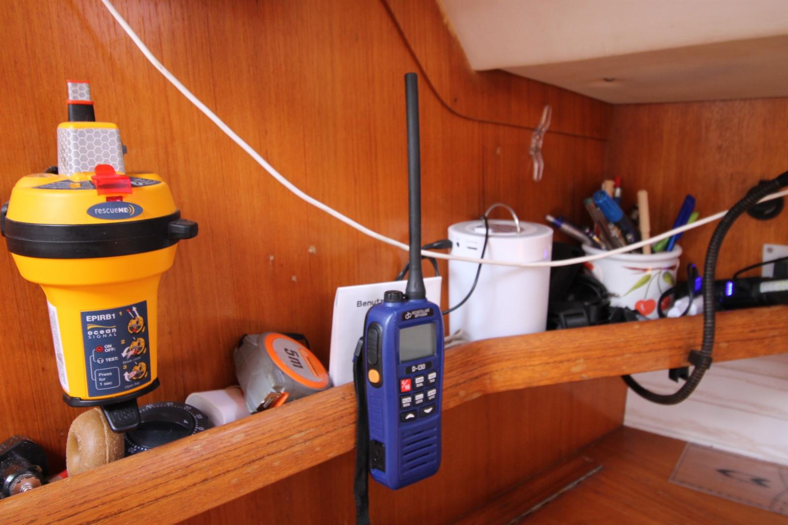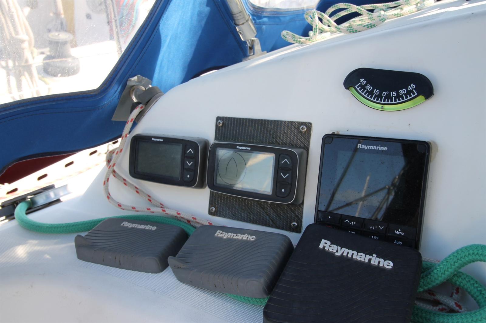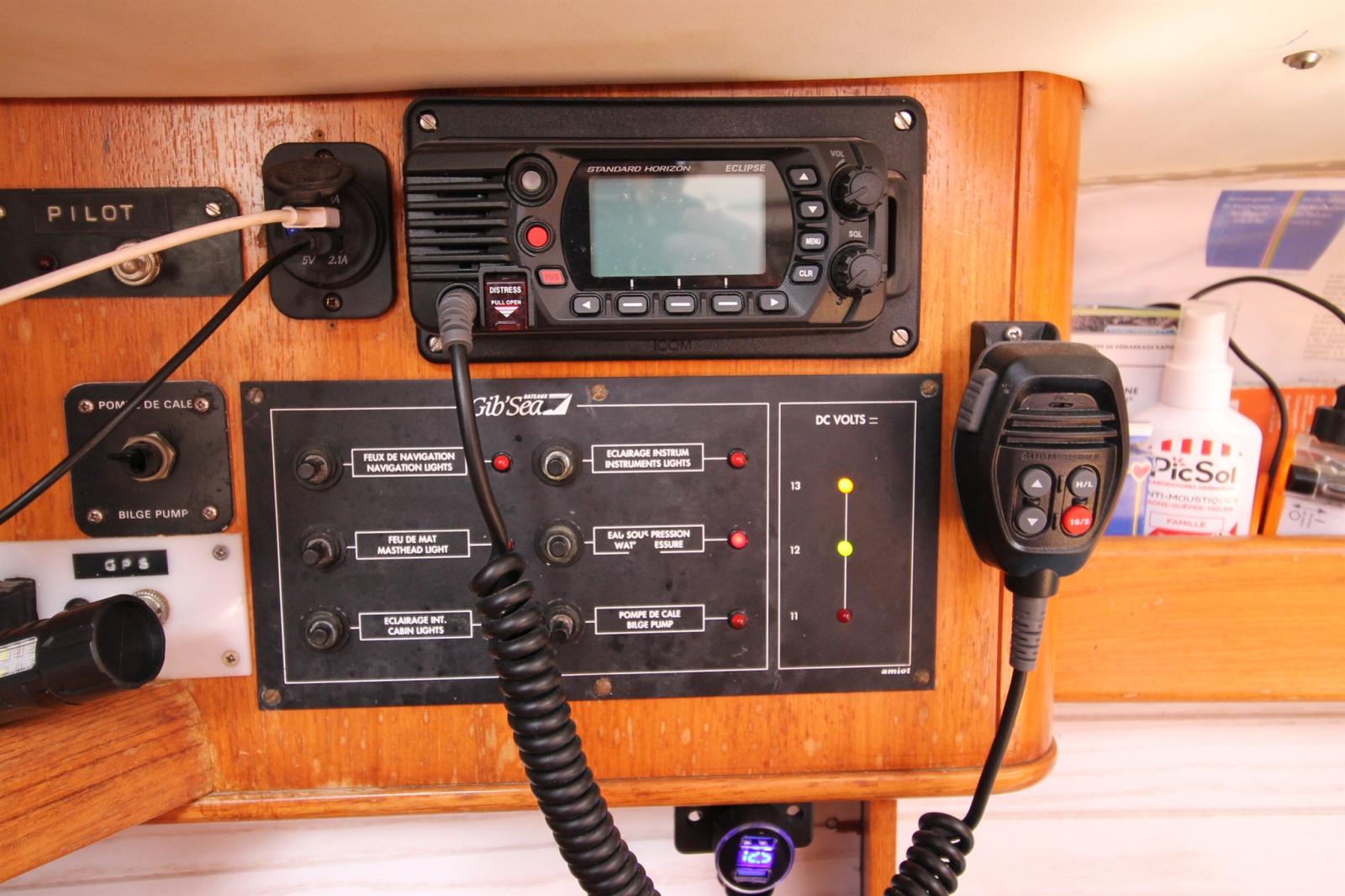 Contamiglia (Raymarine I40), DSC vhf (STANDARD HORIZON), GPS (LOWRANCE ELITE 7M), Pilota automatico (pupitre, calculateur et unité de puissance remplacés en 2021), Radio VHF (portable), Sonar (raymarine I40), Stazione vento (Raymarine I40 WIND).