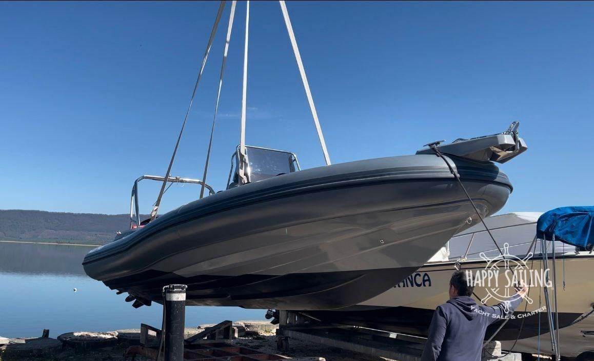 Gommone di 8 metri come nuovo con motore mercury 225cv con solamente 130 ore moto, comodo bagno. in mare solo 3 mesi l'anno