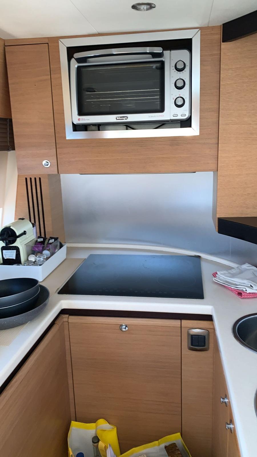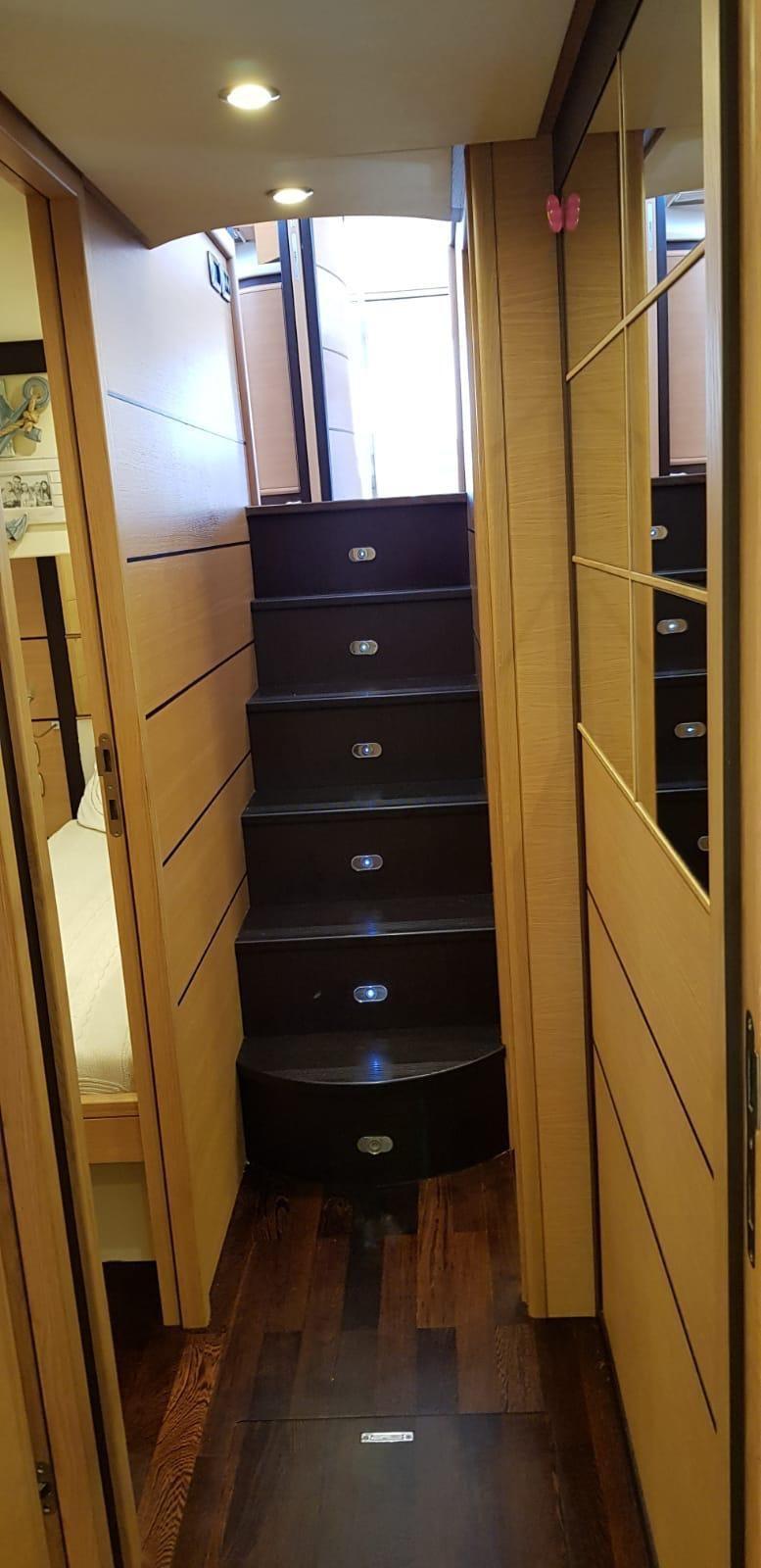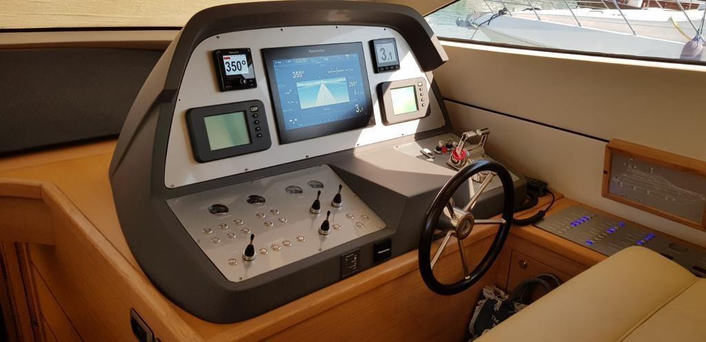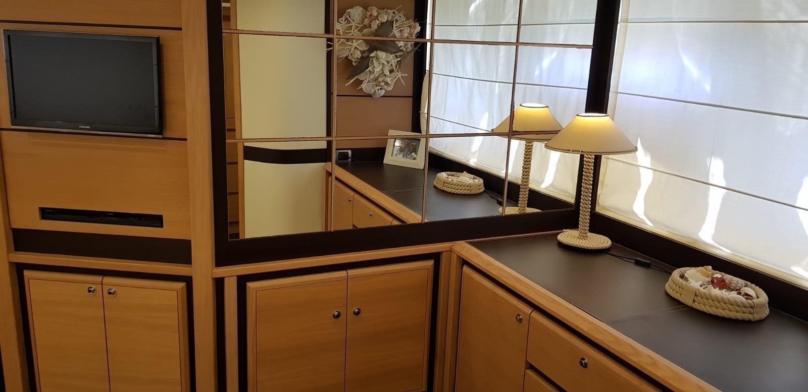 Tende elettriche, teak interno , porta laterale elettrica. porta vivande con chiusura elettrica. Tenda prendisole sul prendisole di prua.