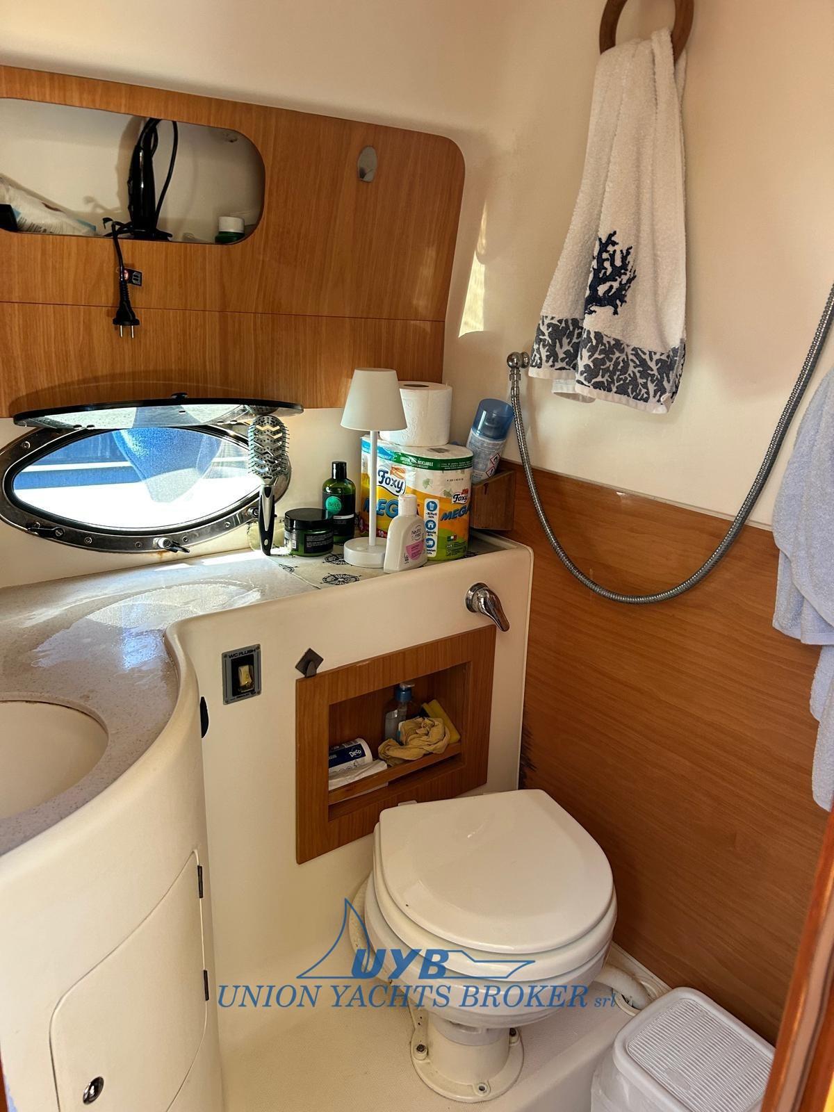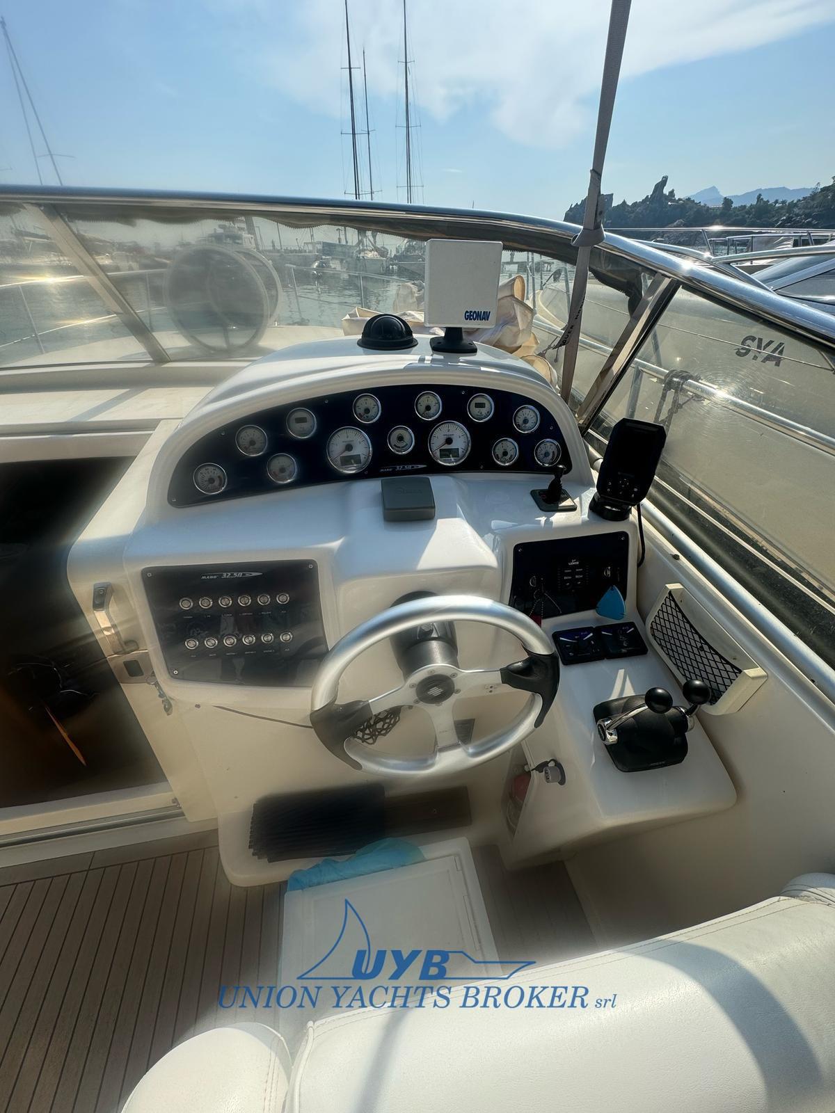 Installa: Gps/eco, manette elettroniche con sistema evc, elica di prua,aria condizionata,cavo 220 con caricabatterie, cuscineria completa ,tendalini completi,doppio frigo (interno ed esterno) , lavabo ,wc elettrico separato,verricello salpaancora con contametri quick,apertura portellone sala macchine elettromovimentata,boiler,full teak.