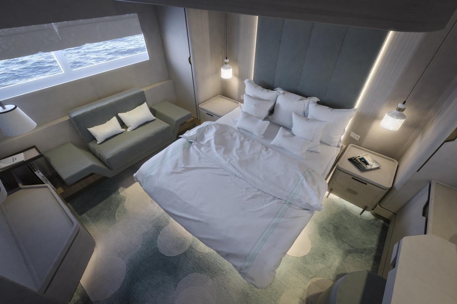 CABINA VIP - Letto matrimoniale con materasso e cassettoni.