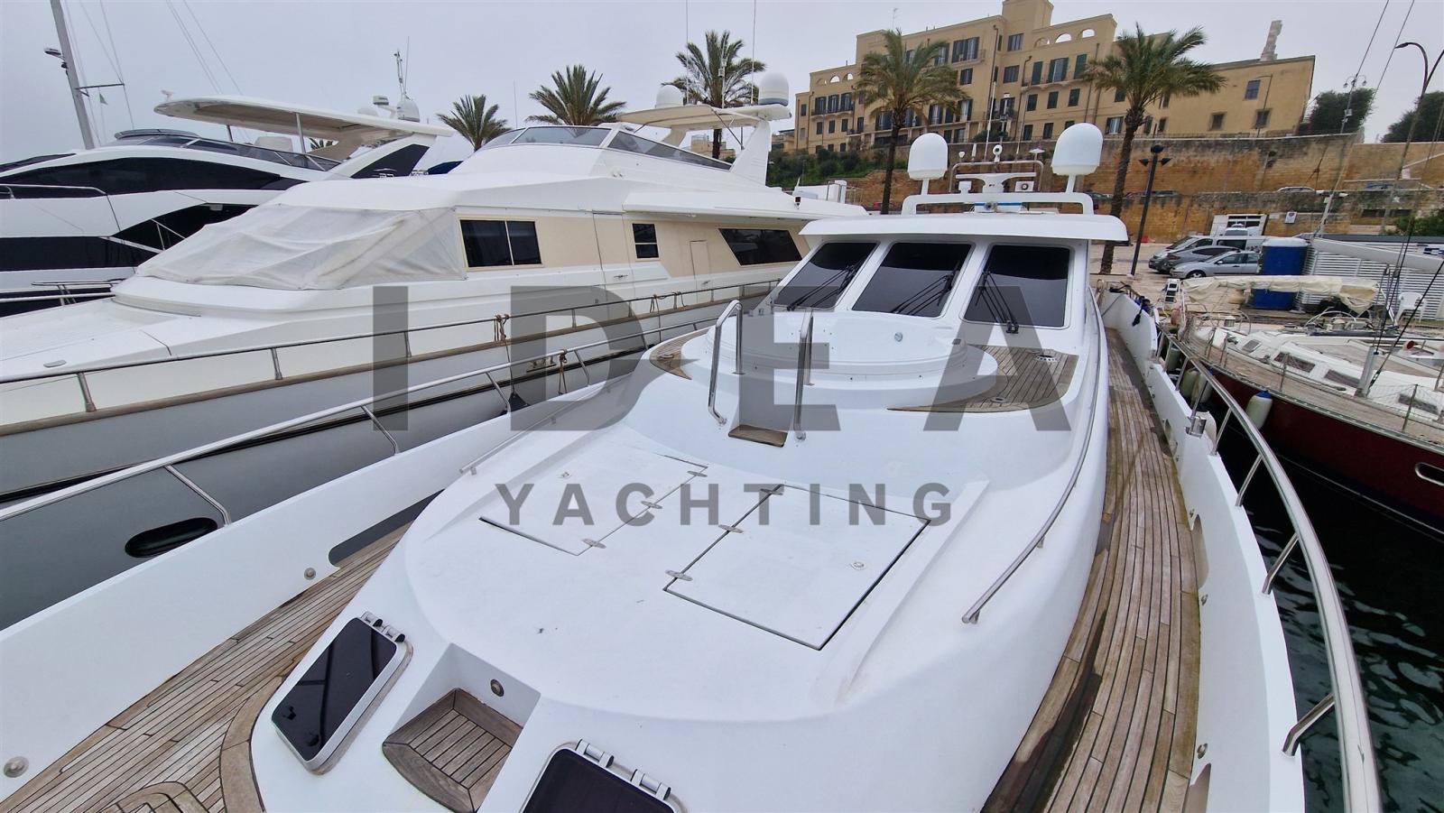 Allarme fumo/gas, 2 Allarme motore, Allarme sentina, Ancora (Pool Steinless Steel with 120m chain 14mm), Autoclave, Camminamenti laterali in teak, Caricabatterie (Mastervolt), Doccia esterna, Elica di poppa - stern thruster (hydraulic), Elica di prua - bow thruster (hydraulic), Faro orientabile, Impianto antincendio, Lavandino nel Pozzetto, Luci di cortesia, 3 Luci subacquee (Blue), Passerella (Besenzoni electro-hydraulic), Piattaforma (Tenderlift (overhauled in 2022)), Pompa di sentina automatica, Pompa di sentina manuale, Porta ingresso, Porta laterale (on the starboard side), Pozzetto Teak, Presa 220V banchina, Presa acqua banchina, Raddrizzatore, Rollbar, Salpa Ancore Idraulico, Scaletta da bagno (manual), Selle per Tender, Stabilizzatori (Vetus fins stabilizers), Tavolo pozzetto, Tientibene con cancelletti, Tromba, 2 Winch tonneggio di poppa (Lewmar), Winch tonneggio di prua (Lofrans).