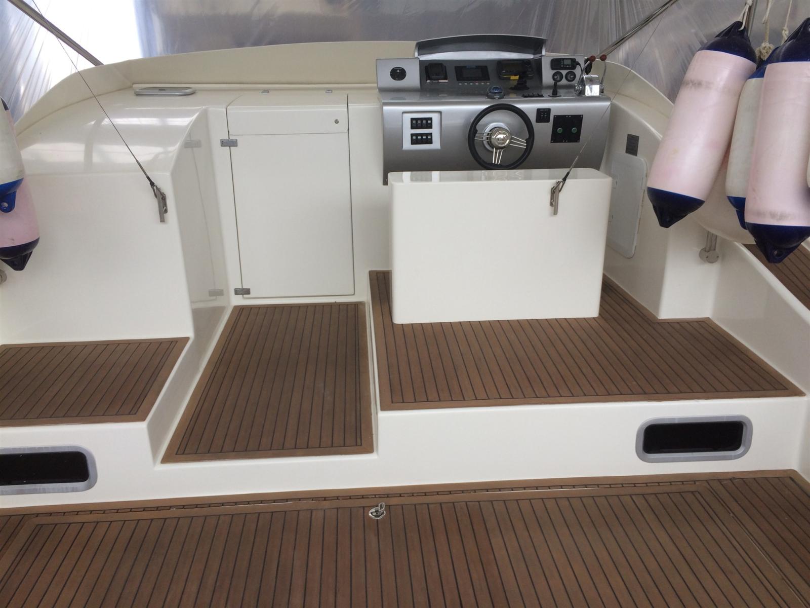2 batterie 180°, carica batterie, ancora delta lewmar + 50mt catena 8mm, salpa ancora elettrico 1500W, ancora di rispetto con 50mt cima piombata, doccia esterna, presa acqua in pozzetto, piattaforma di poppa, 3 pompe di sentina automatiche, pozzetto, coperta e plancetta rivestite in teak sintetico, 2 passa uomo + oblo bagno + 2 finestre cabina di poppa, 6 bitte acciaio, presa 220V banchina, elica di prua, luci di navigazione a led, luce di fonda, TTop in tubo di acciaio lucido da 40mm, tendalino su supporto elastico 3.5 X 3.5 mt