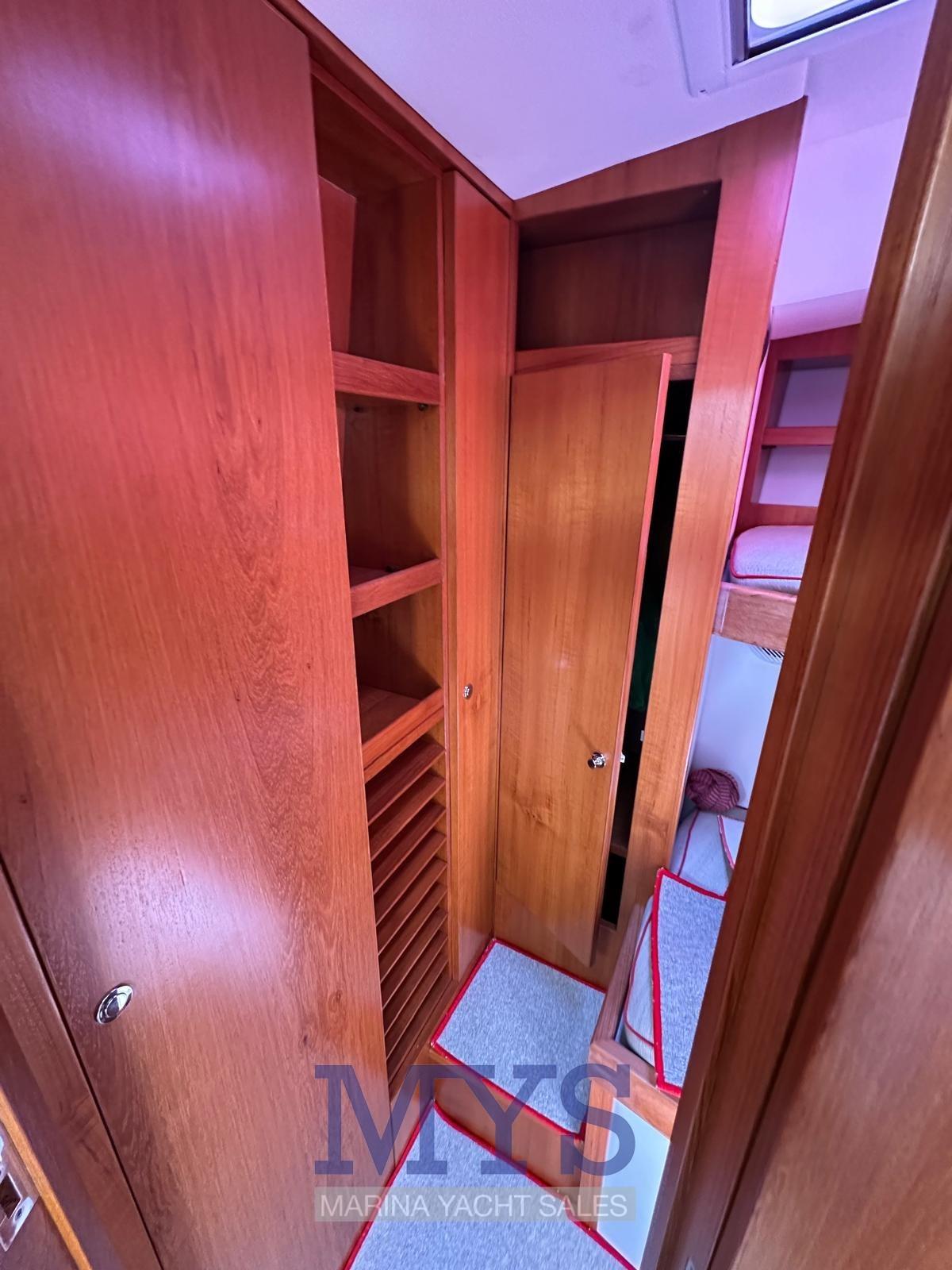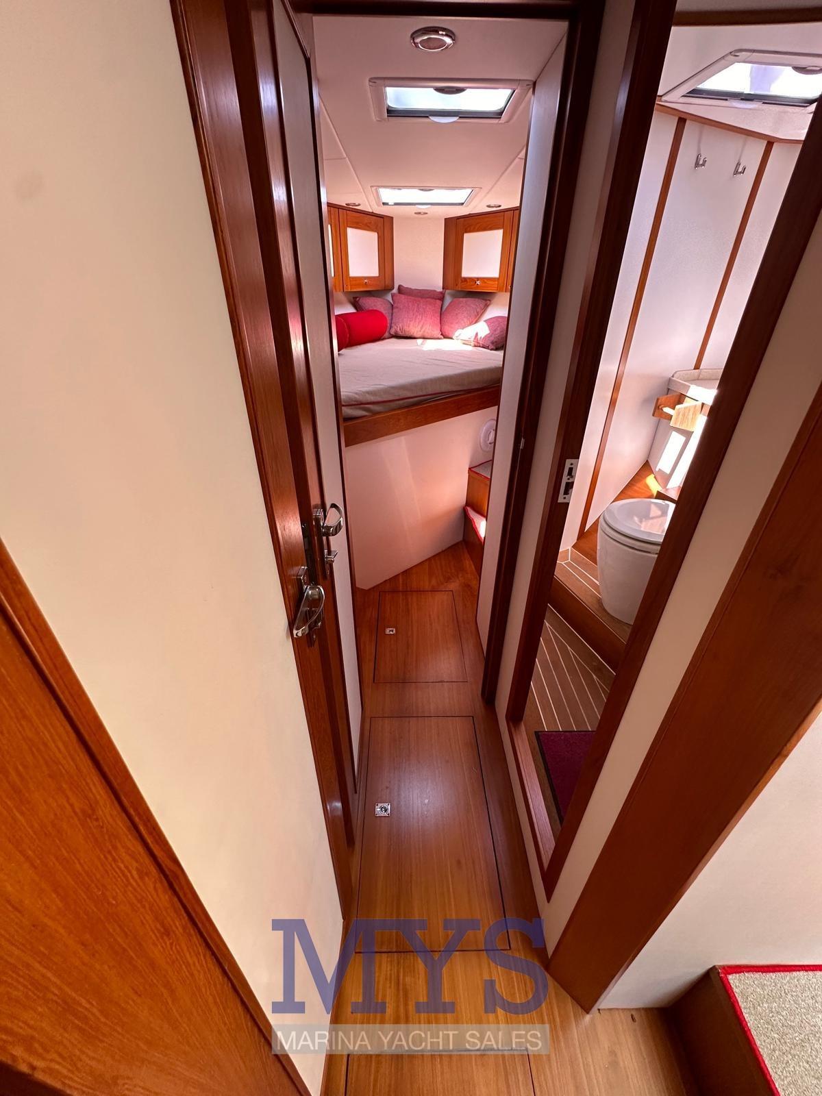 1 Cabina matrimoniale di prua con alza letto elettrico, spazio utile per stivaggio