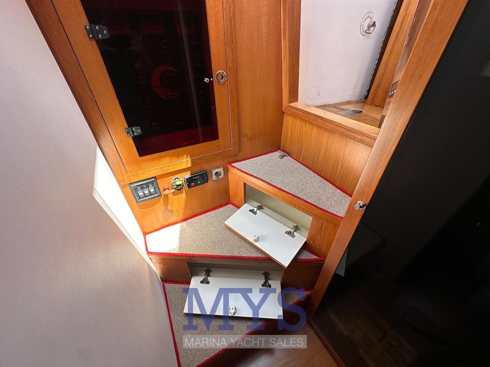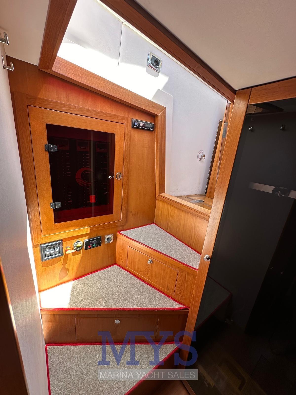 Allarme motore, Autoclave, Doccia esterna, Flap idraulici, Indicatori Flaps, Luci subacquee, Piattaforma, Pompa di sentina automatica, Porta ingresso, Presa 220V banchina, Presa acqua banchina, Salpa Ancore Elettrico, Scaletta da bagno, Tromba.