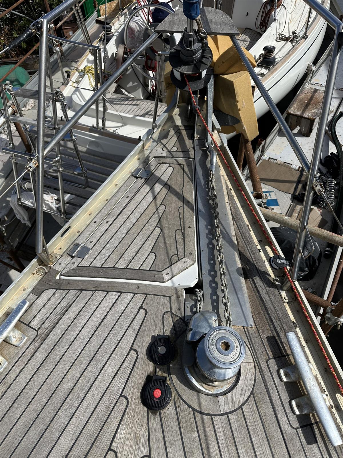 Autogonfiabile (scaduto), 3 Batterie (2x100 1x150 motore 2023), Camminamenti laterali in teak, Doccia esterna, Motore ausiliario, Pompa di sentina manuale, Pozzetto Teak, Presa 220V banchina, Salpa Ancore Elettrico, Sartiame spiroidale (Originale), Scaletta da bagno, Supporto motore fuoribordo, 6 Winch.