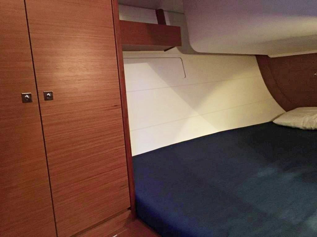 3 cabine matrimoniali e 2 bagni, 9 posti letto (6+3), interni essenza Moabi, fughe bianche sul pagliolo, motore Volvo 60 hp, elica a 3 pale abbattibili, randa steccata e genoa avvolgibile, sprayhood, bimini, elettronica completa Raymarine con gps in pozzetto, fondo pozzetto e spiaggetta in teak, barbecue e lavello in pozzetto, panche in pozzetto doppie estensibili (diventano due ampi prendisole), cuscinerie dinette in ecopelle, ecc.