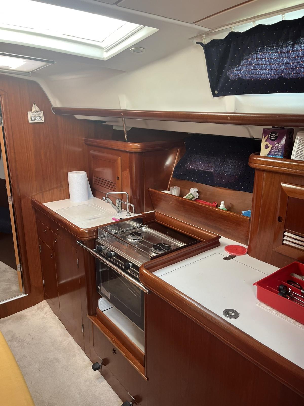 Beceteau Oceanis Clipper 393 versione tre cabine due bagni. Ampia dinette con cucina attrezzata. Teak e moquette. Impianto acque nere, riscaldamento webasto , pilota automatico , prese a mare motore 2025, randa steccata , fiocco avvolgibile, predisposiizione trinchetta. VHF raymarrine 215E BSC, Charplotter RAymare RC435. elica tre palle cappottina binimi lazy bag 2024.