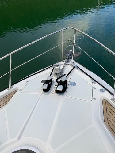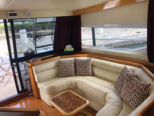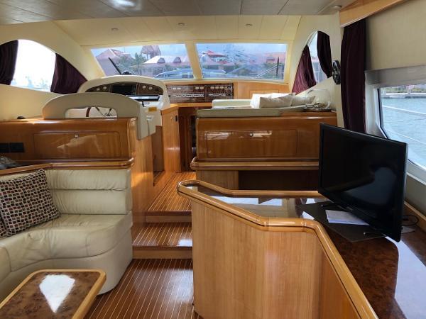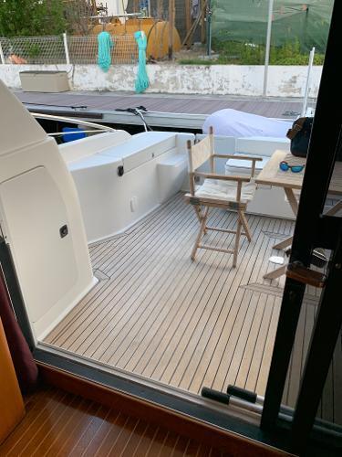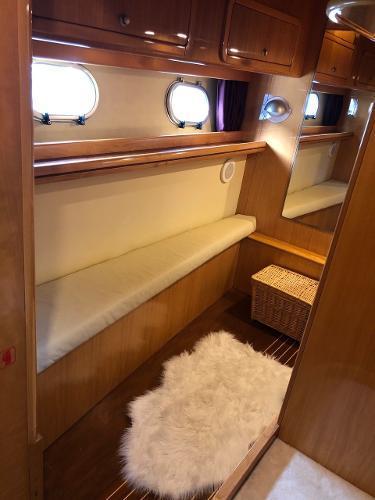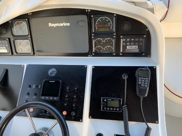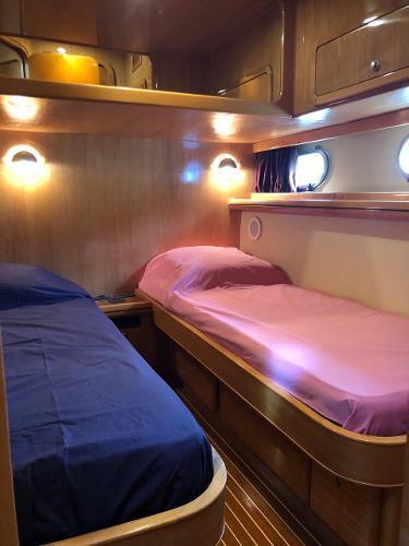 Additional InformationLayout1 double cabin2 single cabins (one convertible into storage)1 x crew cabin2 x bathrooms / electric toiletsInterior Equipment24v/200 vInverter4 x service batteriesWater capacity – 800 literFresh Water makerAir conditionWashing machine3x RefrigeratorMicro wave ovenStereo - FusionEngine & Propulsion2 x Caterpillar,3196 DITA – 809CV – 600 HPBow thrusterFuel capacity : 2000 lFuel consumption L/H: 60/80Cruising speed : 22 knElectronicsDepth sounder- RaymarineGPS x 2 – RaymarineRadar – RaymarineAutopilot – RaymarineVHF – IcomDeckWindlass – electricAnchor – Rocna 25kg,70 meter chainBiminiSwimming ladderCockpit showerHydraulic GangwayOthersDinghy – 5 paxOutboard Engine- Yamaha 15HPLiferaft - 8 pax