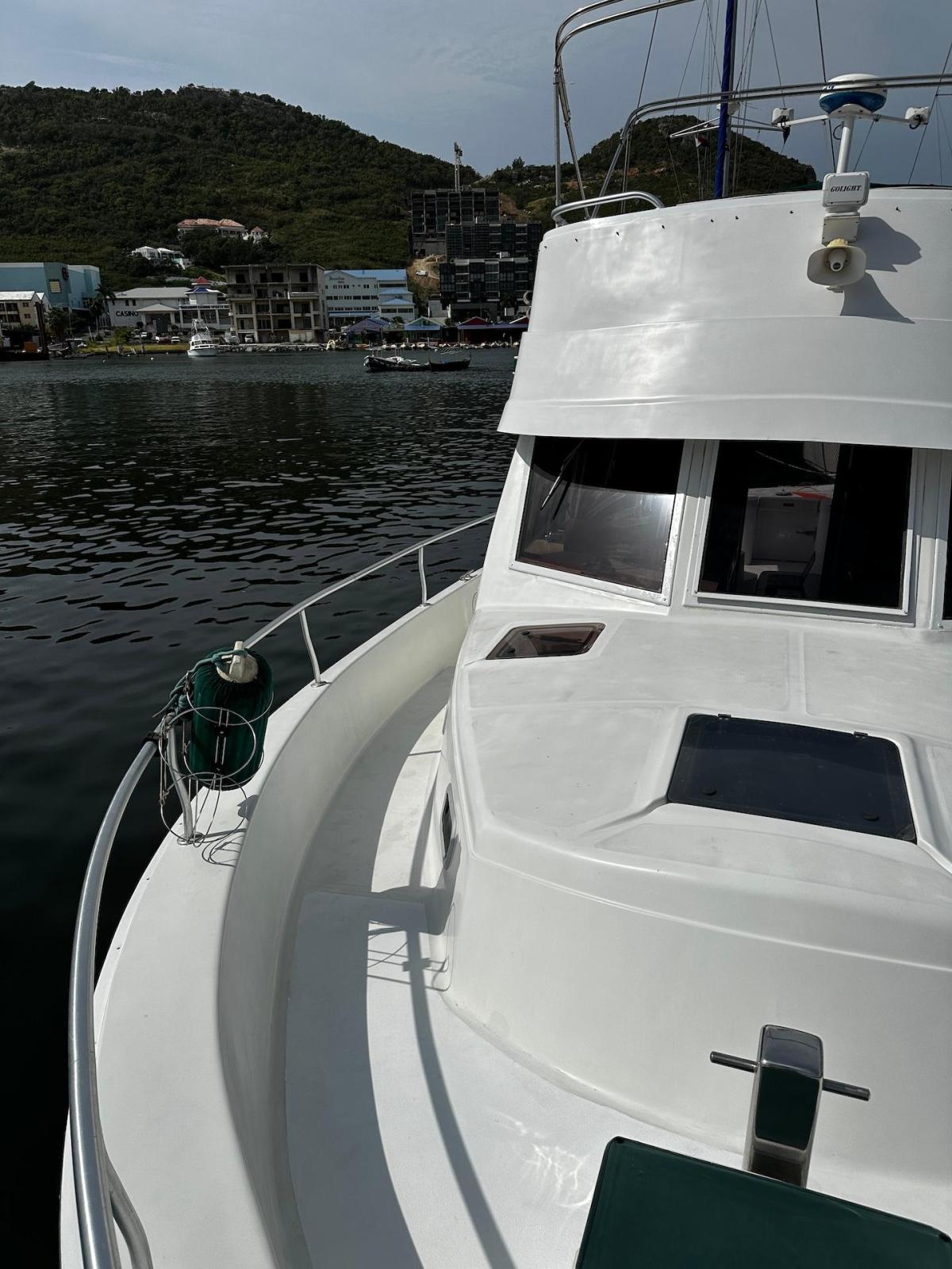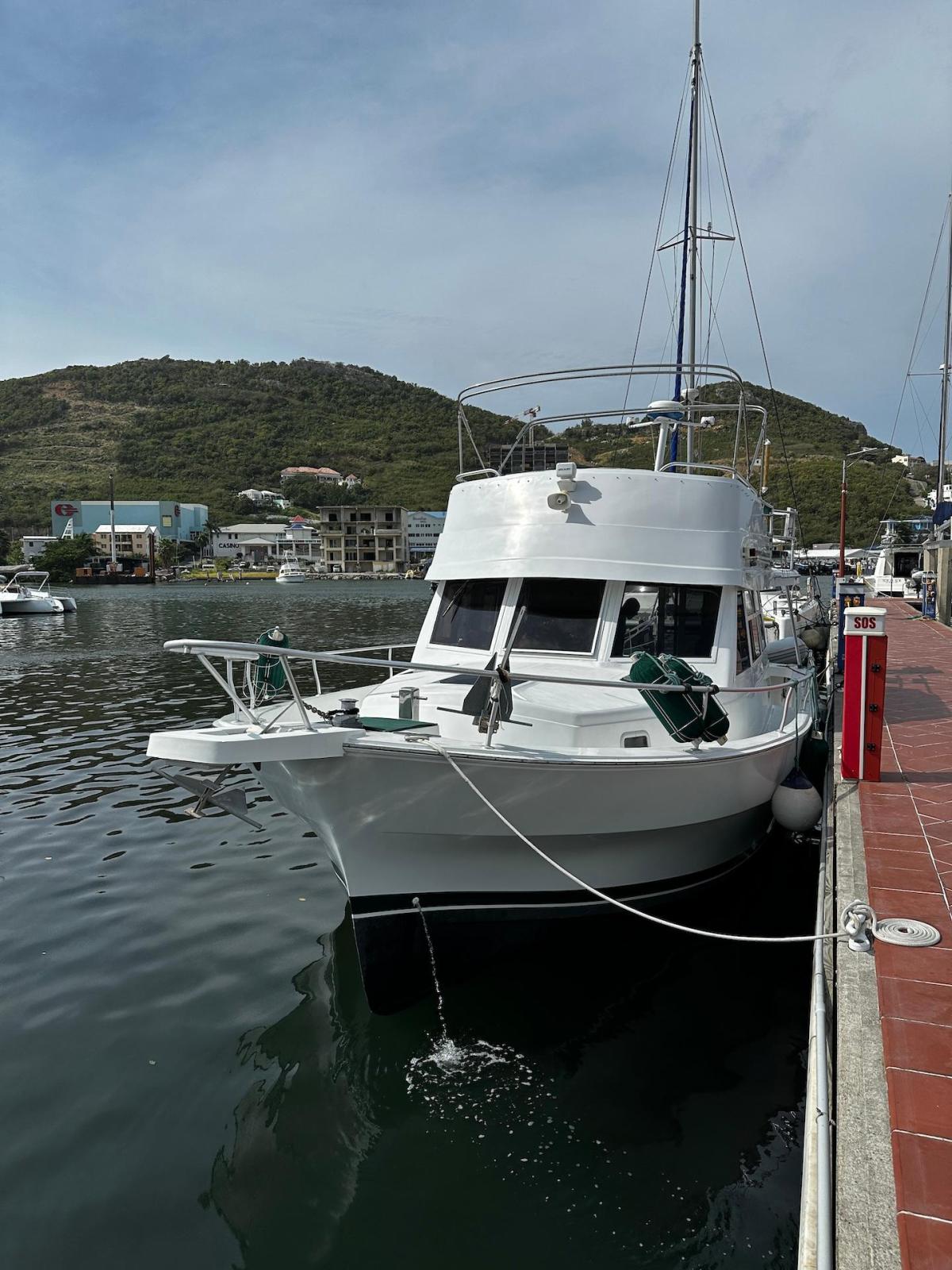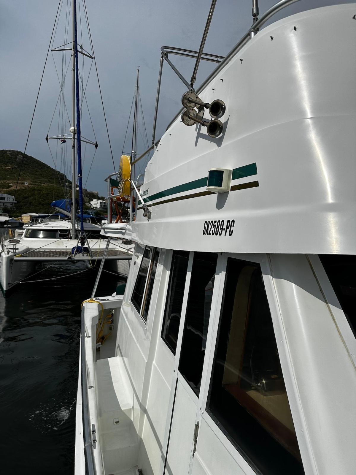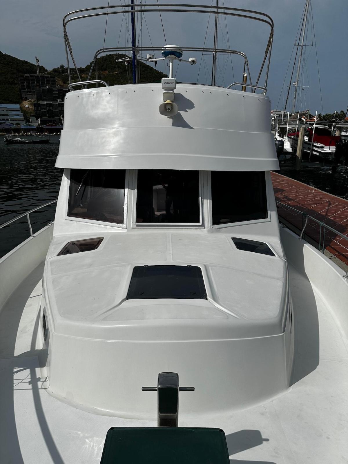 Specification2023/2024 WORKSComplete engine overhaul, everything that needed to be done was done, all oils and filters changed, turbo cartridge, turbo ace housing, turbo rebuild, seawater pump rebuild, engine anti-rust, rode and anodes, impeller, etc.FRESHWATER PUMP 2024Check all batteries + add liquidRepair water heaterRepair aft air conditioningChanged all bilge pumpsClean all bilgesBetter quality custom-made mattresses in the main cabinToilet repairsComplete polishing + waxing LAYOUT 1 x LARGE OWNER’S CABIN1 x CABIN W 2X SINGLE BERTH1 x BATHROOW W. ELECTRIC TOILET AND SEPARATE SHOWER1 X CONVERTIBLE SOFA INTERIOR EQUIPMENTAIR CONDITION MARINE AIR IN SALON AND CABINSFANSSALON CUSHIONS RECENTLY EXCHANGED SOFA FOLDABLE -QUEEN SIZECEILING LIGHTS – LED LARGE TV WITH DVD PLAYER RECENTLY RENEWEDSTEREO -Kenwood CD with fly bridge remote controlGALLEY 3X BURNER STOVE WITH OVEN FRIDGE WITH SEPARATE FREEZERBUILT IN MICROWAVEBUILT IN COFFEE MAKER ELECTRICITYGENSET – ONAN- Kohler 8EOZ INVERTER SOLAR PANEL 250 W W. SMART CONTROLLER4 X SERVICE BATTERIES – 2020ENGINE CAT 3116 – 300 HP- 1600 hrsBOW THRUSTER EXTERIOR EQUIPMENTDAVITS CHROMEDSAMSON POST AT BOW FLYBRIDGE WITH COMFORTABLE SEATING FOR 6 TO 8 PERSONREMOTE CONTROL FOR STEREO AT FLYBRIDGETELEPHONE INTERCOM SYSTEM FROM FLYBRIDGE TO GALLEYRADAR RAYTHEON - 2019LARGE CANVAS BIMINI AT FLYANCHOR EQUIPMENT:2 X Danforths, 150' chain/rope foot-operated controlsDINGHY - Aruba 11’ OUTBOARD - 15hp Yamaha MOORINGBIMINI TOP AND ECNLOSUREBBQ2 TV AND DVD