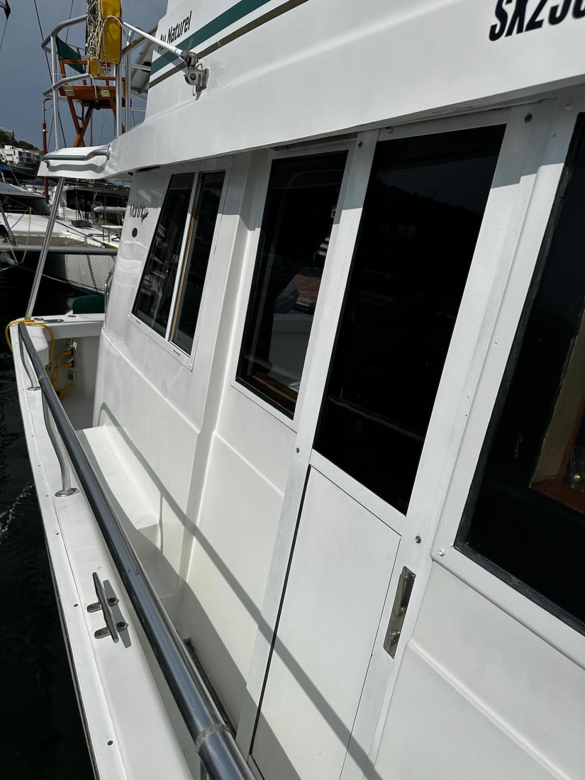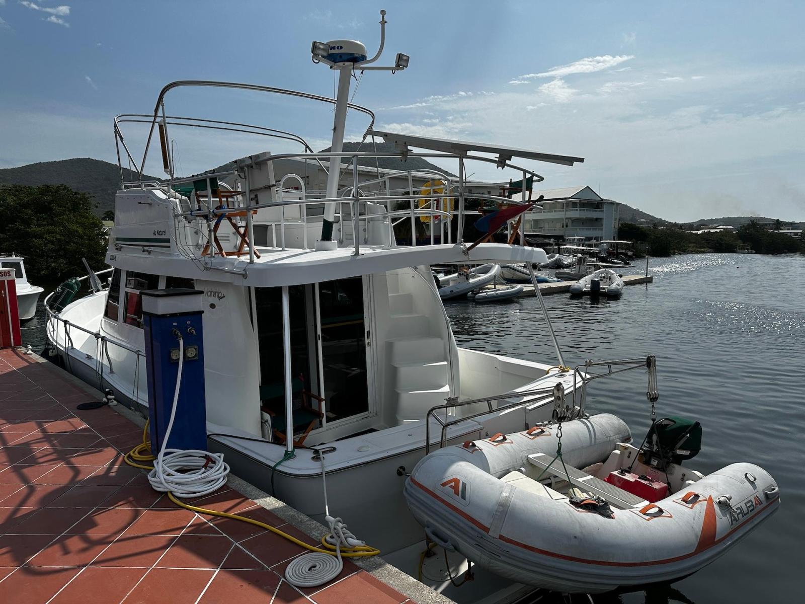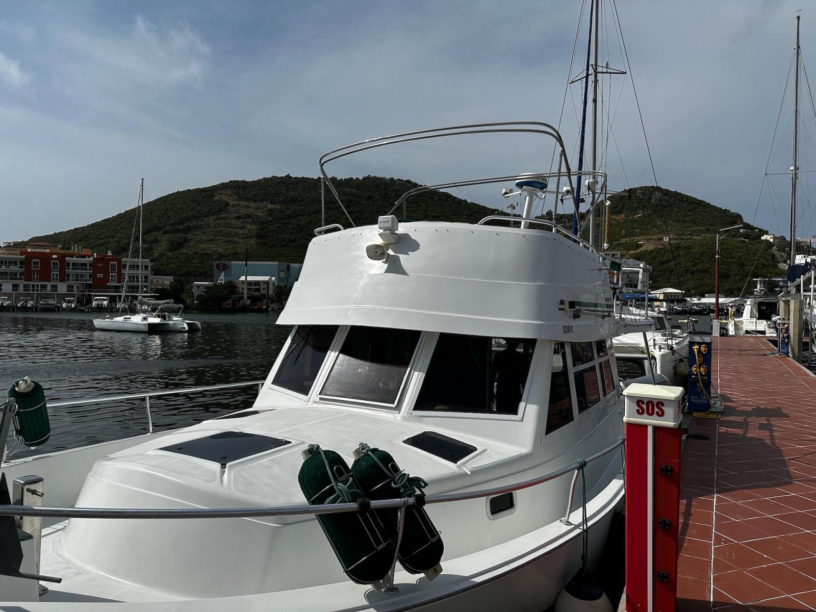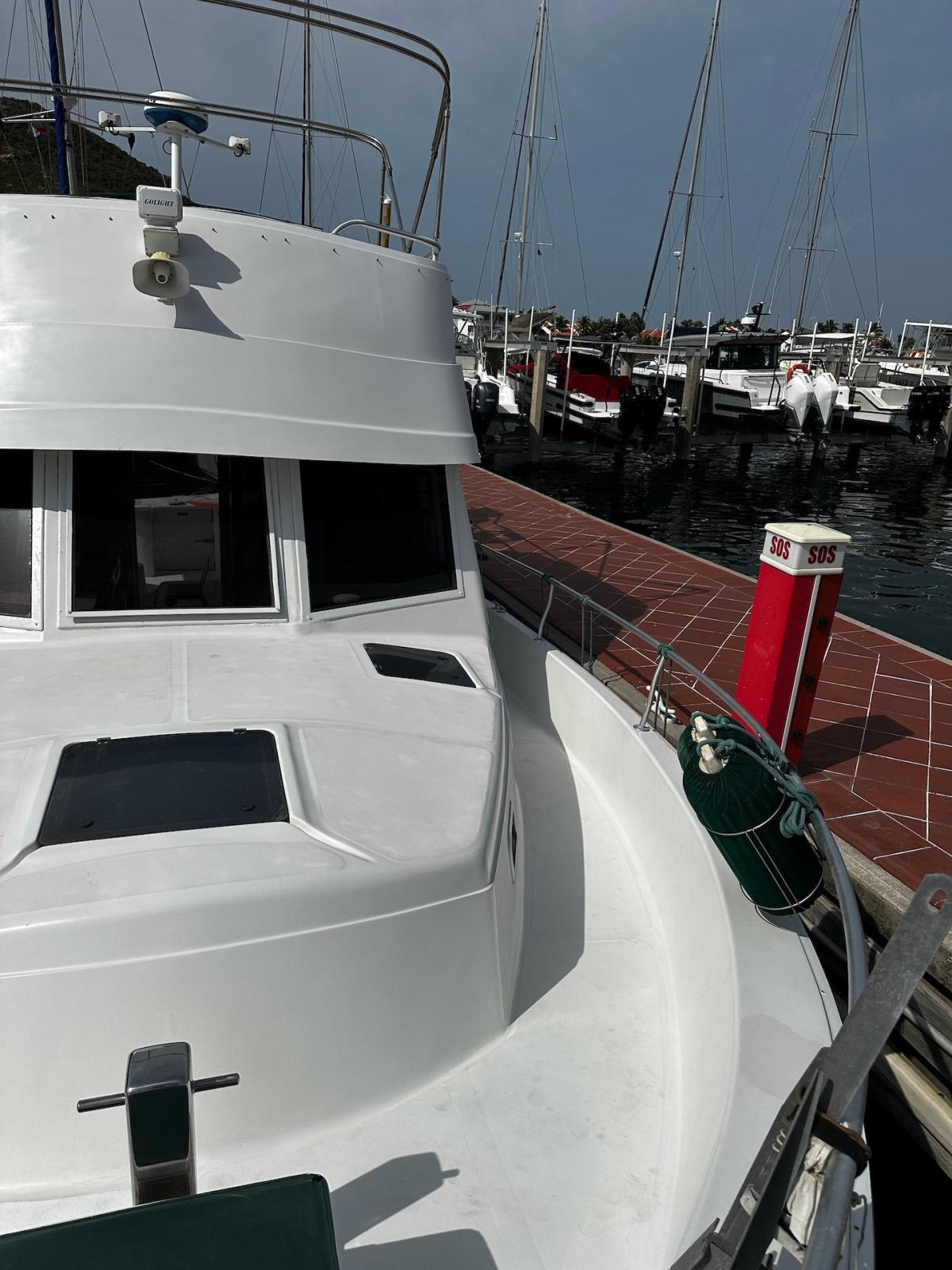 Specification2023/2024 WORKSComplete engine overhaul, everything that needed to be done was done, all oils and filters changed, turbo cartridge, turbo ace housing, turbo rebuild, seawater pump rebuild, engine anti-rust, rode and anodes, impeller, etc.FRESHWATER PUMP 2024Check all batteries + add liquidRepair water heaterRepair aft air conditioningChanged all bilge pumpsClean all bilgesBetter quality custom-made mattresses in the main cabinToilet repairsComplete polishing + waxing LAYOUT 1 x LARGE OWNER’S CABIN1 x CABIN W 2X SINGLE BERTH1 x BATHROOW W. ELECTRIC TOILET AND SEPARATE SHOWER1 X CONVERTIBLE SOFA INTERIOR EQUIPMENTAIR CONDITION MARINE AIR IN SALON AND CABINSFANSSALON CUSHIONS RECENTLY EXCHANGED SOFA FOLDABLE -QUEEN SIZECEILING LIGHTS – LED LARGE TV WITH DVD PLAYER RECENTLY RENEWEDSTEREO -Kenwood CD with fly bridge remote controlGALLEY 3X BURNER STOVE WITH OVEN FRIDGE WITH SEPARATE FREEZERBUILT IN MICROWAVEBUILT IN COFFEE MAKER ELECTRICITYGENSET – ONAN- Kohler 8EOZ INVERTER SOLAR PANEL 250 W W. SMART CONTROLLER4 X SERVICE BATTERIES – 2020ENGINE CAT 3116 – 300 HP- 1600 hrsBOW THRUSTER EXTERIOR EQUIPMENTDAVITS CHROMEDSAMSON POST AT BOW FLYBRIDGE WITH COMFORTABLE SEATING FOR 6 TO 8 PERSONREMOTE CONTROL FOR STEREO AT FLYBRIDGETELEPHONE INTERCOM SYSTEM FROM FLYBRIDGE TO GALLEYRADAR RAYTHEON - 2019LARGE CANVAS BIMINI AT FLYANCHOR EQUIPMENT:2 X Danforths, 150' chain/rope foot-operated controlsDINGHY - Aruba 11’ OUTBOARD - 15hp Yamaha MOORINGBIMINI TOP AND ECNLOSUREBBQ2 TV AND DVD