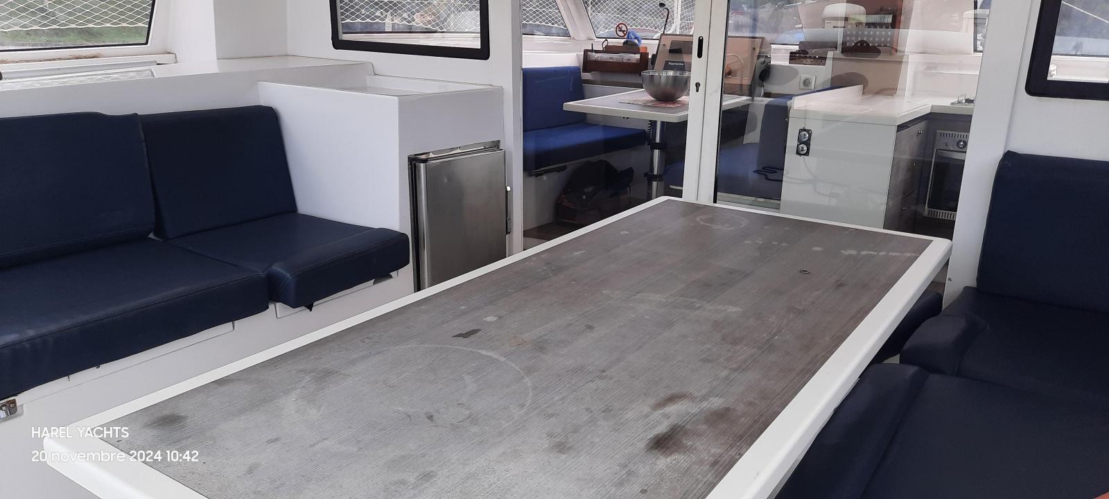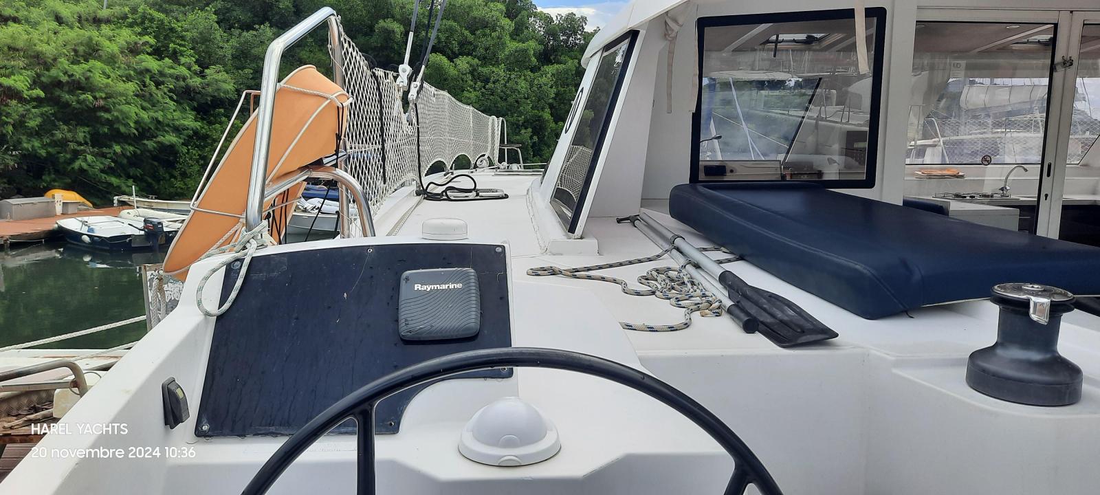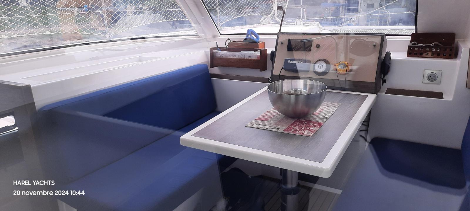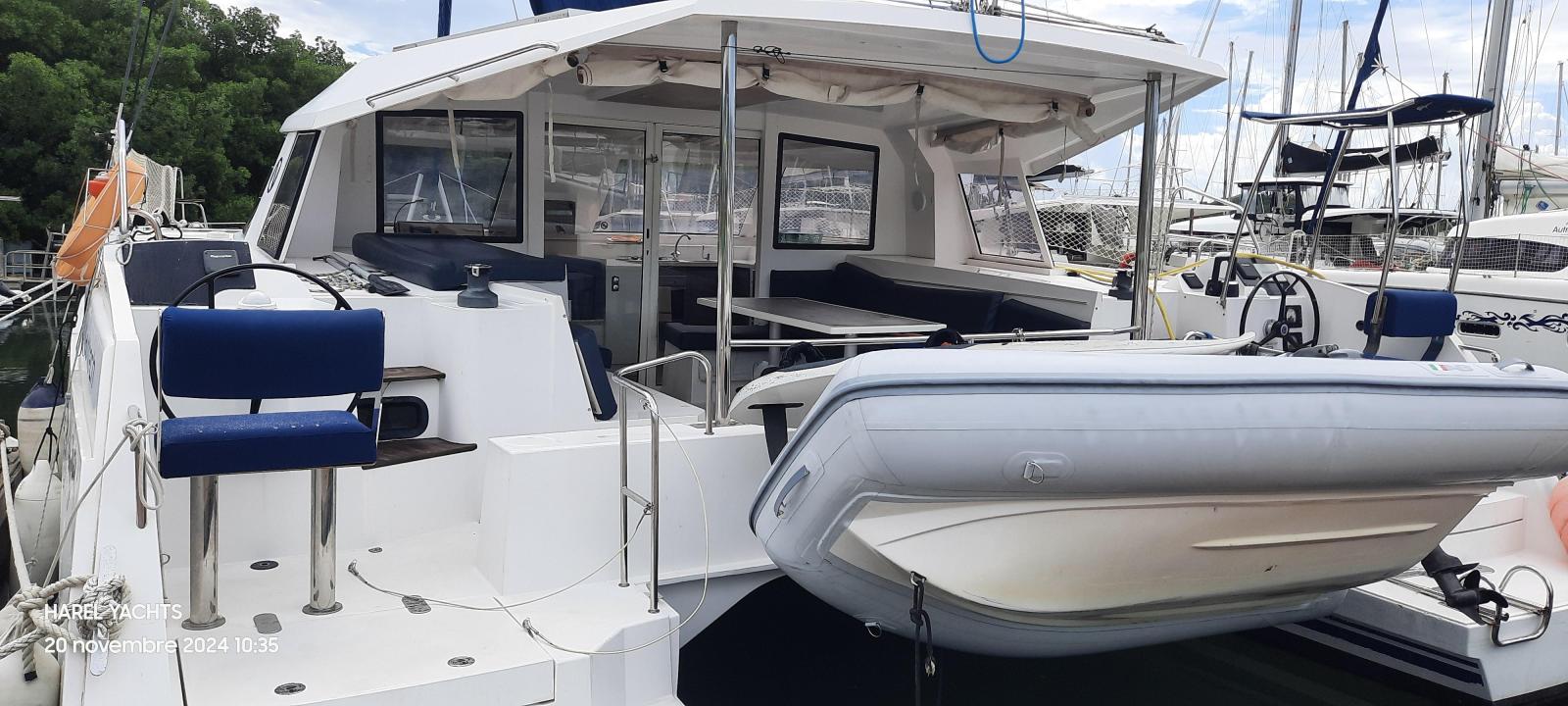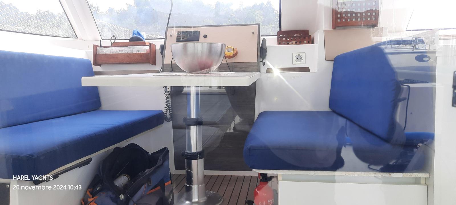 Specification4 double cabins2 toilet compartments2 YMC 30 HP engines. YANMAR( dec 2021 about 1000 h portside).( Stbd is 2014 about 4000 h)Fully battened mainsail ( INCIDENCES october 2022)Genoa Incidence ( October 2022)Rigging shrouds 2024Facnor furlerBimini for helmsmanSide and aft sun covers.Cockpit cushionsHolding tank for 2 toiletsPressurized seawater pump2 foredeck berths220 V mains supply in saloon.Refrigerator 90 L ( 2020)+ freezer 90 liters80-liter cockpit refrigeratorPreserver: 60 LitersWatermaker 60 L/H) AquabaseGPS Map with Antilles CartographyRAYMARINE autopilotAnalog wind indicatorRaymarine Multifunction Tridata indicator ( feb 2022)Multi FI 50 FI-504 indicatorGarmin GPS MAPRaymarine VHF + AISCar radio/MP3/2 speakers (2021)Xantrex link 20 battery controllerInverter Victron Phoenix 12/800 ve ( 2024)Solar panels 375 watts on frame + regulator900 amp service batteriesEngines battery 100 amp (2022)Anchor Kobra 25 kg ( 2022) chain jan 2024Dinghy AB. 9 feet (2022)SAFETY EQUIPMENT FOR 10 PERSONS