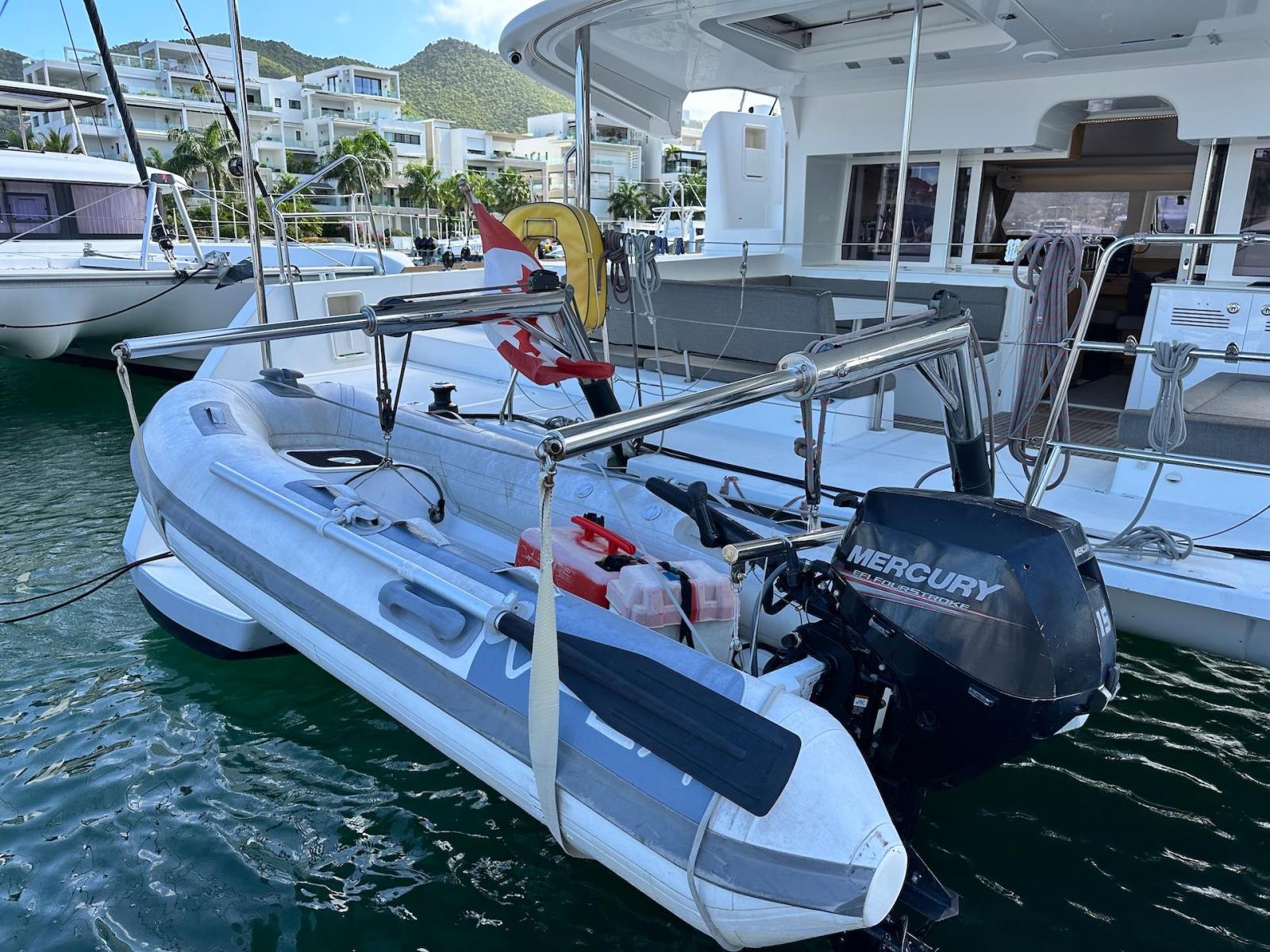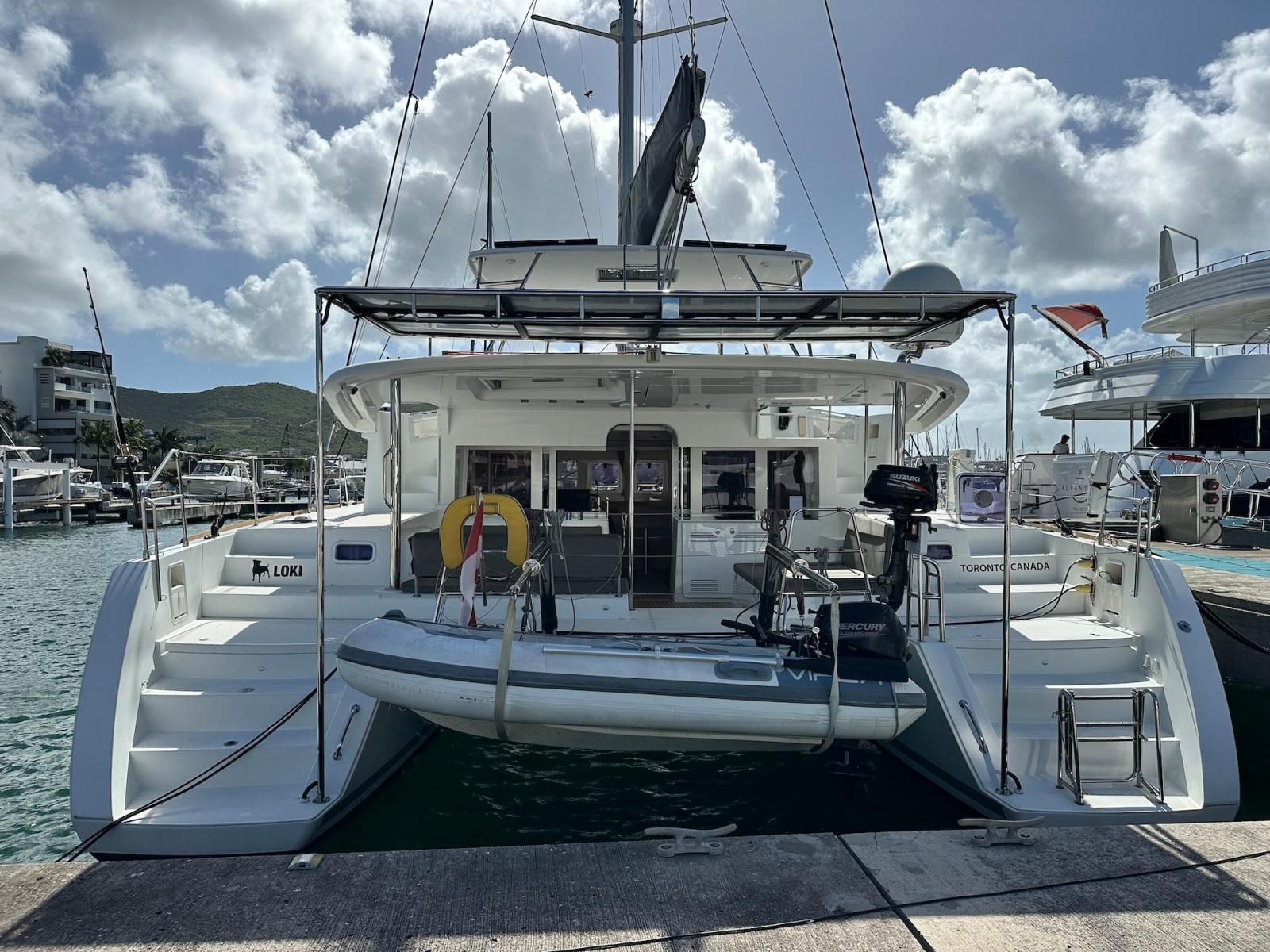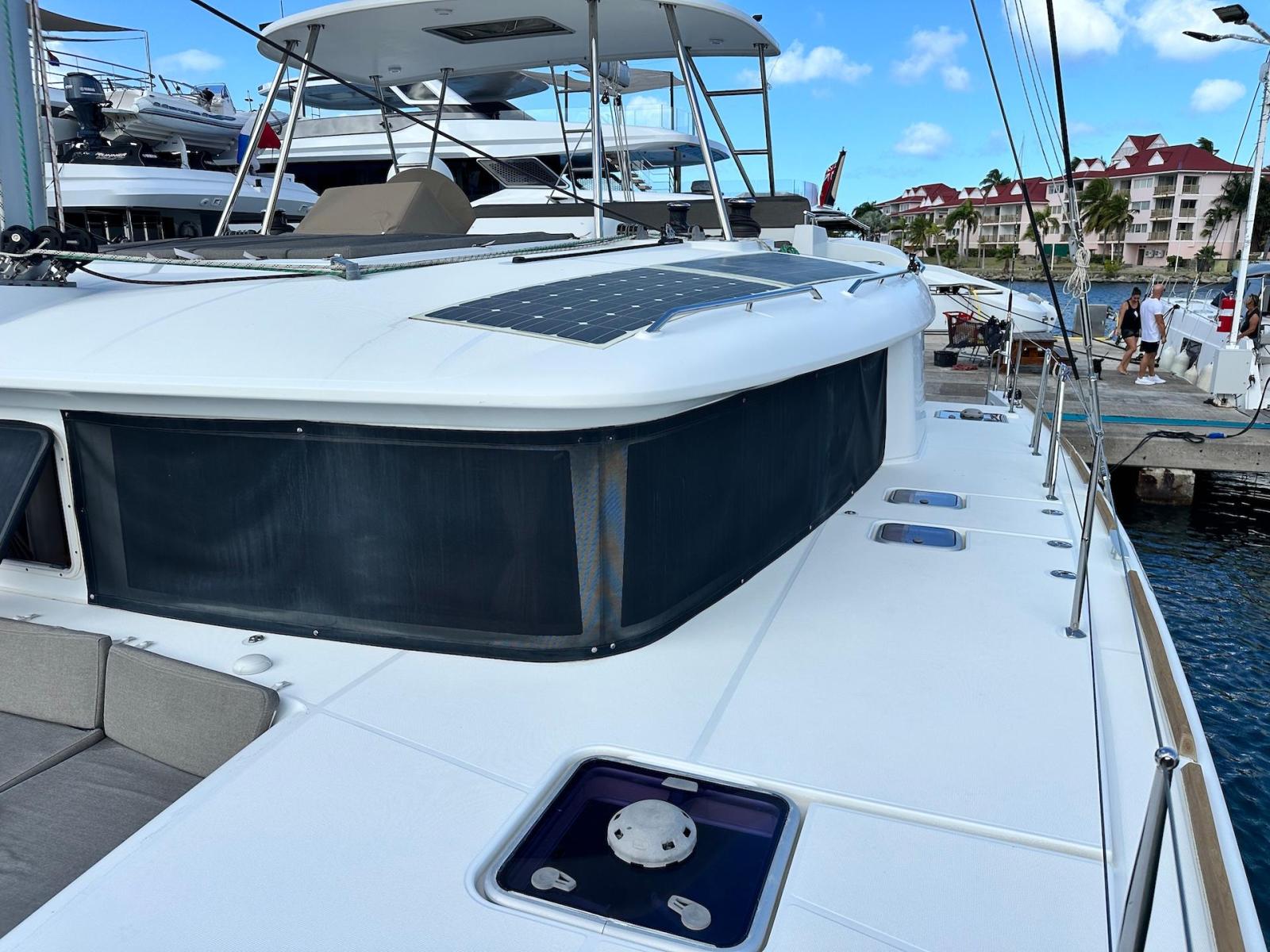 SpecificationInterior Equipment:• 4 x A/C Units (Cruisair 48,000 BTU) – Factory Installed• 6 x 2-speed fans• Watermaker AQUA-BASE• 6-filter + remineralizer drinking water filtration system (2023)• Washing Machine (BEKO, 5kg)• 2 x TVs with Raymarine Antenna• Fusion MS-RA 70 Sound System with 6 built-in speakers• Safe (Installed 2023)• New Carpet (2023)• New Mattress in Owner’s Cabin (2023) Galley:• Propane Oven & Stove (ENO) + 6 propane bottles• Refrigerator & Freezer (Frigonautica)• Microwave (Samsung)• Dishwasher (Electrolux)• Saltwater tap with foot pump• Blender & Coffee Grinder• Full set of dishes and glasses Bathrooms:• 3 x Electric toilets (saltwater flush with macerators)• 3 x Holding tanks• Shower in each bathroom• Teak floors Engines & Propulsion:• 2 x Yanmar 54HP (2,600 hrs)• 3-bladed folding props (Flex-O-Fold, 2021) Electrical & Power:• Cummins Onan Generator (11 KVA, 2,200 hrs)• 4 x Lithium Batteries (2023)• Solar Array (3,000 watts total, 2023):• 4 x 150W flexible solar panels (cabin top)• 4 x solar panels on stainless steel arch (2023)• Victron 5000W Inverter/Charger (2024) – Can power all A/C units Exterior Equipment:• Complete cushion set (cockpit, flybridge, forward sunbathing area)• Teak cockpit• Hardtop Bimini (2023)• Cockpit refrigerator (Waeco)• Passerelle• 48Kg ULTRA stainless steel anchor• 300-foot galvanized steel anchor chain (2023)• Windlass (QUICK) with chain counter + spare Delta anchor, chain & rode• Black trampoline replacement (2023)• Davits Sails & Rigging:• Square Top Mainsail• Roller Furling Genoa• Code 0 on roller furling (2016)• Asymmetrical Spinnaker w/ sock (1.5 oz, 2019)• Storm Jib (2019)• Headstay replaced (2021)• Dyneema Reefing Lines (12mm)• Jib Drum (2023)• 1 x Electric Harken Winch Electronics & Navigation (Raymarine):• Plotter, Depth Sounder, Wind Speed/Direction, Radar, AIS• Autopilot• VHF Radio at Helm & Nav StationExtras & Safety:• 10ft VIPER Dinghy with 15HP Mercury Outboard (electric start, 2019)• Full safety equipment, including liferaft