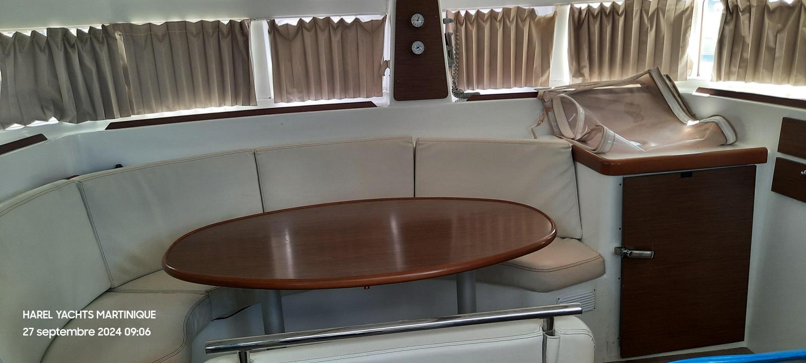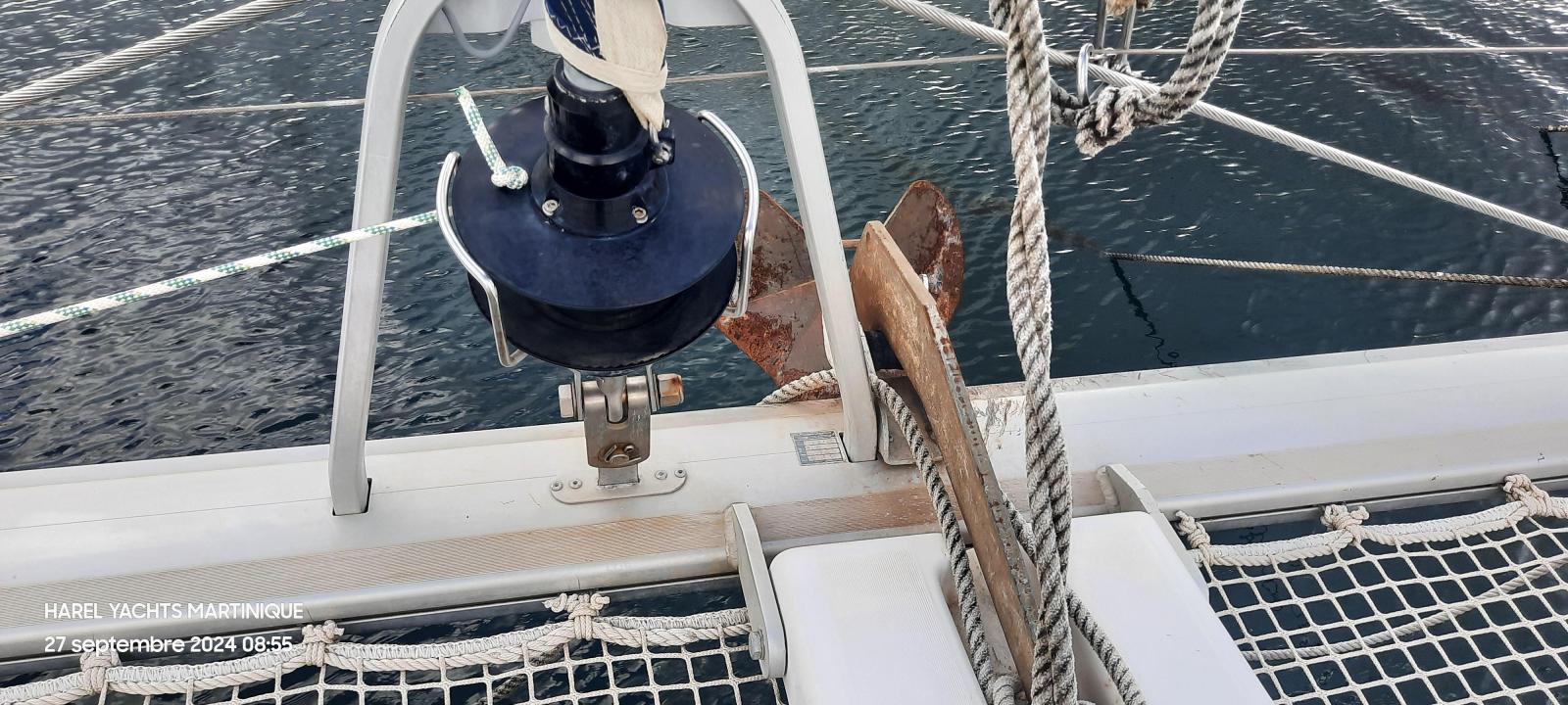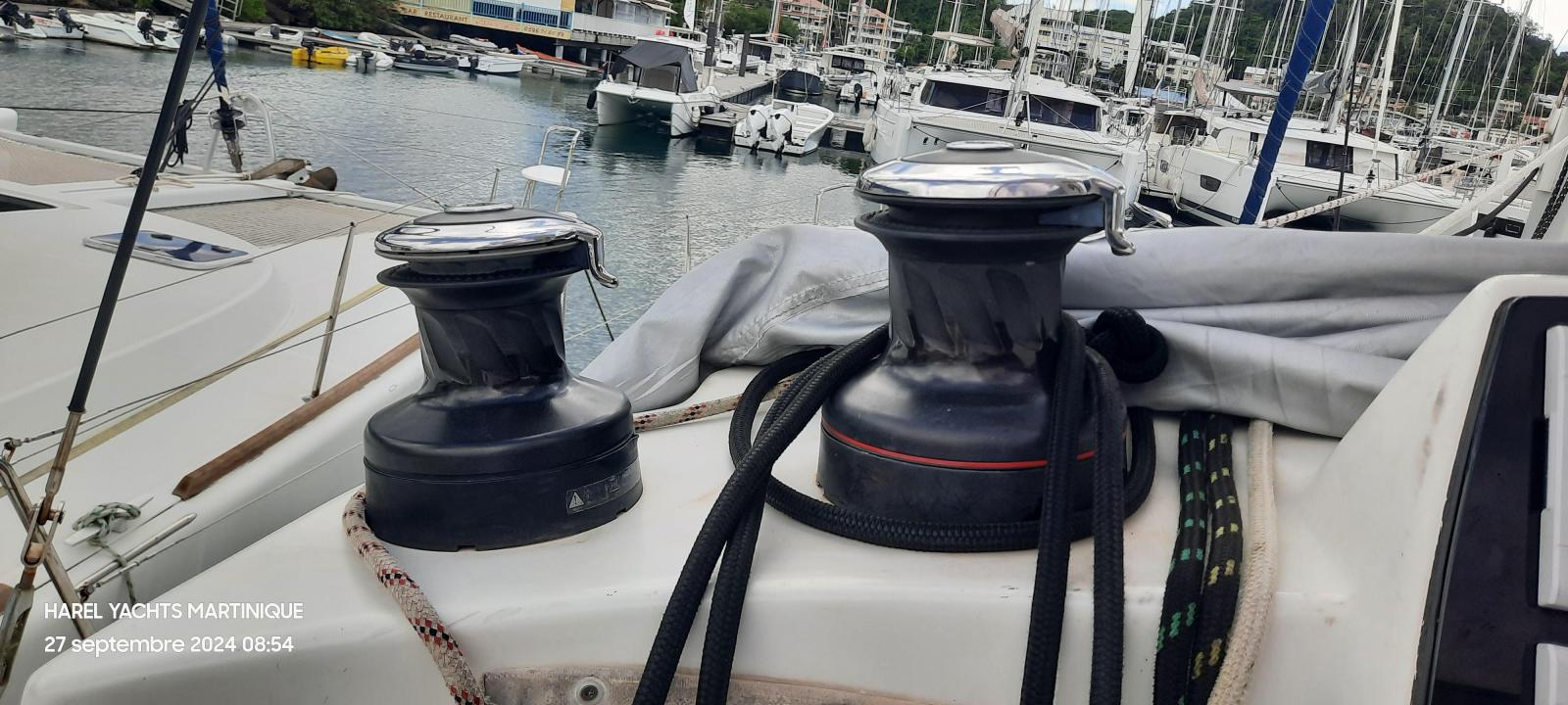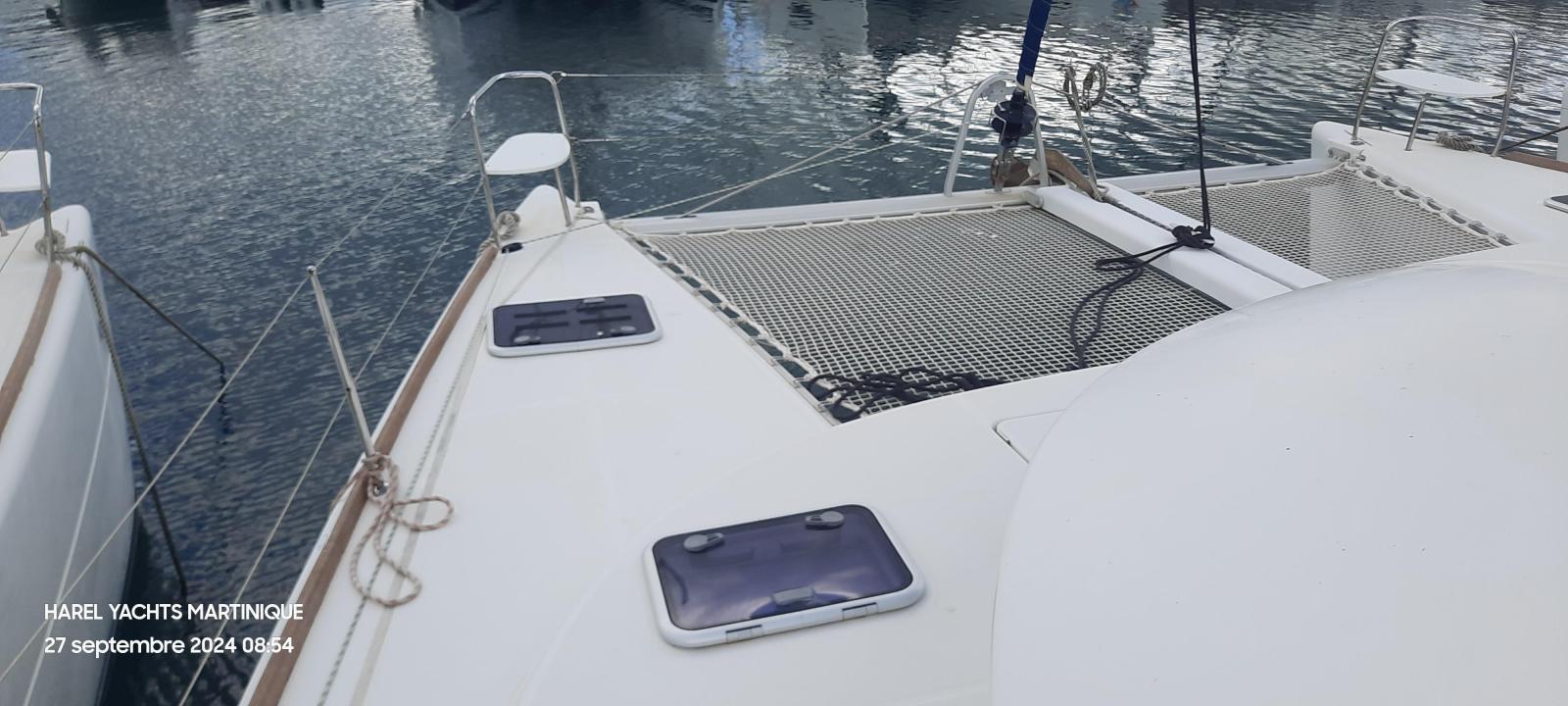 SpecificationLagoon 380 Built :2018 Layout 4 x double cabins 2 x Toilets Interior Equipment Hifi – Fusion with Exterior Speakers Hot water Sea water pump Stove and oven – ENO Fridge- front opening Engines & Propulsion 2 x Yanmar -3YM30 AE- 30 HP -2480 hours Propeller – 2 x Blades Electricity Service batteries : 3 x AGM 140 AH Battery charger Shore power inlet Inverter Solar Panels x 4 Sails & Rigging Mainsail – Fully battened Lazy bag and Lazy Jacks Furling Genoa 1 x electric winch Electronics Navigation Pack B&G – Depth sounder,Speed,Wind Autopilot, Chart plotter- Raymarine GPS-Raymarine Vhf – Raymarine Exterior Equipment Cockpit cushions Shower at transom Outboard engine support Davits Bimini Top -rigid Dodger Others Liferaft – Bombard 10 x persons