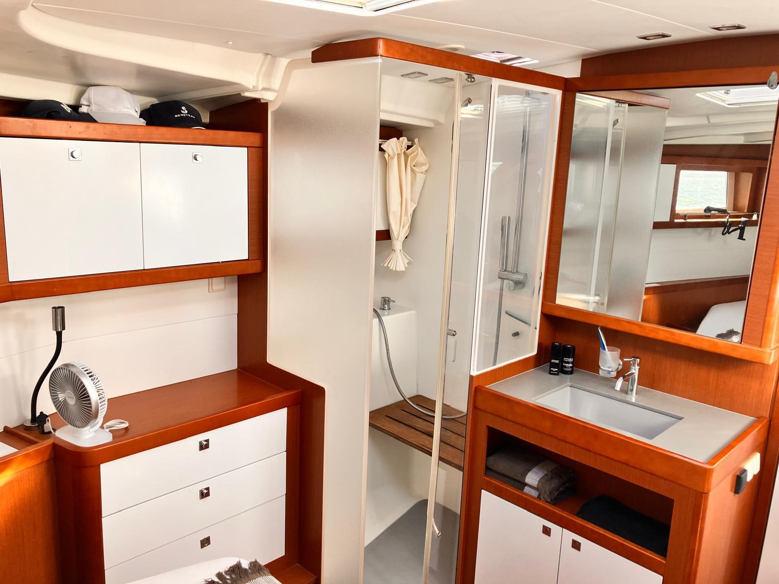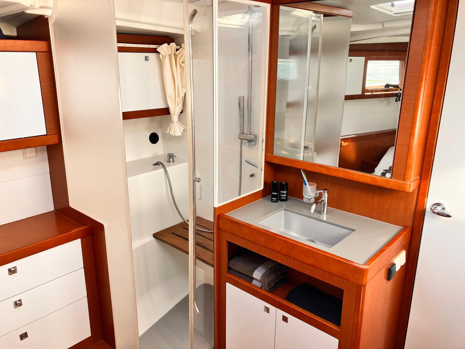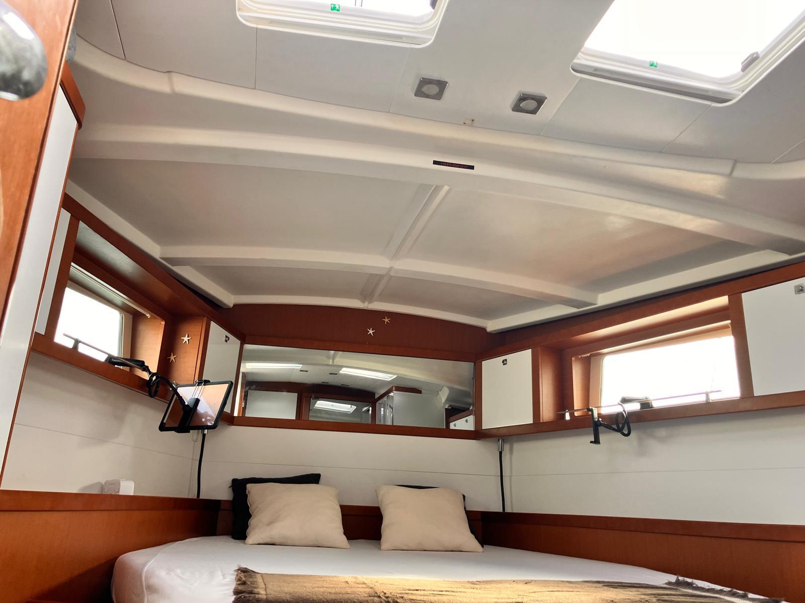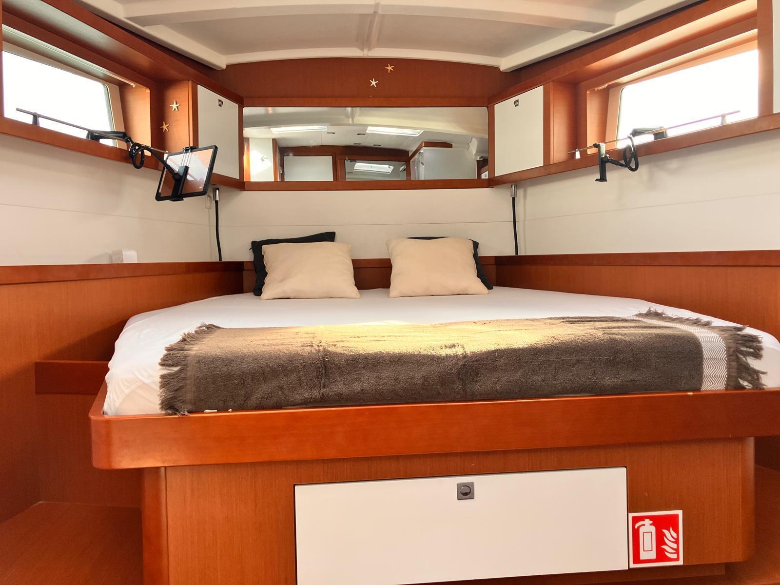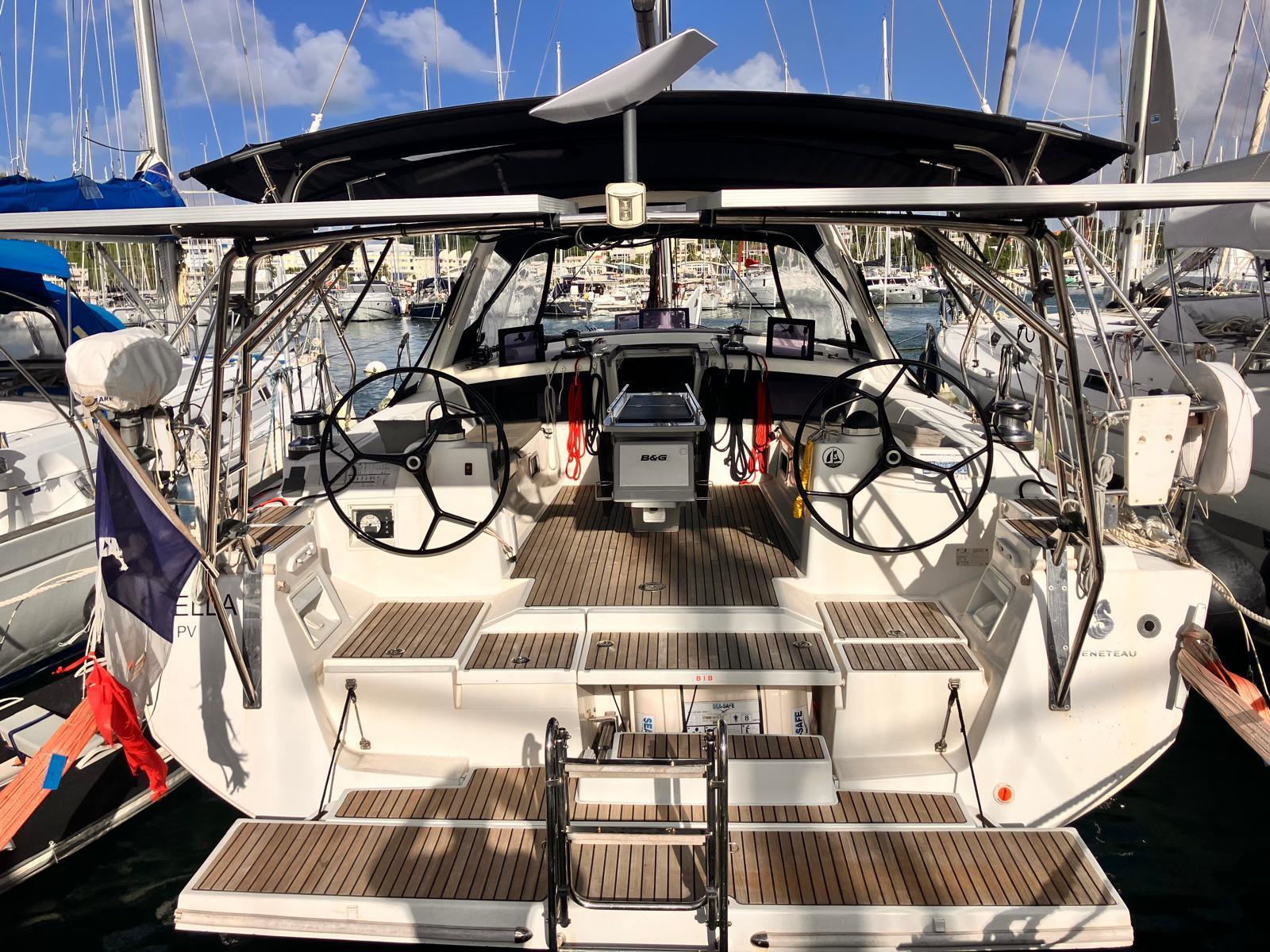 Details1. Sail locker, access through deck hatch 2. Easy access to the anchor well - Self-bailing chain well - Clench bolt - Hatch cover 3. Mainsail arch 4. Handrails on the mainsail arch 5. B&G Zeus 12” (optional) multifunction touch screen built into the cockpit table 6. Cockpit wooden table incorporating handrails and able to accommodate an ice box (optionally refrigerated) 7. Silver Coachroof sprayhood 8. Dock & Go joystick and compass 9. Rope locker 10. Helm station, B&G electronics 11. Companionway with very gentle slope of 45° 12. Removable LED light LAYOUT 3 x double cabins 2 x bathrooms 1 X Additional double berth ENGINE & PROPULSION Yanmar -75HP Turbo-ONLY 750 Hours Bow thruster Foldable Propeller – Max prop ELECTRICITY Electrical Circuit : 12v/220V Solar panels – 600W +300W- 2021 Service batteries: 4 x 140 AH 2 x battery chargers Shore power inlet Inverter – 2400W -Pure Sinus -2021 Generator – Pramac 2000w – 2023 INTERIOR EQUIPMENT 2 x Electric toilets - 2021 TV -12v- 2021 Radio/stereo w. speakers outside-2024 Heating system – 2024 Water maker – 60L/H -2024 Microwave Stove w. Oven Fridge Freezer Exterior Equipment Electric Fold - down transom Teak in cockpit Flushing hatches Deckwash Cockpit cushions Davits Bimini Top – 2021 Dodger – 2021 Electric Windlass 1st Anchor -32KG +80m/12mm chain 2nd Anchor 25KG +40m/12mm chain ELECTRONICS B&G – Depth, Speed, Wind – 2021 ZEUS II -chartplotter Autopilot – B&G VHF -B&G Radar -Halo 204 -2024 SAILS & RIGGING Furling Mainsail – Incidence Code O Furling Genoa – Incidence 2x Steering Wheels – Carbon – 2021 Electric winch Spinnaker Pole -Selden- 2021 OTHERS Yamaha +6HP Yamaha Liferaft – 8 people