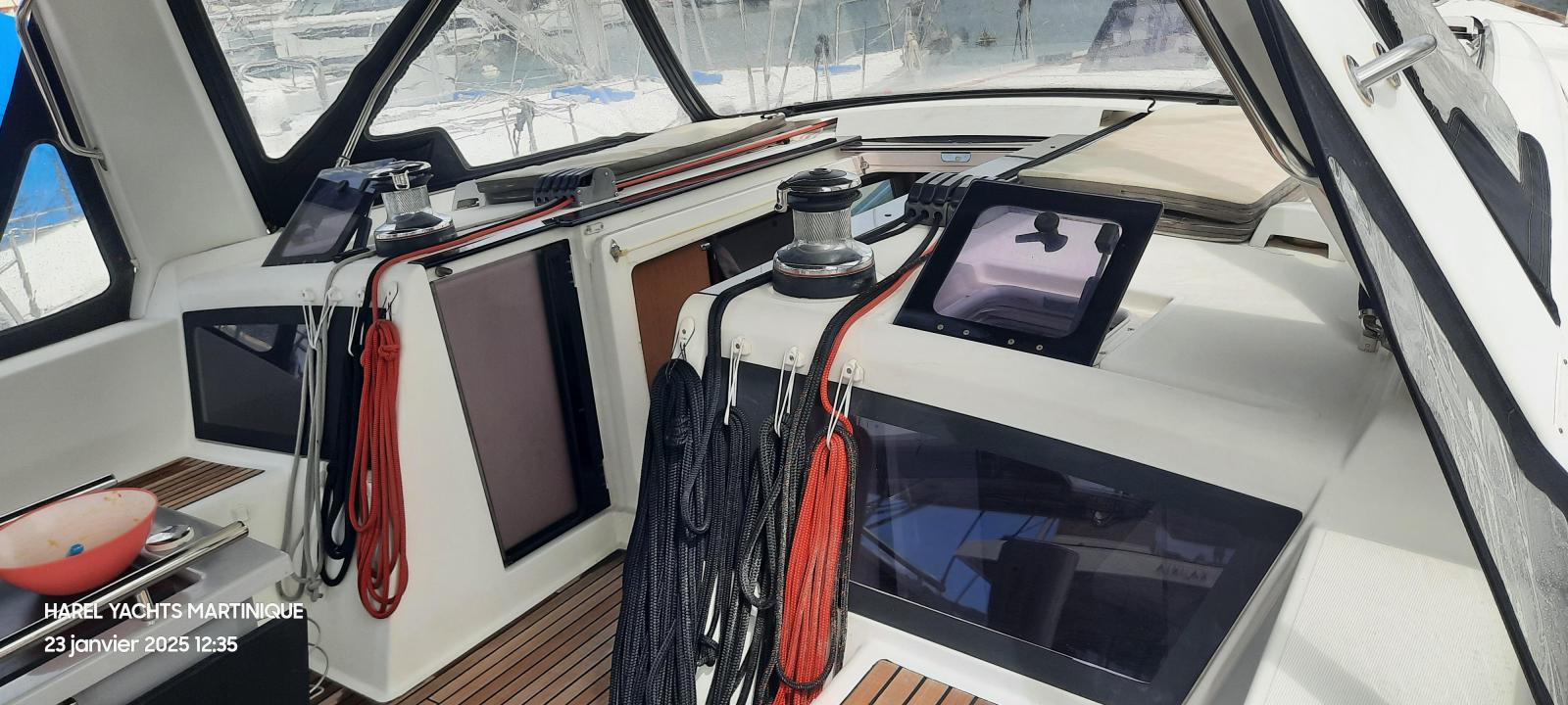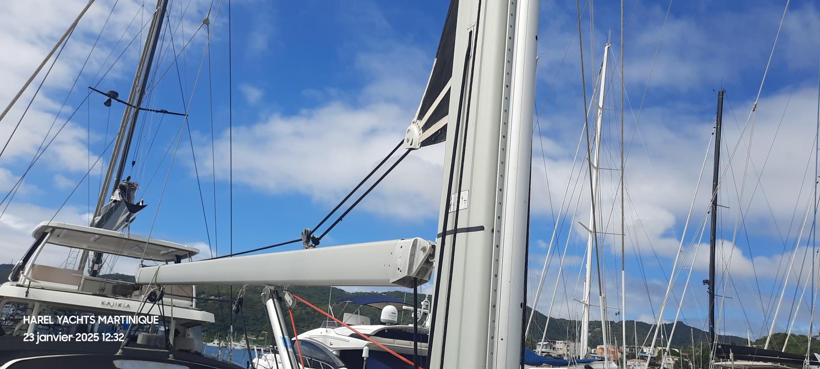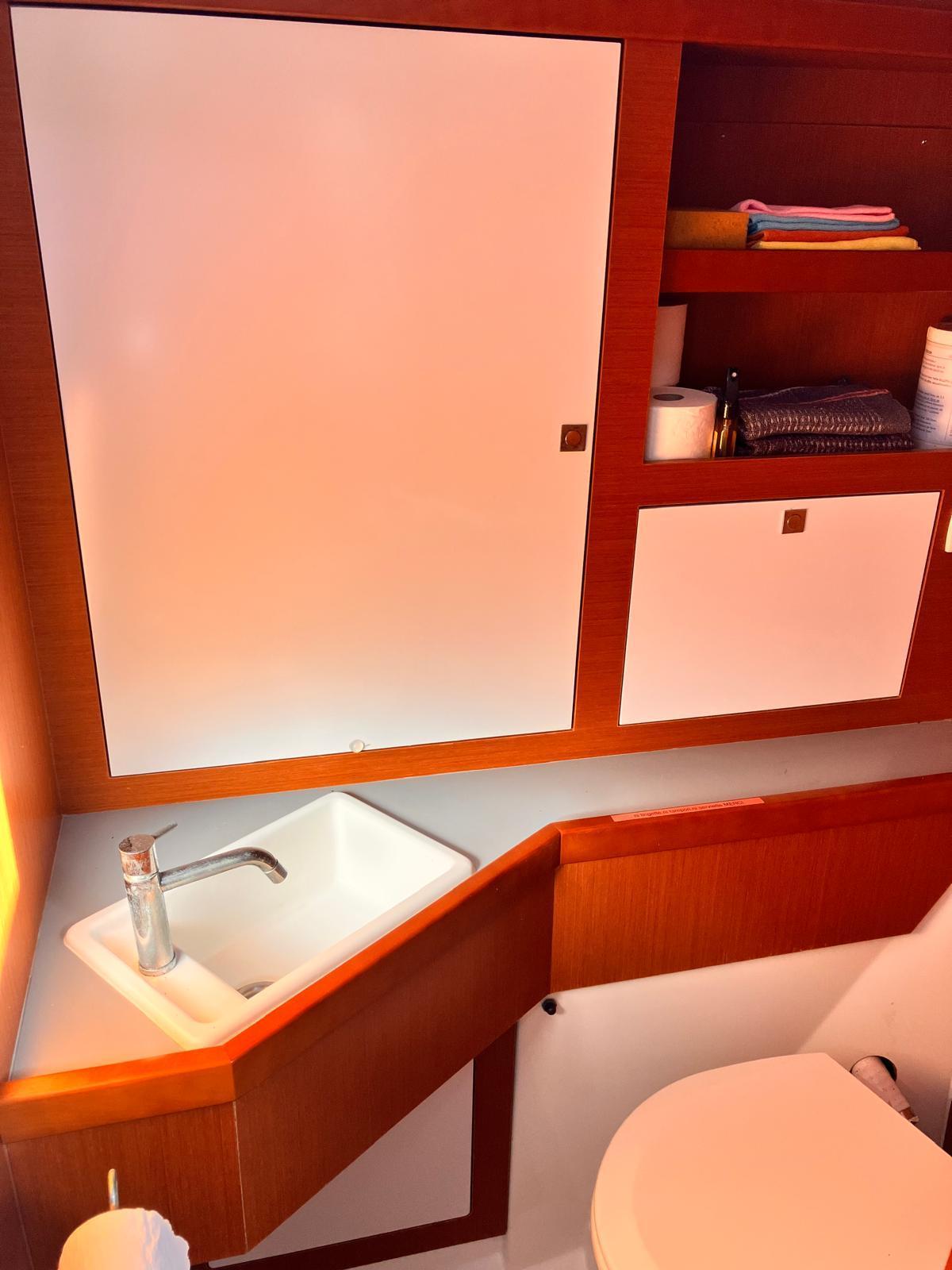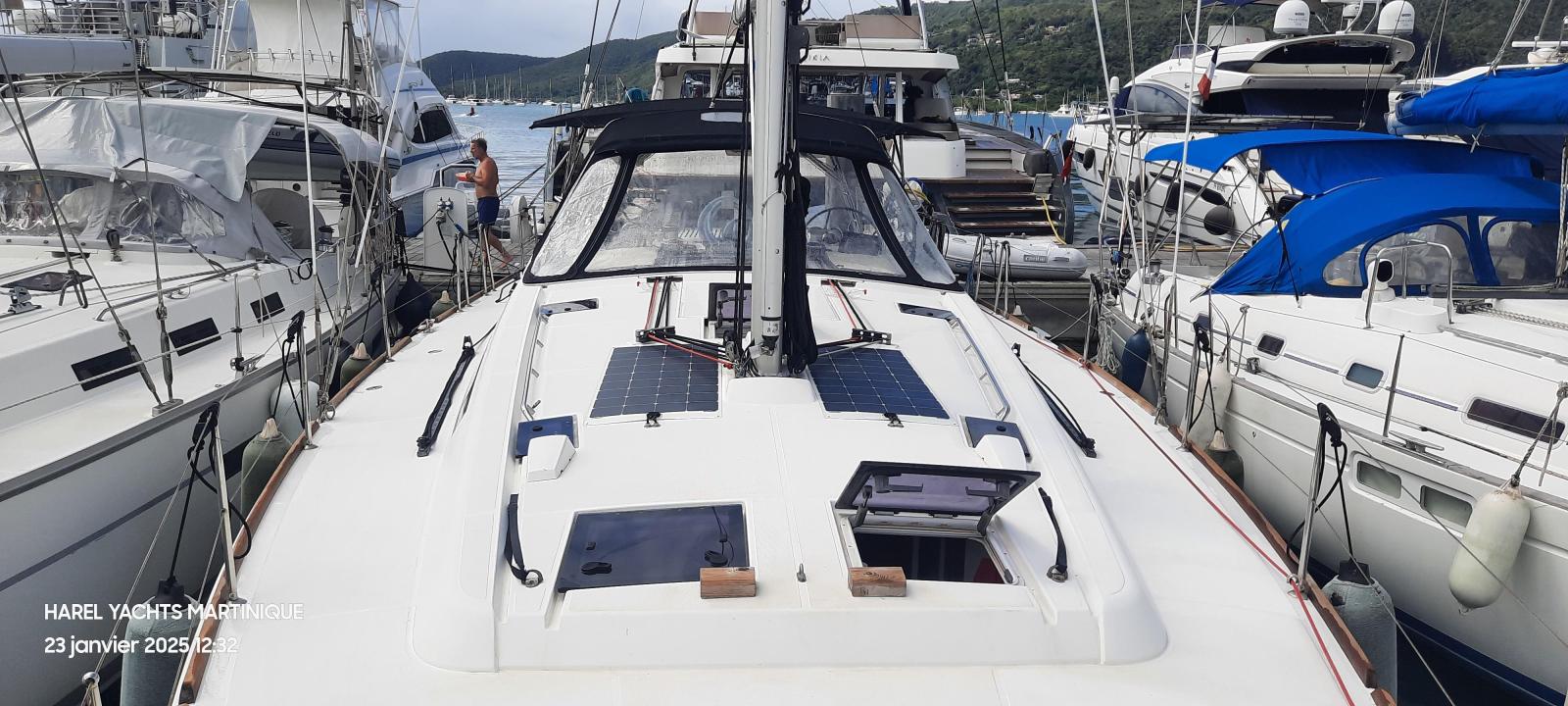 Details1. Sail locker, access through deck hatch 2. Easy access to the anchor well - Self-bailing chain well - Clench bolt - Hatch cover 3. Mainsail arch 4. Handrails on the mainsail arch 5. B&G Zeus 12” (optional) multifunction touch screen built into the cockpit table 6. Cockpit wooden table incorporating handrails and able to accommodate an ice box (optionally refrigerated) 7. Silver Coachroof sprayhood 8. Dock & Go joystick and compass 9. Rope locker 10. Helm station, B&G electronics 11. Companionway with very gentle slope of 45° 12. Removable LED light LAYOUT 3 x double cabins 2 x bathrooms 1 X Additional double berth ENGINE & PROPULSION Yanmar -75HP Turbo-ONLY 750 Hours Bow thruster Foldable Propeller – Max prop ELECTRICITY Electrical Circuit : 12v/220V Solar panels – 600W +300W- 2021 Service batteries: 4 x 140 AH 2 x battery chargers Shore power inlet Inverter – 2400W -Pure Sinus -2021 Generator – Pramac 2000w – 2023 INTERIOR EQUIPMENT 2 x Electric toilets - 2021 TV -12v- 2021 Radio/stereo w. speakers outside-2024 Heating system – 2024 Water maker – 60L/H -2024 Microwave Stove w. Oven Fridge Freezer Exterior Equipment Electric Fold - down transom Teak in cockpit Flushing hatches Deckwash Cockpit cushions Davits Bimini Top – 2021 Dodger – 2021 Electric Windlass 1st Anchor -32KG +80m/12mm chain 2nd Anchor 25KG +40m/12mm chain ELECTRONICS B&G – Depth, Speed, Wind – 2021 ZEUS II -chartplotter Autopilot – B&G VHF -B&G Radar -Halo 204 -2024 SAILS & RIGGING Furling Mainsail – Incidence Code O Furling Genoa – Incidence 2x Steering Wheels – Carbon – 2021 Electric winch Spinnaker Pole -Selden- 2021 OTHERS Yamaha +6HP Yamaha Liferaft – 8 people