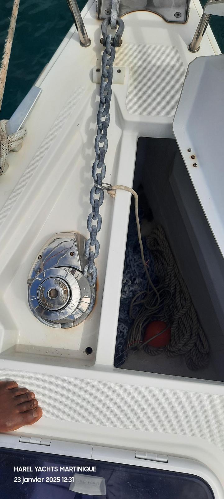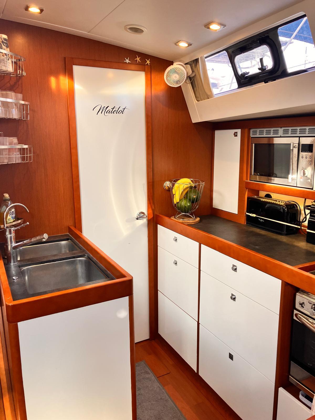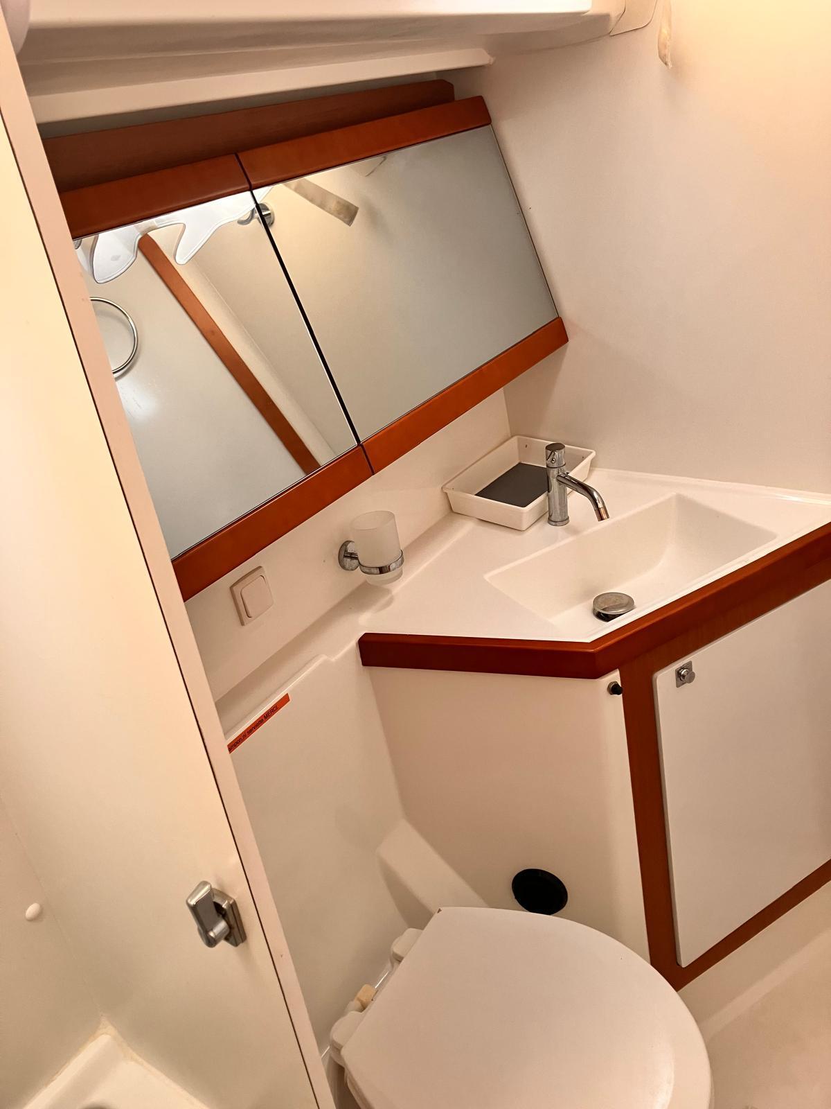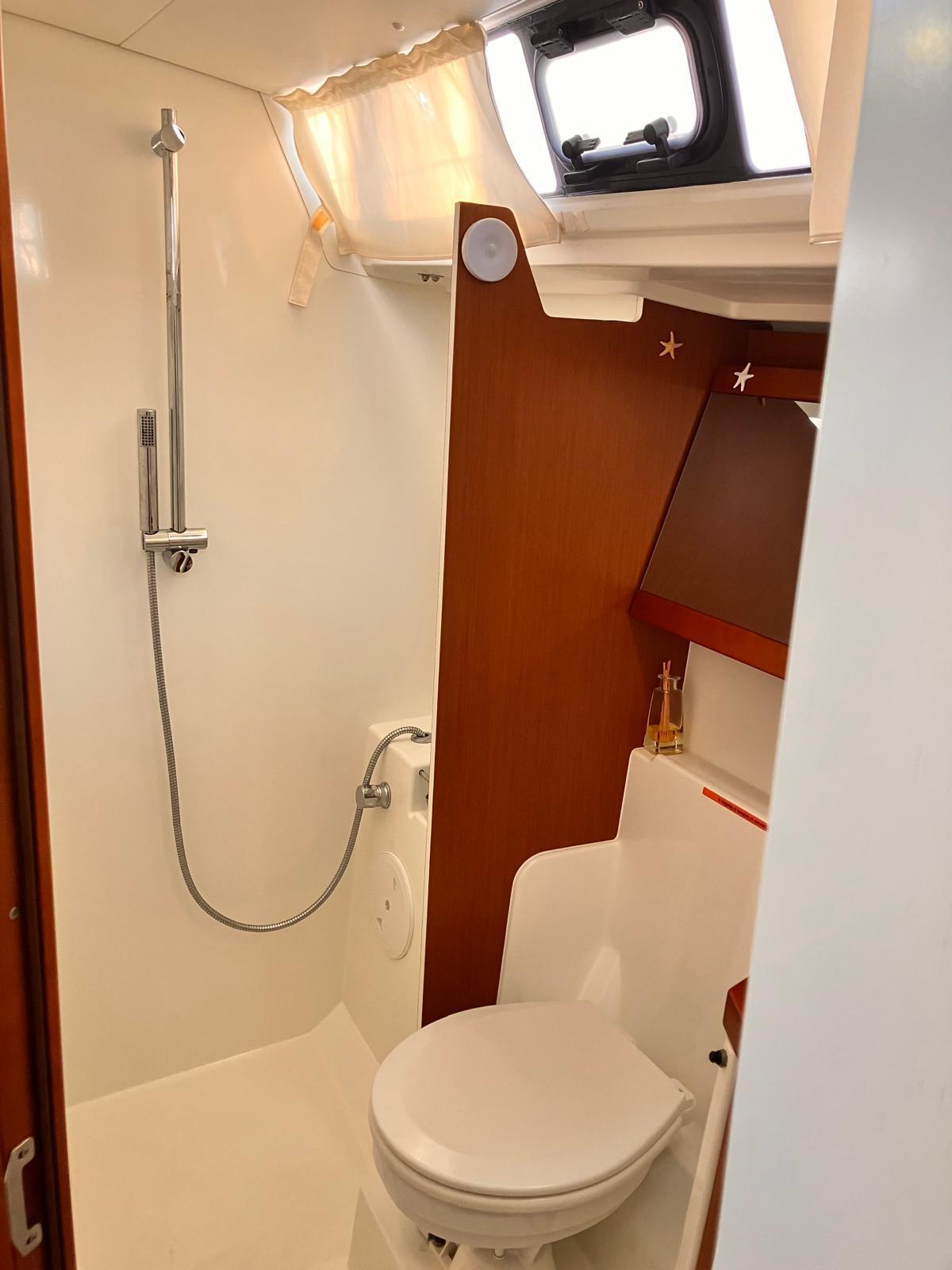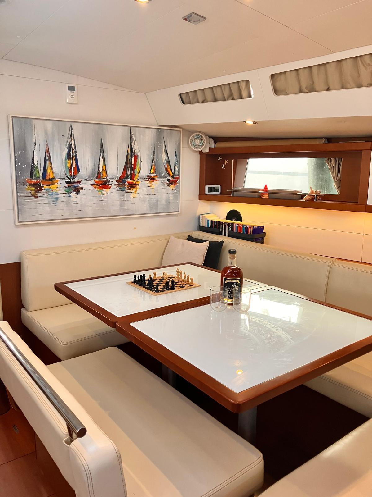 Details1. Sail locker, access through deck hatch 2. Easy access to the anchor well - Self-bailing chain well - Clench bolt - Hatch cover 3. Mainsail arch 4. Handrails on the mainsail arch 5. B&G Zeus 12” (optional) multifunction touch screen built into the cockpit table 6. Cockpit wooden table incorporating handrails and able to accommodate an ice box (optionally refrigerated) 7. Silver Coachroof sprayhood 8. Dock & Go joystick and compass 9. Rope locker 10. Helm station, B&G electronics 11. Companionway with very gentle slope of 45° 12. Removable LED light LAYOUT 3 x double cabins 2 x bathrooms 1 X Additional double berth ENGINE & PROPULSION Yanmar -75HP Turbo-ONLY 750 Hours Bow thruster Foldable Propeller – Max prop ELECTRICITY Electrical Circuit : 12v/220V Solar panels – 600W +300W- 2021 Service batteries: 4 x 140 AH 2 x battery chargers Shore power inlet Inverter – 2400W -Pure Sinus -2021 Generator – Pramac 2000w – 2023 INTERIOR EQUIPMENT 2 x Electric toilets - 2021 TV -12v- 2021 Radio/stereo w. speakers outside-2024 Heating system – 2024 Water maker – 60L/H -2024 Microwave Stove w. Oven Fridge Freezer Exterior Equipment Electric Fold - down transom Teak in cockpit Flushing hatches Deckwash Cockpit cushions Davits Bimini Top – 2021 Dodger – 2021 Electric Windlass 1st Anchor -32KG +80m/12mm chain 2nd Anchor 25KG +40m/12mm chain ELECTRONICS B&G – Depth, Speed, Wind – 2021 ZEUS II -chartplotter Autopilot – B&G VHF -B&G Radar -Halo 204 -2024 SAILS & RIGGING Furling Mainsail – Incidence Code O Furling Genoa – Incidence 2x Steering Wheels – Carbon – 2021 Electric winch Spinnaker Pole -Selden- 2021 OTHERS Yamaha +6HP Yamaha Liferaft – 8 people