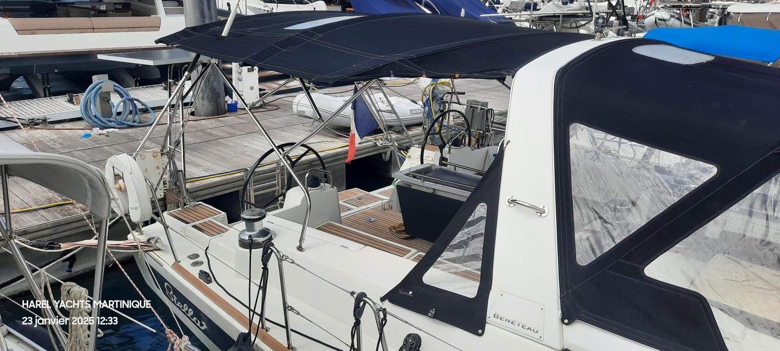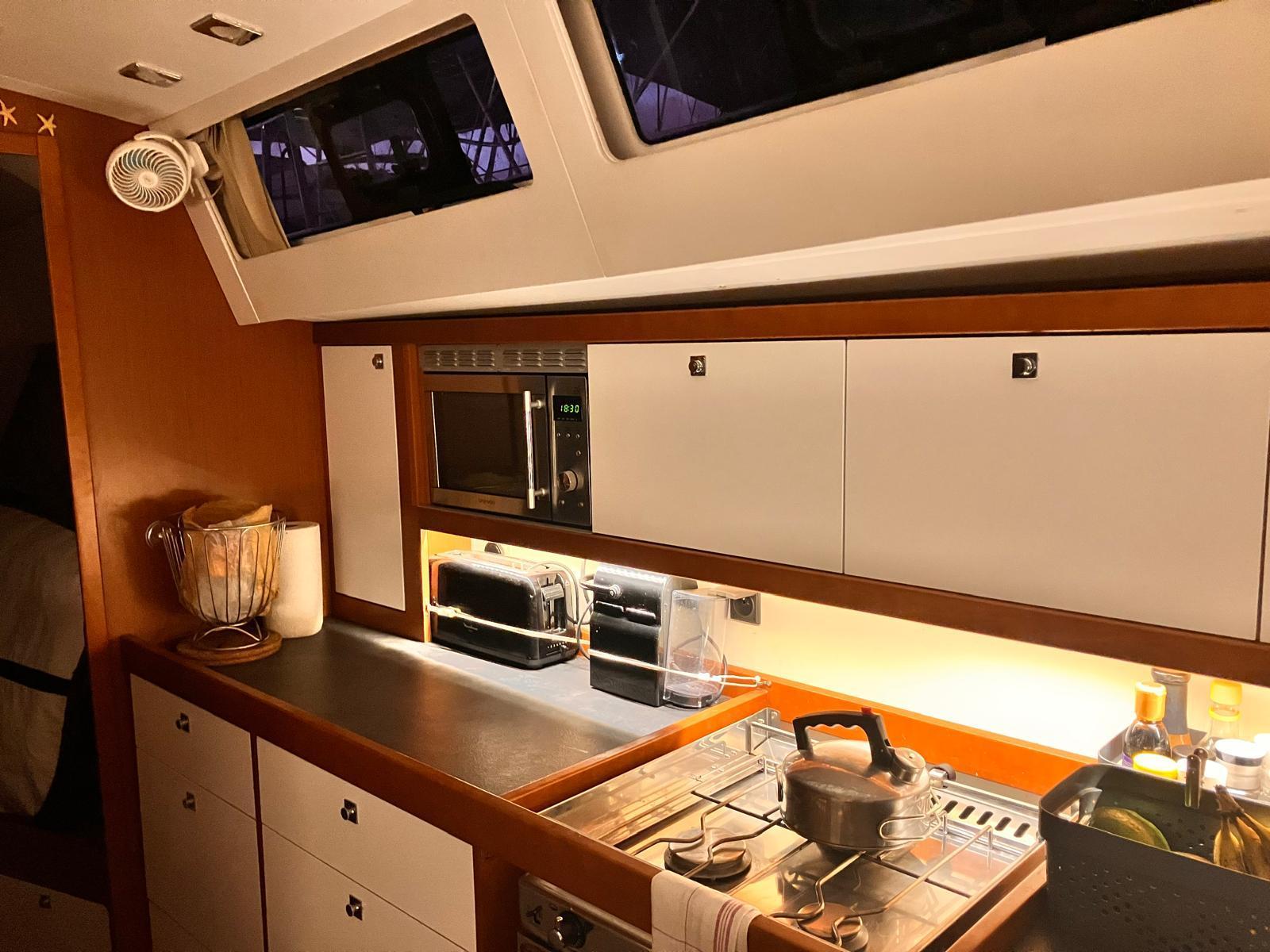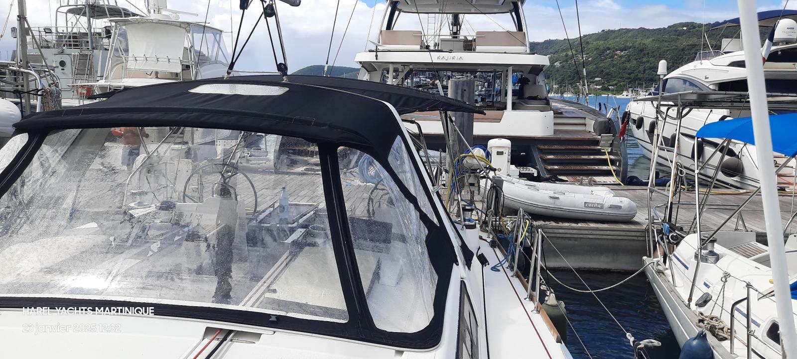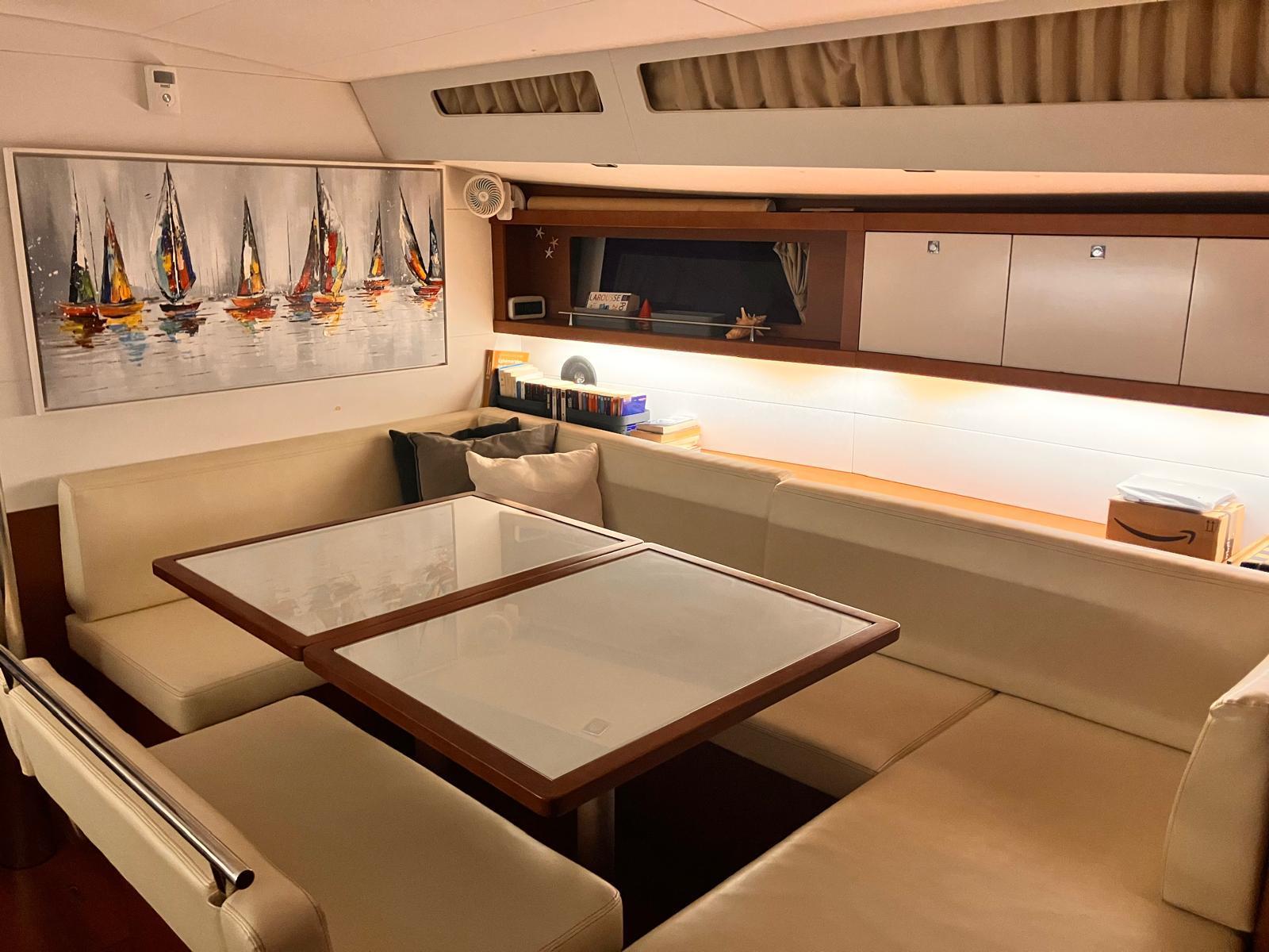 Details1. Sail locker, access through deck hatch 2. Easy access to the anchor well - Self-bailing chain well - Clench bolt - Hatch cover 3. Mainsail arch 4. Handrails on the mainsail arch 5. B&G Zeus 12” (optional) multifunction touch screen built into the cockpit table 6. Cockpit wooden table incorporating handrails and able to accommodate an ice box (optionally refrigerated) 7. Silver Coachroof sprayhood 8. Dock & Go joystick and compass 9. Rope locker 10. Helm station, B&G electronics 11. Companionway with very gentle slope of 45° 12. Removable LED light LAYOUT 3 x double cabins 2 x bathrooms 1 X Additional double berth ENGINE & PROPULSION Yanmar -75HP Turbo-ONLY 750 Hours Bow thruster Foldable Propeller – Max prop ELECTRICITY Electrical Circuit : 12v/220V Solar panels – 600W +300W- 2021 Service batteries: 4 x 140 AH 2 x battery chargers Shore power inlet Inverter – 2400W -Pure Sinus -2021 Generator – Pramac 2000w – 2023 INTERIOR EQUIPMENT 2 x Electric toilets - 2021 TV -12v- 2021 Radio/stereo w. speakers outside-2024 Heating system – 2024 Water maker – 60L/H -2024 Microwave Stove w. Oven Fridge Freezer Exterior Equipment Electric Fold - down transom Teak in cockpit Flushing hatches Deckwash Cockpit cushions Davits Bimini Top – 2021 Dodger – 2021 Electric Windlass 1st Anchor -32KG +80m/12mm chain 2nd Anchor 25KG +40m/12mm chain ELECTRONICS B&G – Depth, Speed, Wind – 2021 ZEUS II -chartplotter Autopilot – B&G VHF -B&G Radar -Halo 204 -2024 SAILS & RIGGING Furling Mainsail – Incidence Code O Furling Genoa – Incidence 2x Steering Wheels – Carbon – 2021 Electric winch Spinnaker Pole -Selden- 2021 OTHERS Yamaha +6HP Yamaha Liferaft – 8 people