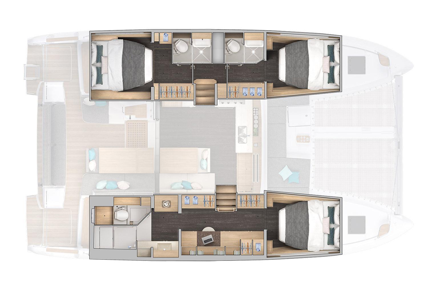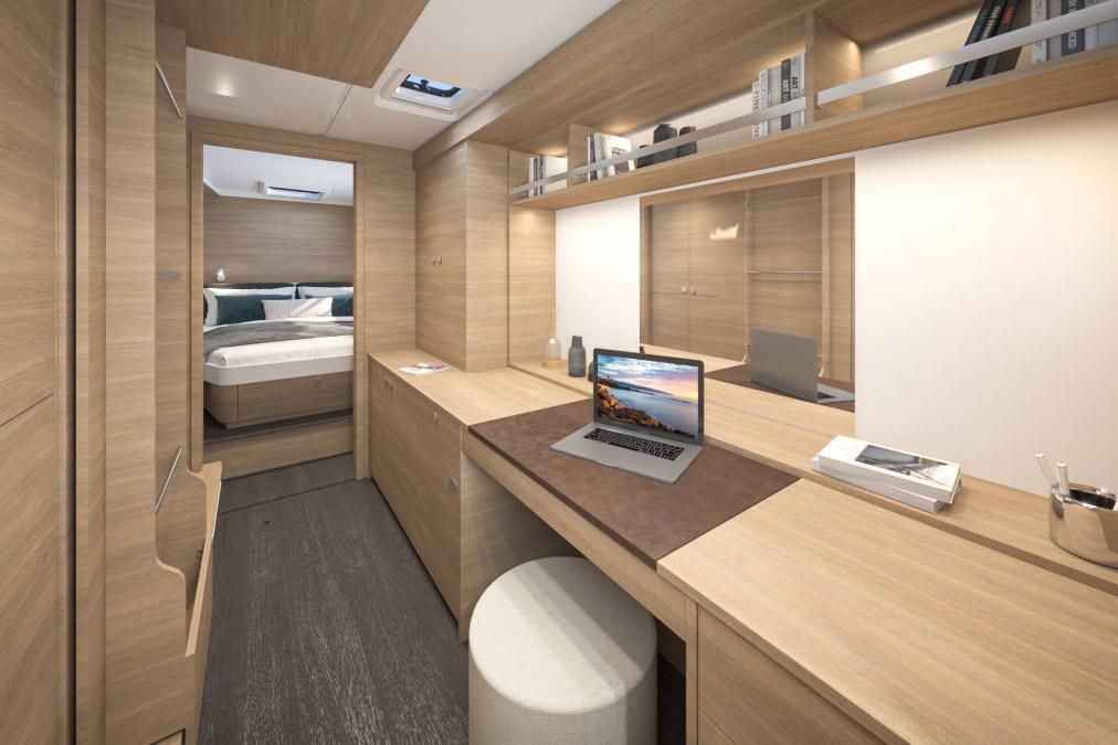 STANDARD INTERIOR WOOD IN ALPI SAND OAK WITH DARK OAK FLOOR - 3-CABIN VERSION