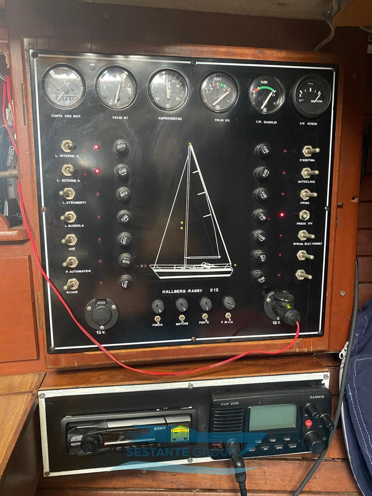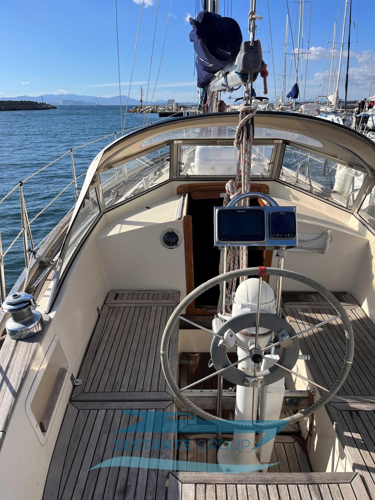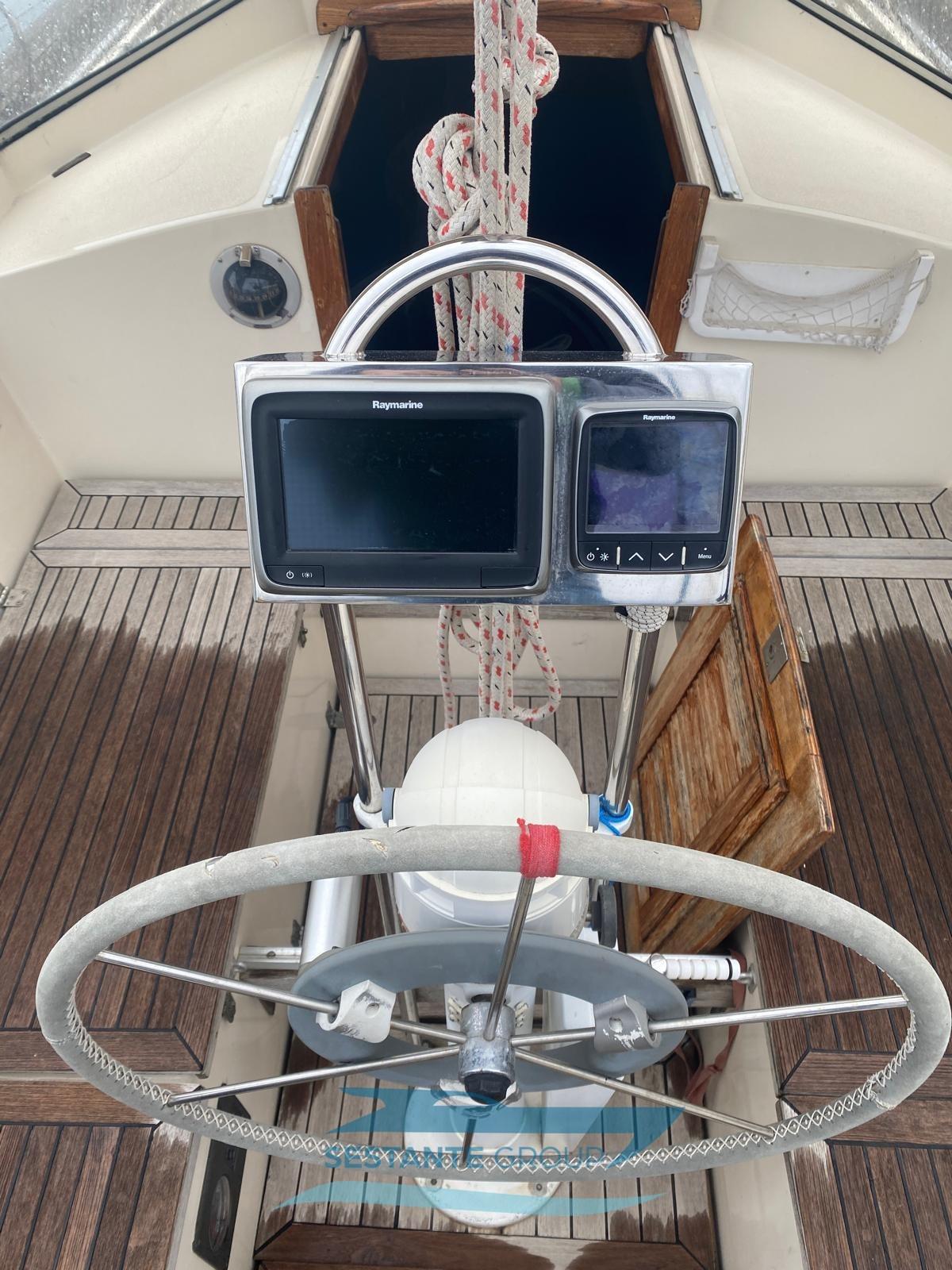 Display (I70 Raymarine in pozzetto), Pilota automatico (Raymarine EVOLUTION EV-100 Wheel a ruota), Plotter con antenna GPS (GPS - C-MAP con display cartografico touchscreen A75 Raymarine), Radar (Raymarine Quantum Digitale Wireless), Radio VHF (VHF fisso con DSC e collegamento NMEA), Stazione vento (Raymarine).