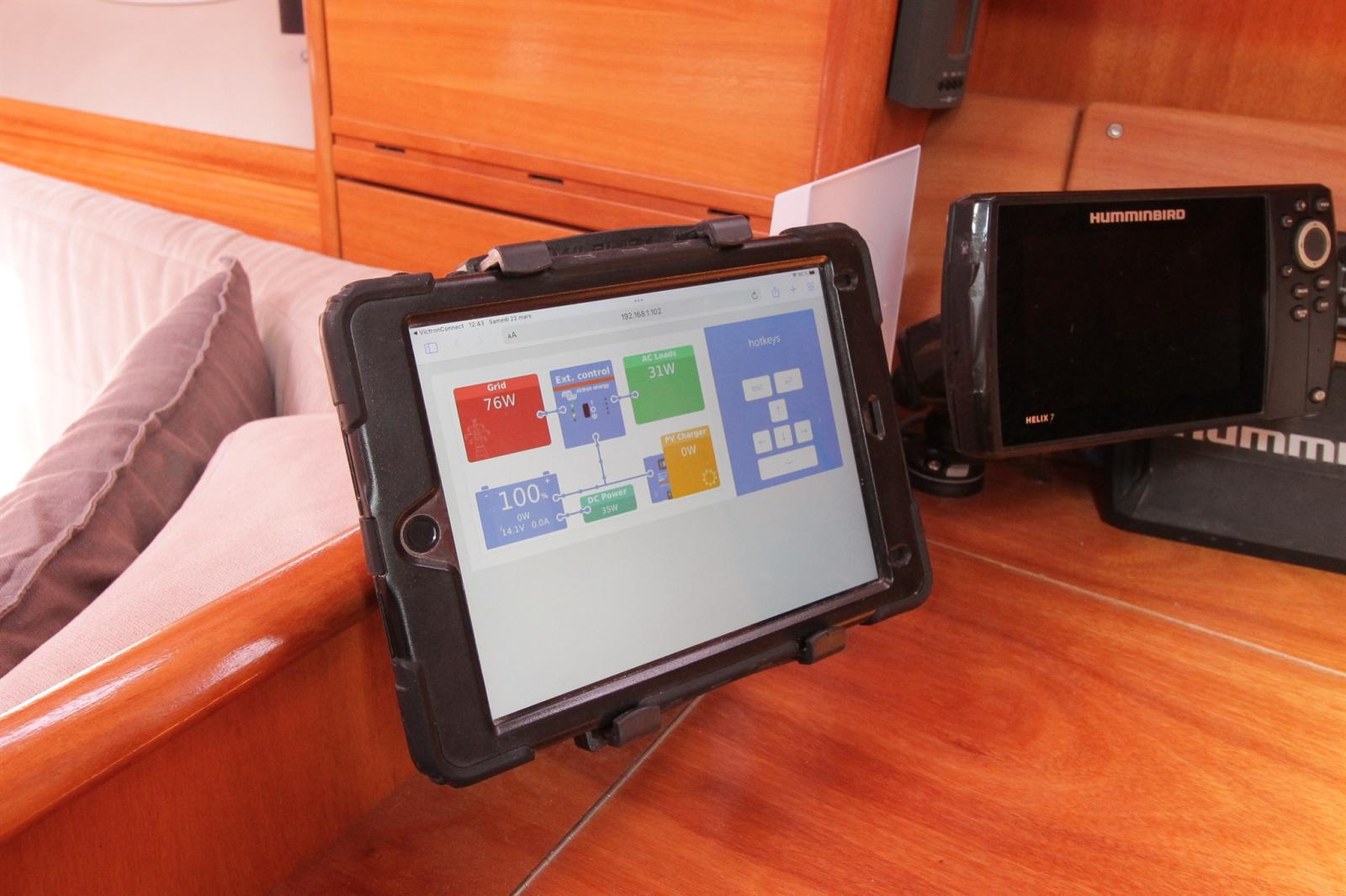 AIS (AISTX emet/recept avec option wifi), 2 Bussola, Contamiglia (Raymarine ST60), Display (gestionnaire batteries VICTRON), DSC vhf (Navicom RT450 DSC), Interfaccia (Gestion centralisée victron Cerbo GX monitoring via bluetooth/wifi), Pilota automatico (Electrique), Plotter (Humminbird Helix 7 avec carte navionics mediterranée 2023), Radio VHF (portable), Sonar (Raymarine ST60), Stazione vento (Raymarine ST60).