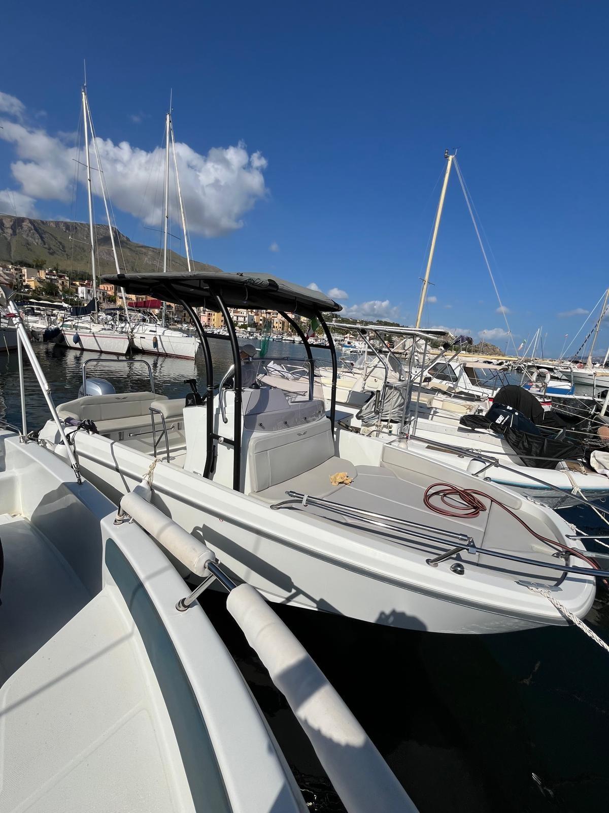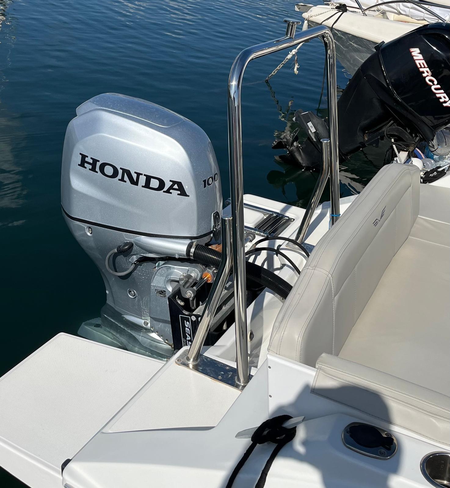 Braket, timoneria idraulica, allestimento comfort, t-top alluminio+estensione seduta pozzetto prua, prendisole, rollbar, sci nautico, 2 portacanna, tendalino
