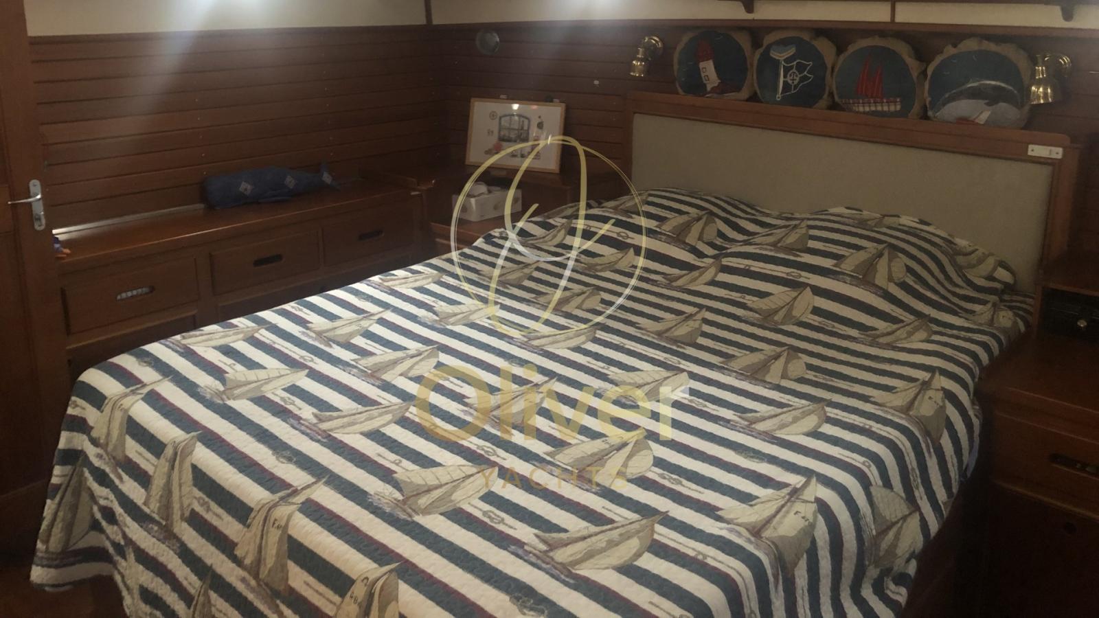 Il layout interno è pensato per la crociera comoda e funzionale, offrendo cabine spaziose: una cabina armatoriale a poppa, con letto matrimoniale e ampio armadio, e una cabina ospiti laterale,