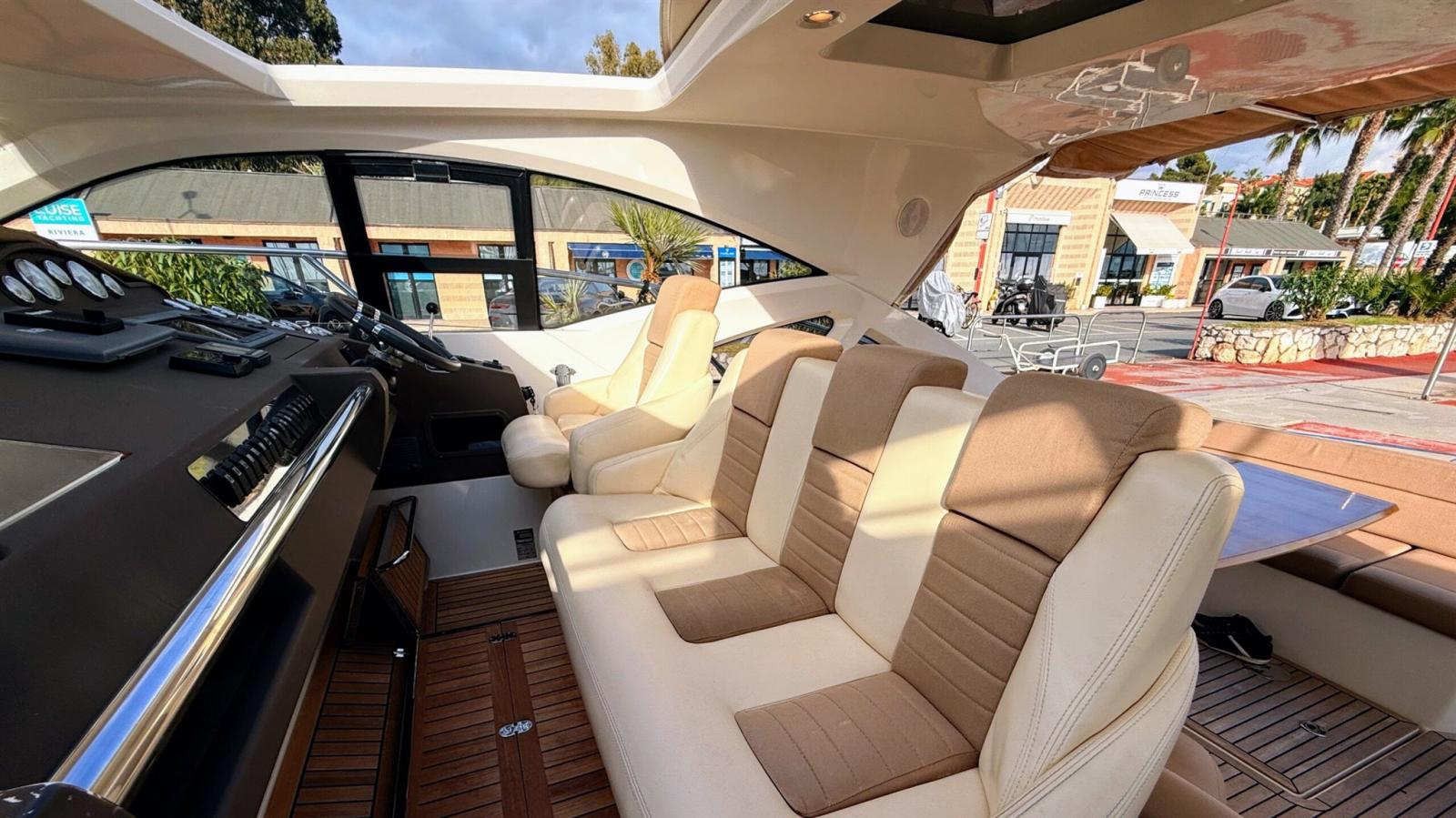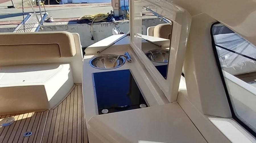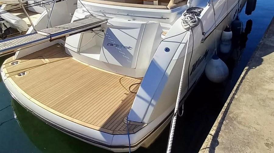 Allarme motore, Allarme sentina, Ancora (inox), Autoclave, 4 Batterie, Colorazione speciale (crème), Doccia esterna, Flap elettrici, Hard top (avec toit ouvrant), Lavandino nel Pozzetto, Luci di cortesia, Passerella (hydraulique), Piattaforma (teck refait a neuf 2024), Pompa di sentina automatica, Pozzetto Teak, Presa 220V banchina, Salpa Ancore Elettrico, Scaletta da bagno, Tavolo pozzetto.