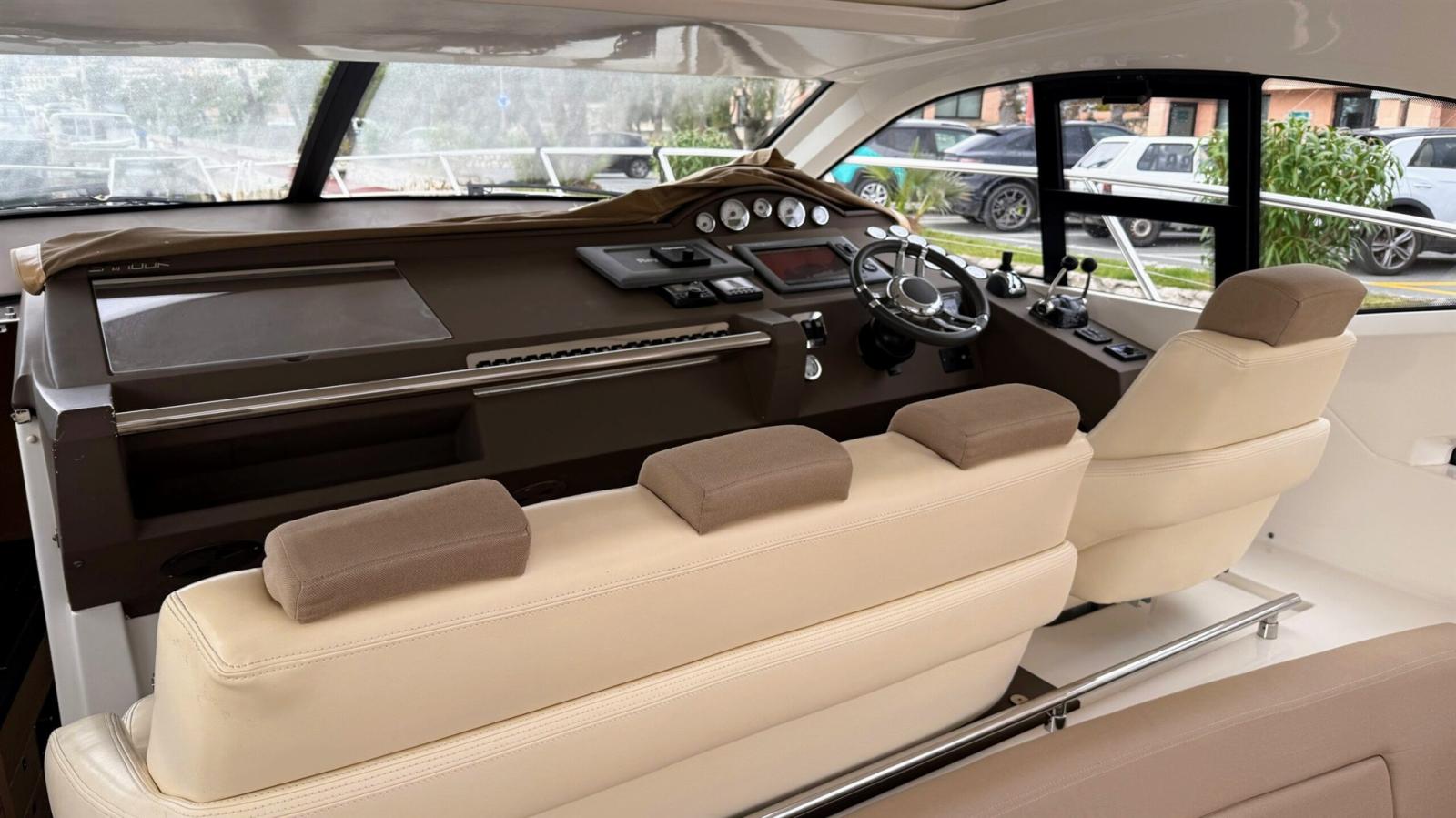 Antenna radar, Comando motori elettronico, DSC vhf, Joystick, Pilota automatico (Raymarine), Plotter con antenna GPS (Raymarine), Sonar.