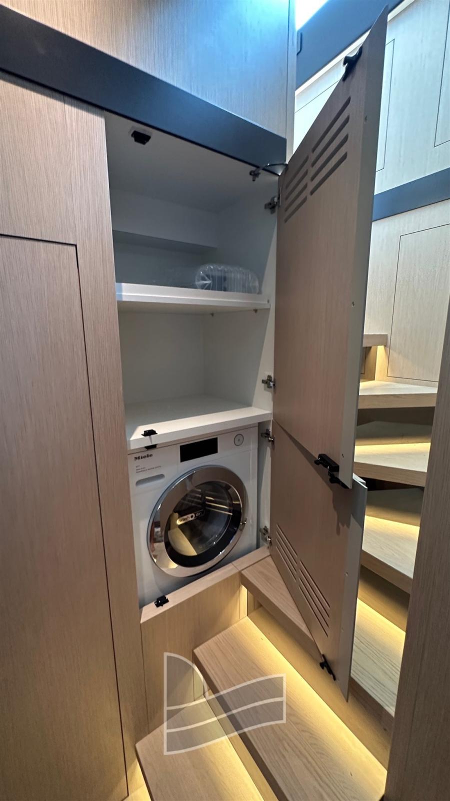 Anta mobile lobby con apertura doppia. Un'anta per la lavasciuga e un'anta per la zona di storage