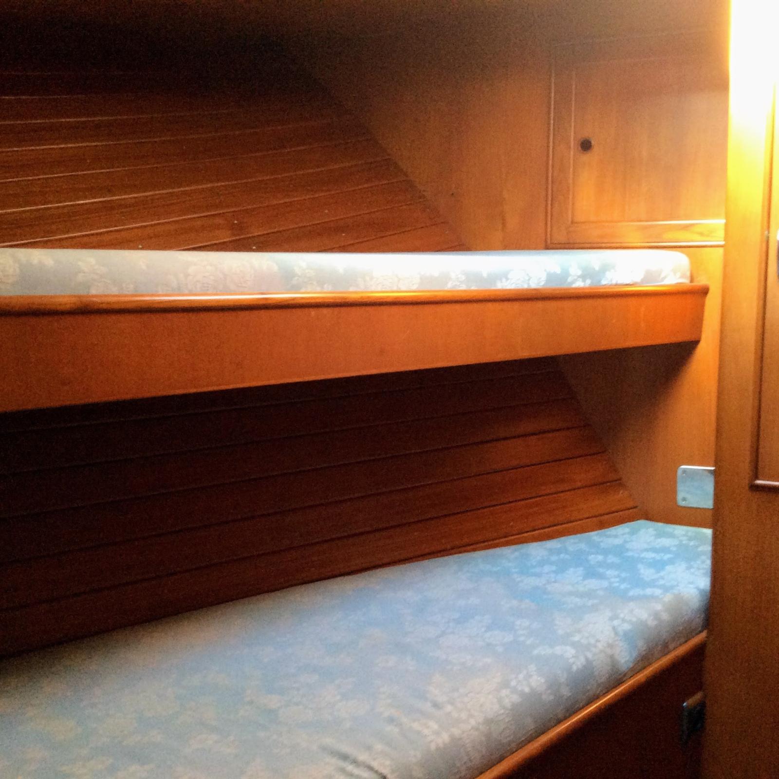3 cabine (1 matrimoniale, 1 letto a castello, 1 singolo), quadrato in alcantara - Aria condizionata reversibile.