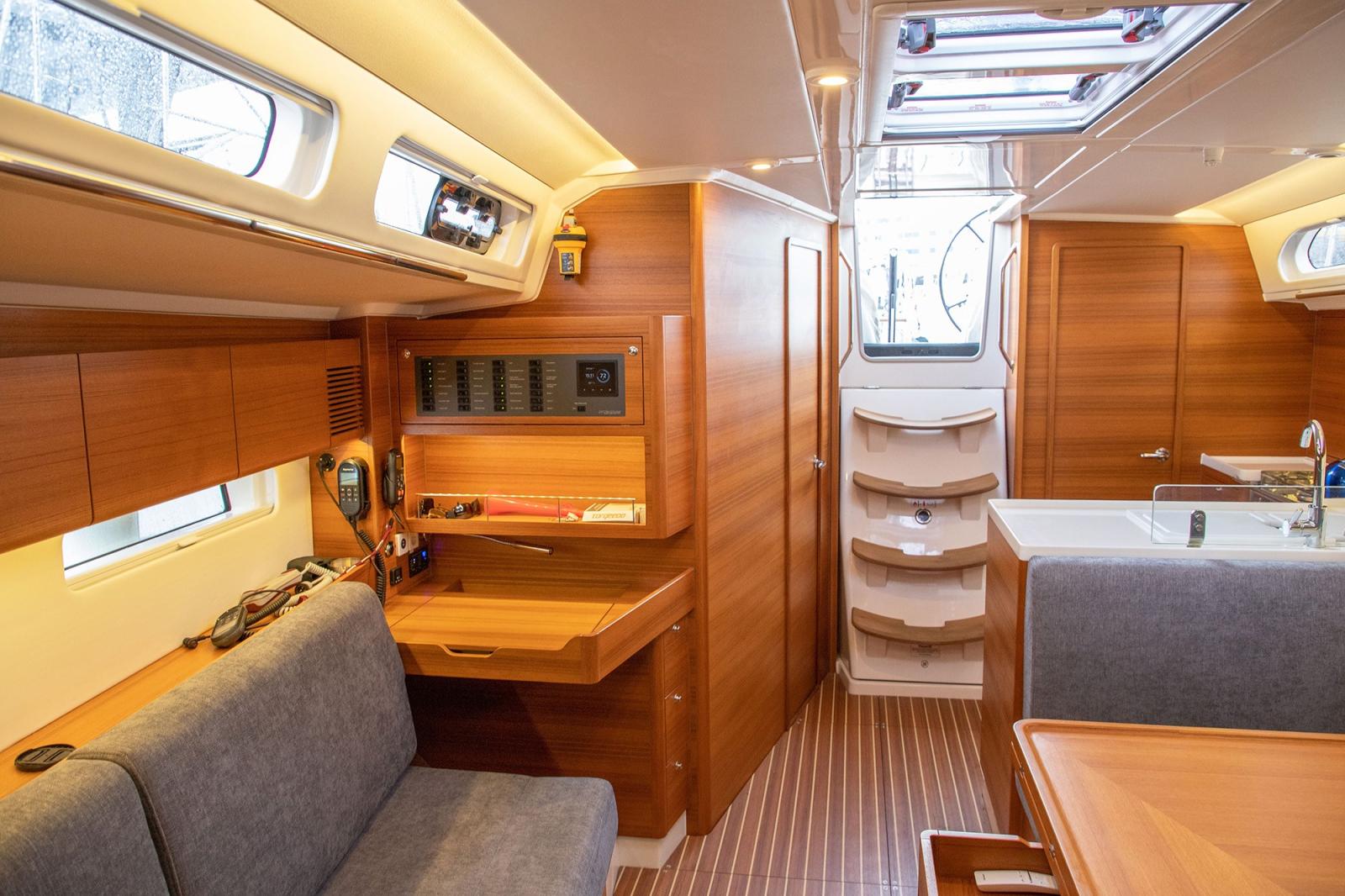 Allarme motore, Ancora (Delta 20kg), Autoclave, 4 Batterie (3 x110A/12V 2025 (service), 1 70Ah Moteur), Camminamenti laterali in teak, Caricabatterie (Victron 12/220V), Doccia esterna, Doppia timoneria (Carbonautica), Elica di prua - bow thruster (Maxpower rétractable), Luci di cortesia, Motore ausiliario (Torquedo électrique), Pozzetto Teak, Salpa Ancore Elettrico, Sartiame in tondino, Scaletta da bagno, Tavolo pozzetto (Teck), Tender (Plastimo Fun 270), Tuga in teak, 5 Winch (3 ST HARKEN 46, 2 ST HARKEN 50), Winch Elettrico (1 ST HARKEN 46).