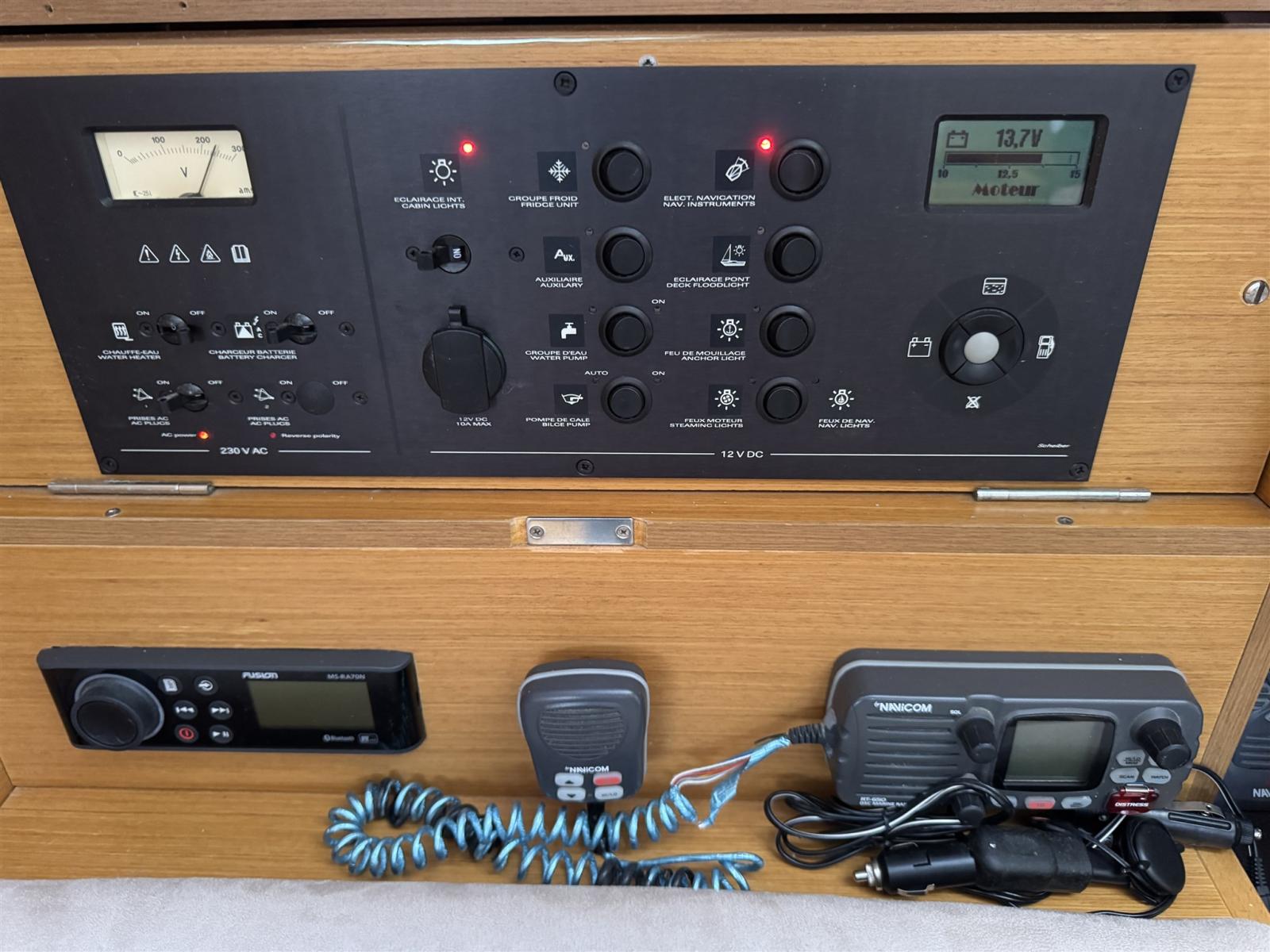 4 Batterie (3 xService 1x moteur), Doccia esterna, Doppia timoneria (avec housses), Elica di prua - bow thruster (2020), Luci di cortesia, Luci subacquee, Motore ausiliario (Suzuki 2T 2,2CV), Pannelli Solari (sur bimini), Piattaforma, Pompa di sentina manuale, Pozzetto Teak, Salpa Ancore Elettrico (chaine 50m), Sartiame spiroidale (1x19), Tavolo pozzetto, Tender, Tuga in teak.