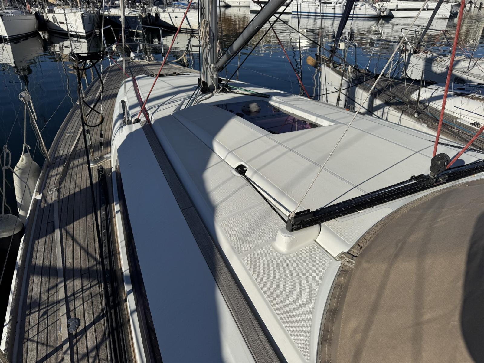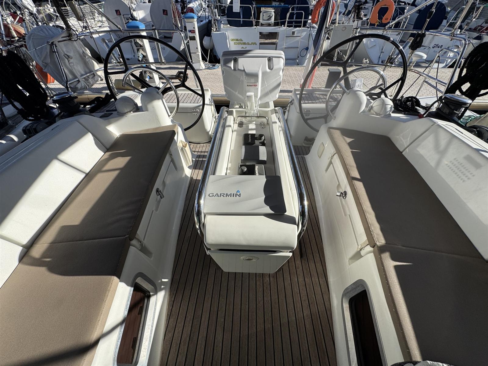 Elica di prua, ponte e pozzetto in teak, doppio timone, verricello elettrico, pannello solare su bimini...