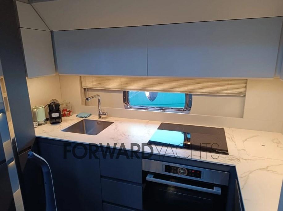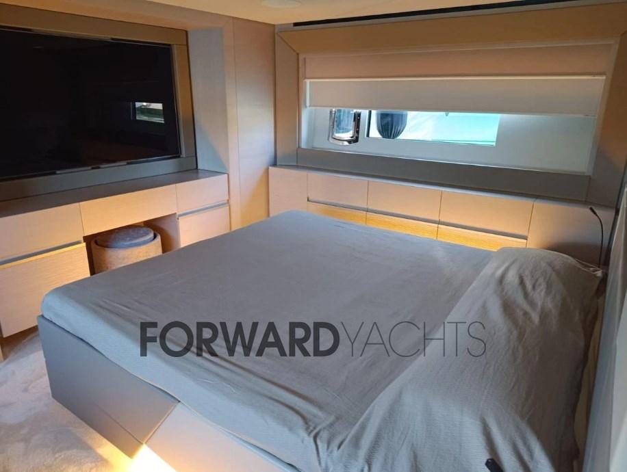 Con il suo DNA sportivo e design distintivo, Pershing 7X offre prestazioni straordinarie, raggiungendo una velocità massima di 50 nodi, senza rinunciare al comfort. La zona notte dispone di 3 comode cabine per 6 ospiti: un'armatoriale a tutto baglio a centro barca, una VIP a prua e una doppia con letti in piano; tutte con bagno ensuite con eleganti dettagli in mosaico Bisazza.