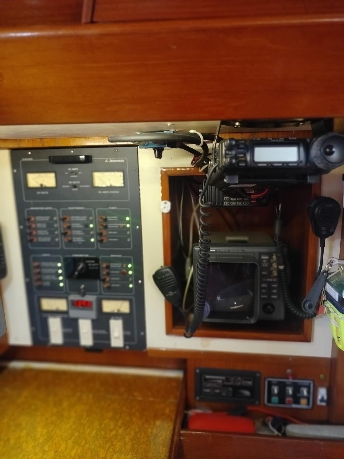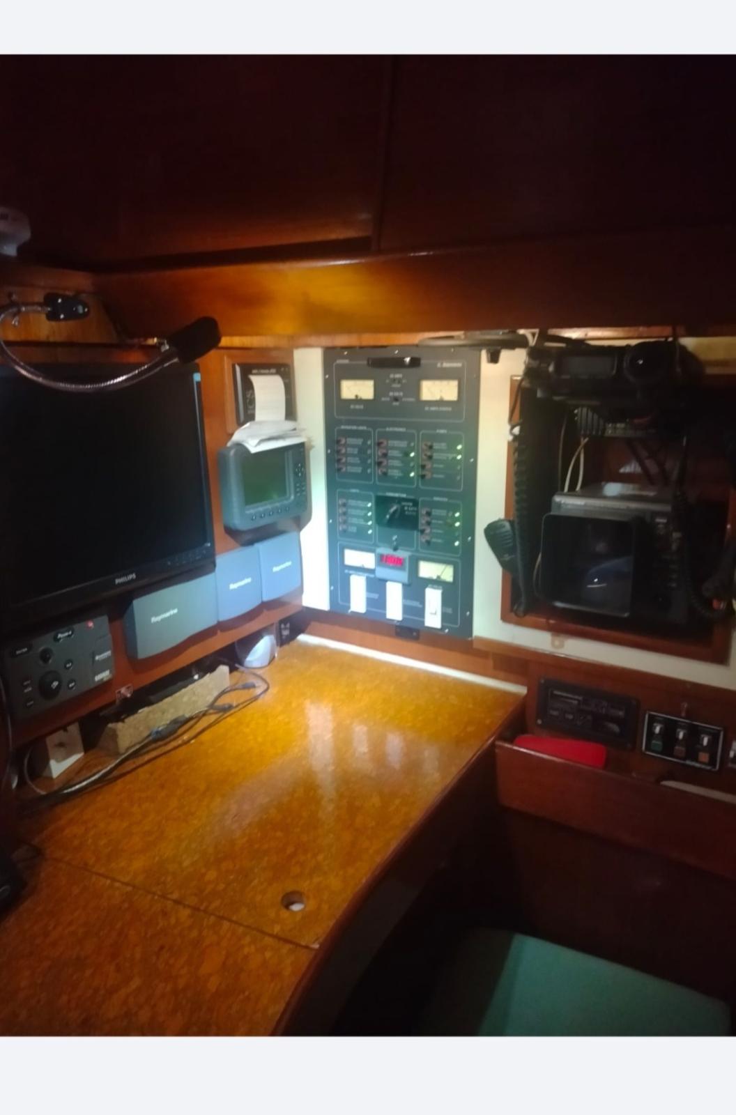 AIS (2010 NASA), Antenna radar (FURUNO), Epirb (2014), GPS (GEONAV 2010), MeteoFax (NAVTEX ICS), Pilota automatico (AUTOHELM 7001+ RAYMARINE 2012), Plotter (20"), Radar (FURUNO 2002 24 mg), Radio VHF (2012 ICOM), SSB (2003 YAESU).
