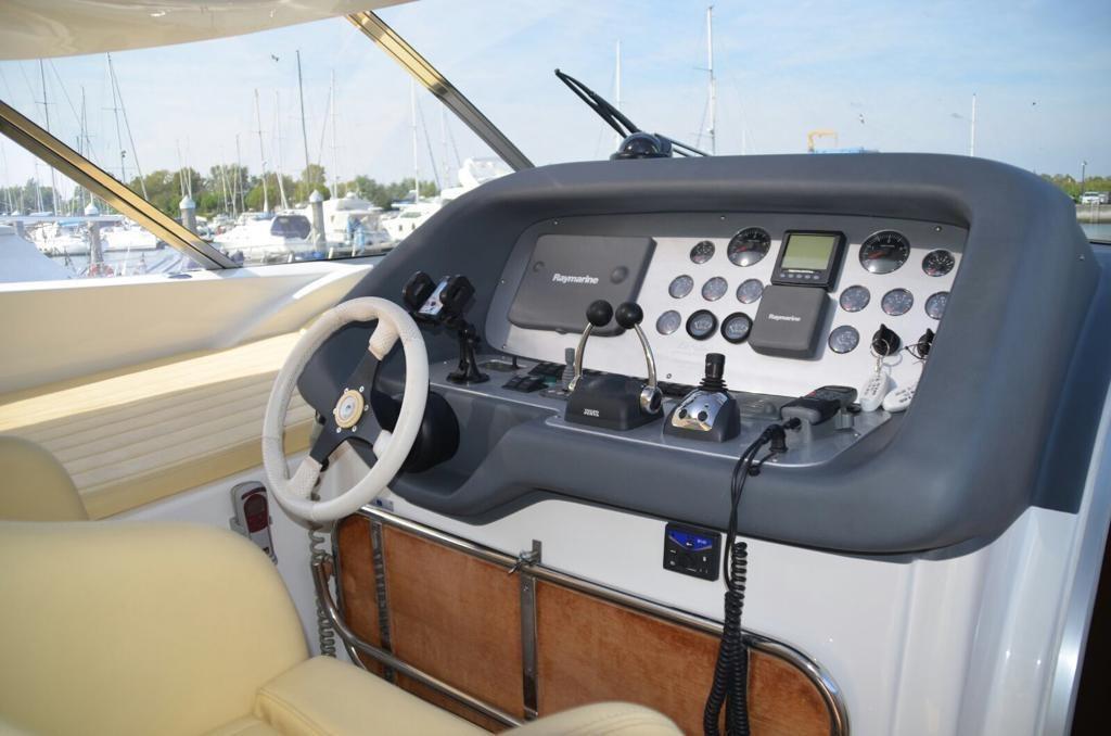 Comando motori elettronico, Ecoscandaglio (Raymarine), Joystick (IPS), Pilota automatico (Raymarine), Plotter (Raymarine), Radio VHF (Raymarine).