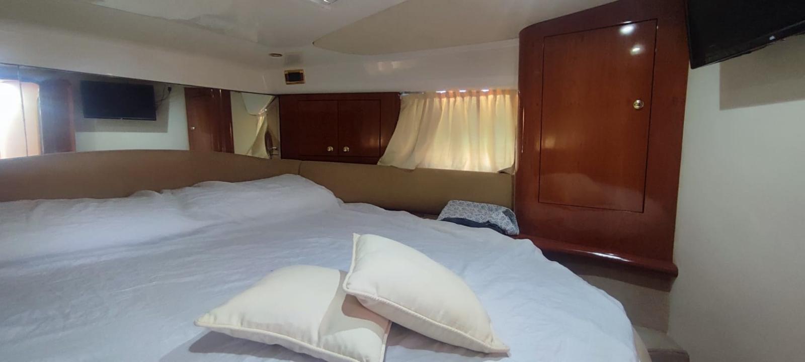 Imbarcazione con due CABINE e due BAGNI, doppia cucina INTERNA/ESTERNA, ben accessoriata sia per il supporto alla navigazione che per l'intrattenimento a bordo. VETRORESINA, ZAPPERIE INTERNE ED ESTERNE SI CONSERVANO IN OTTIME CONDIZIONI, motori REVISIONATI REGOLARMENTE anche se superate le 1000 ore denotano un OTTIMO STATO CONSERVATIVO, in sentina vi è completa assenza di residui di olio e salsedine.