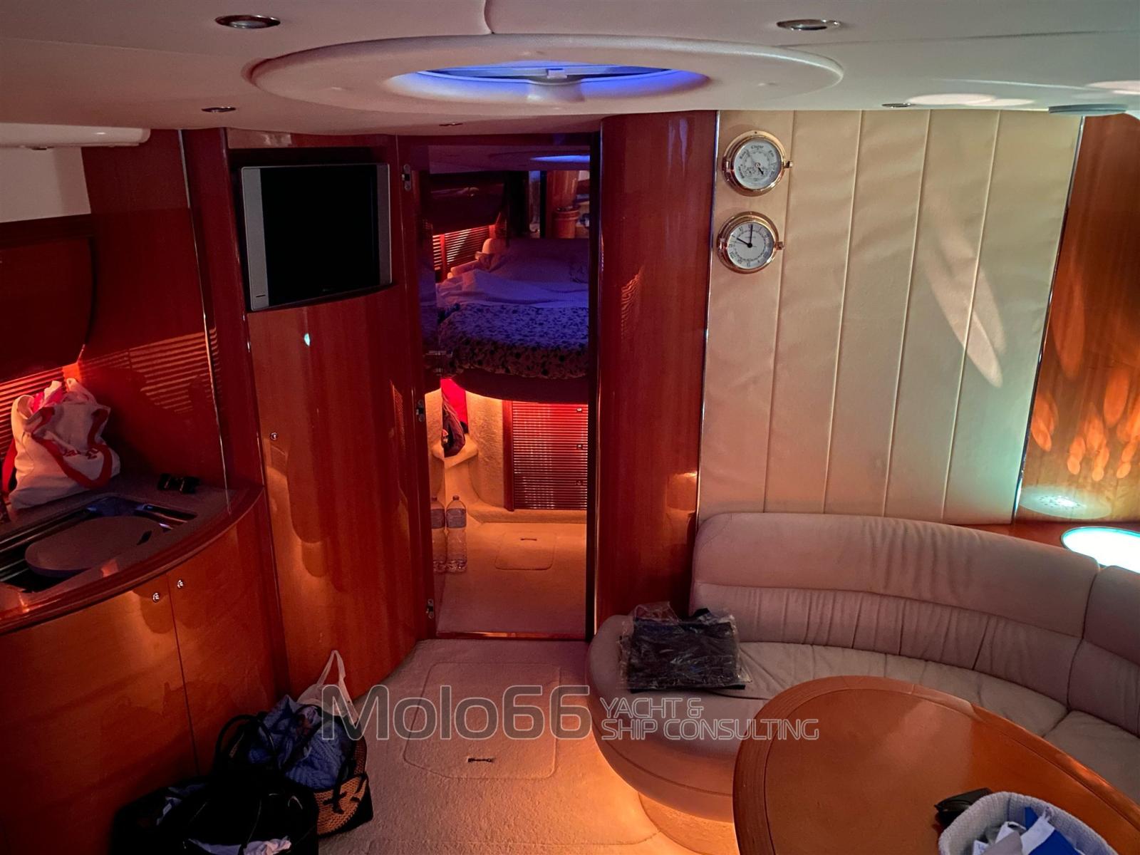 Allarme motore, Allarme sentina, Apertura Vano Motore Elettrica, Autoclave, Colorazione speciale (Blu Navy), Doccia esterna, Faro orientabile, Flap idraulici (N°2), Garage per tender, Impianto antincendio, Luci di cortesia, Passerella (IDRAULICA), Piattaforma, Pompa di sentina automatica, Pozzetto Teak, Presa 220V banchina, Raddrizzatore, Rollbar, Salpa Ancore Elettrico, Scaletta da bagno, Tavolo pozzetto, Tromba.