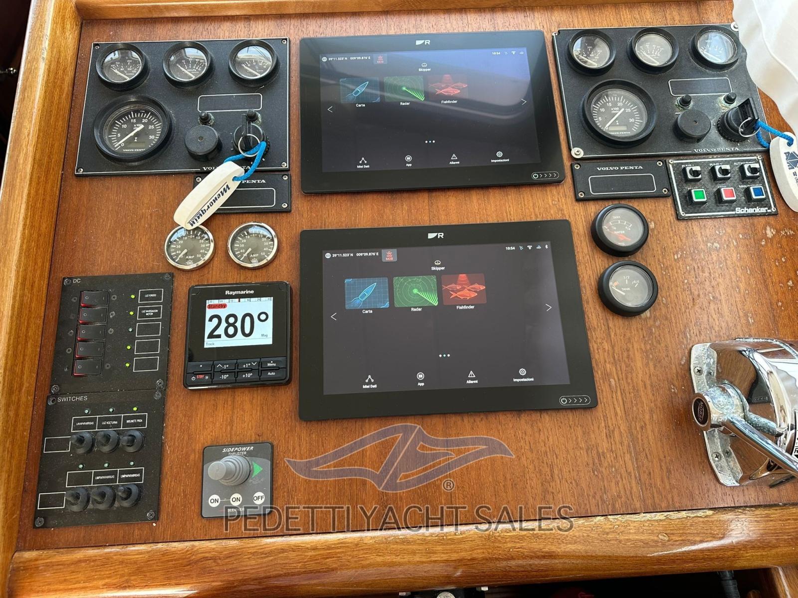 Angolo barra, Contametri catena, DSC vhf (Ray 91 Black), Ecoscandaglio (Raymarine Axiom RV 200), 2 Plotter con antenna GPS (Raymarine Axiom 12), Radar (Quantum Q 24D).