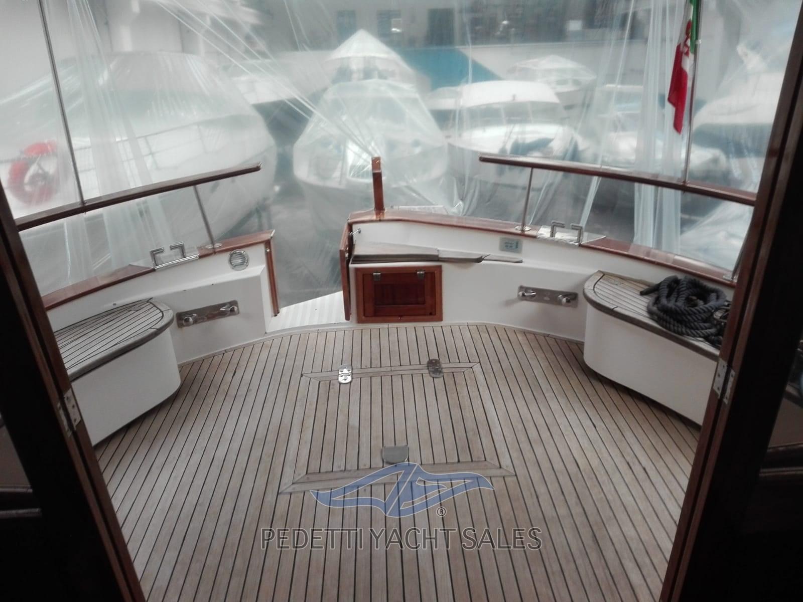 Allarme motore, Allarme sentina, Autoclave, 6 Batterie, Doccia esterna, 2 Elica di rispetto, Passerella (Idraulica), Piattaforma (teak nuovo), 3 Pompa di sentina automatica, Ponte in teak, Pozzetto Teak, Presa 220V banchina, Salpa Ancore Elettrico (Lofrans da 1500 watt), Scaletta da bagno, Tavolo pozzetto.