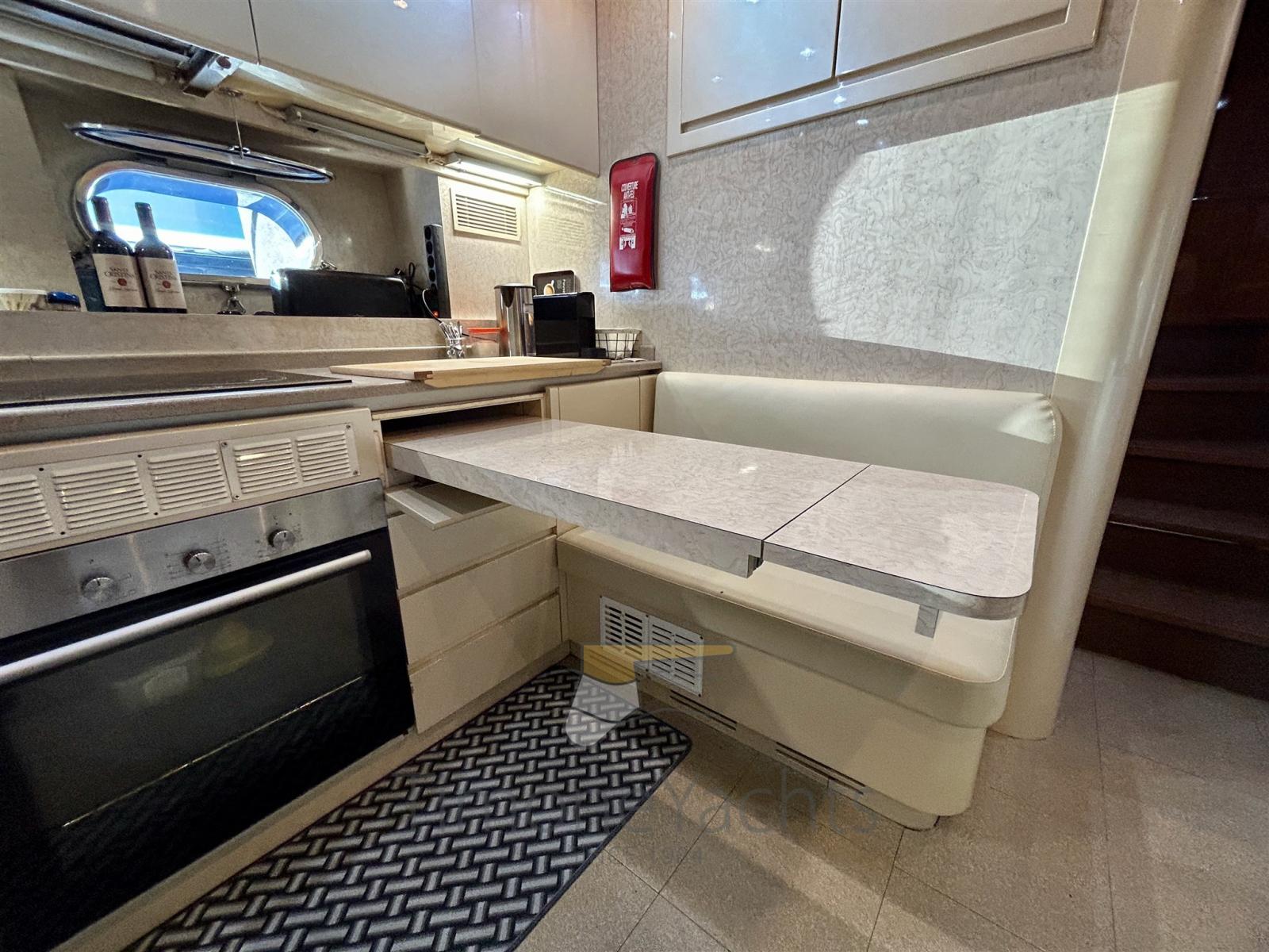 Boiler, Cassaforte, Clima reversibile, Dimmer per Luci, Dissalatore, Impianto acque nere, Pavimento interno in legno, Prese interne 12v, Prese interne 220v, Serbatoio Acque Nere, Telecamera, 4 WC marino elettrico (+ 2 crew).
