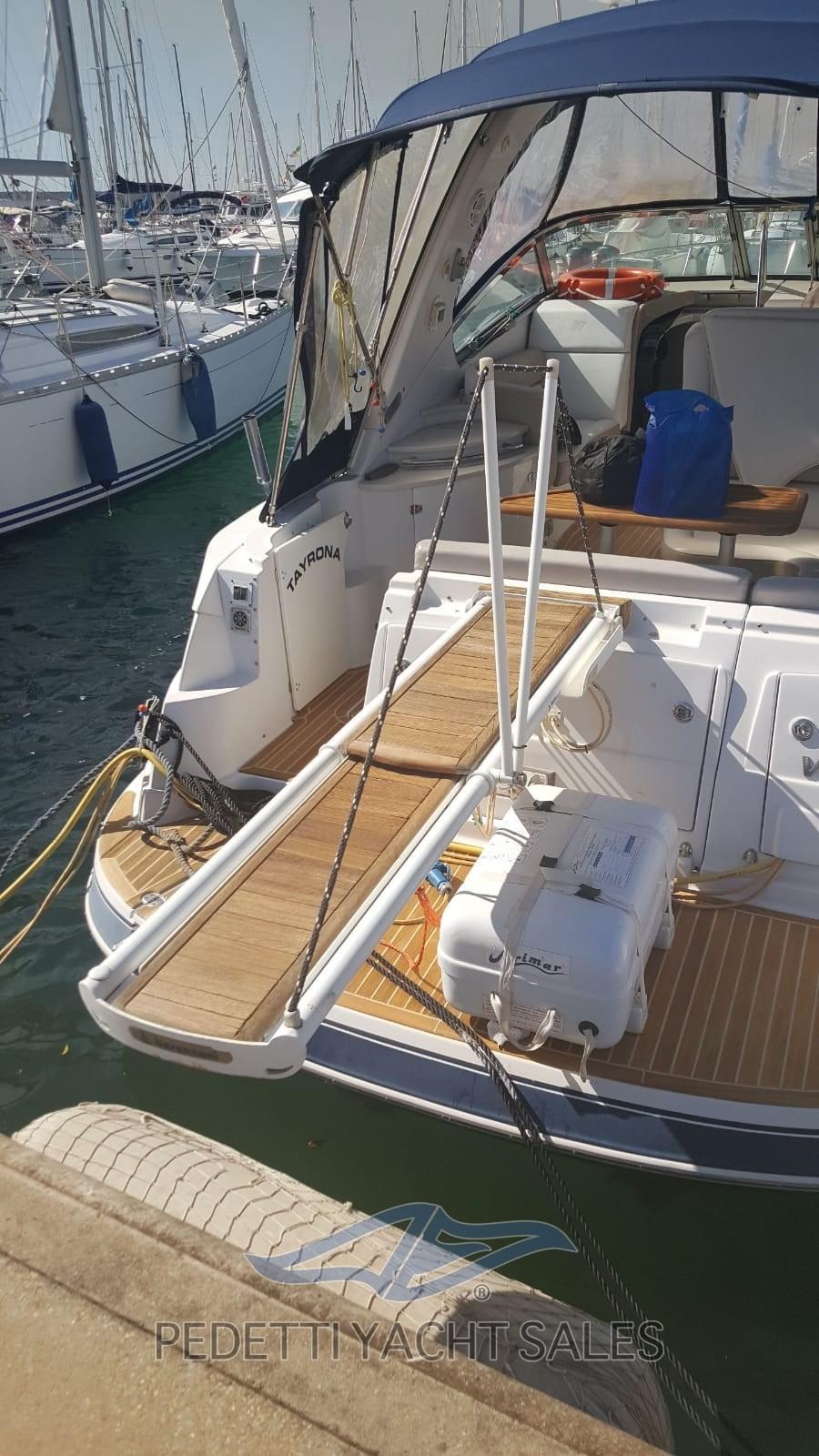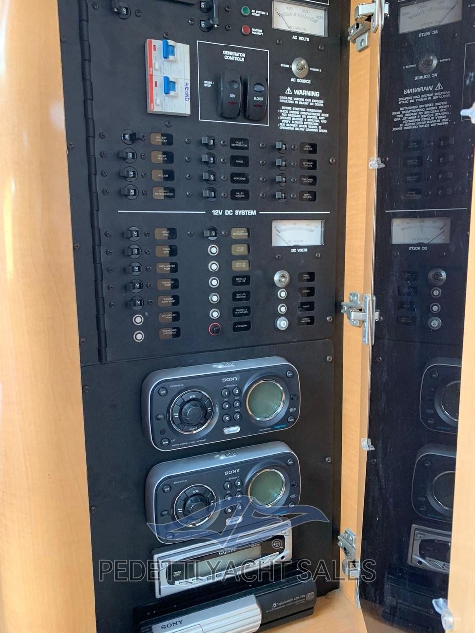 Allarme fumo/gas, Allarme motore, Allarme sentina, Autoclave, 4 Batterie (105 amp), Doccia esterna, Faro orientabile, Flap elettrici, Impianto antincendio, Luci di cortesia, Passerella (Besenzoni), 3 Pompa di sentina automatica, 3 Pompa di sentina elettrica, Pompa di sentina manuale, Pozzetto Teak, Presa 220V banchina, Rollbar, Salpa Ancore Elettrico, Scaletta da bagno, Tavolo pozzetto (Teak), Tromba.