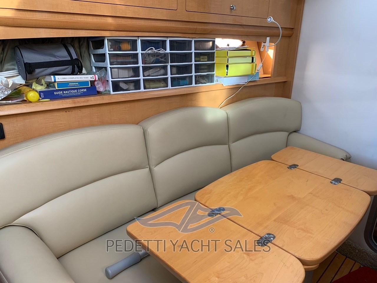 Angolo barra, Antenna radar (Raymarine radome), Computer di bordo, DSC vhf, Pilota automatico (Raymarine), Plotter con antenna GPS (Raymarine C80), Radio VHF (Raymarine).