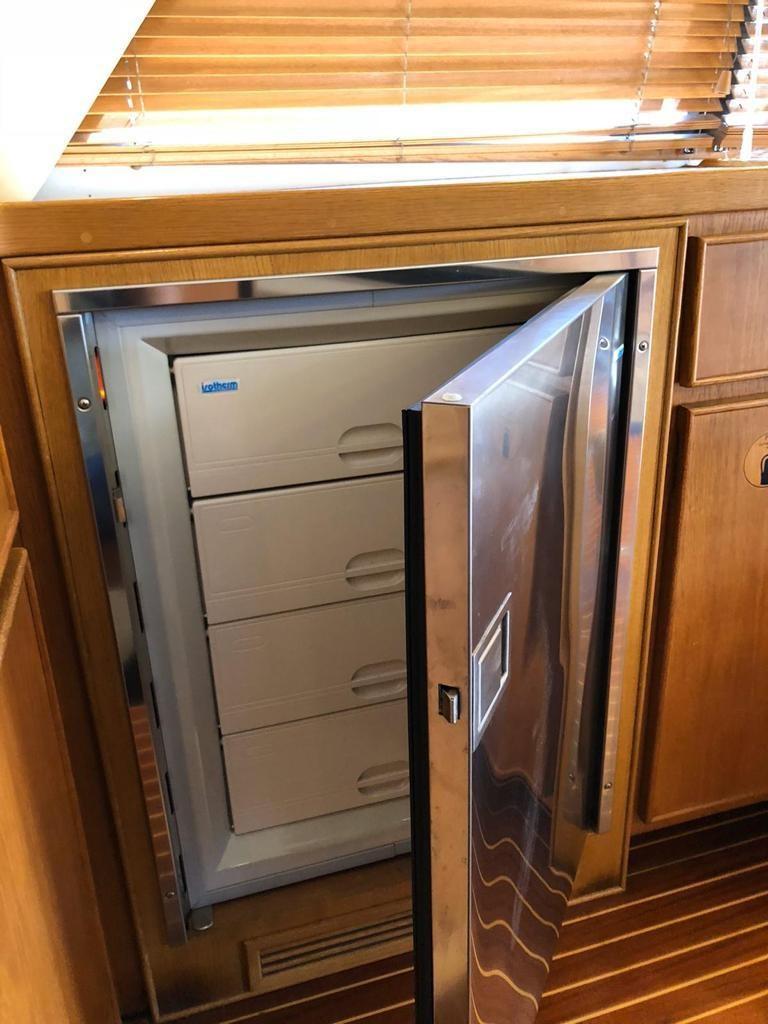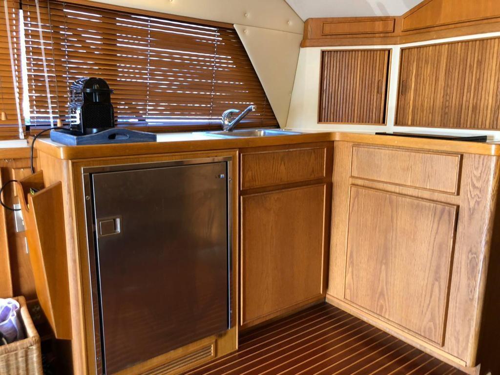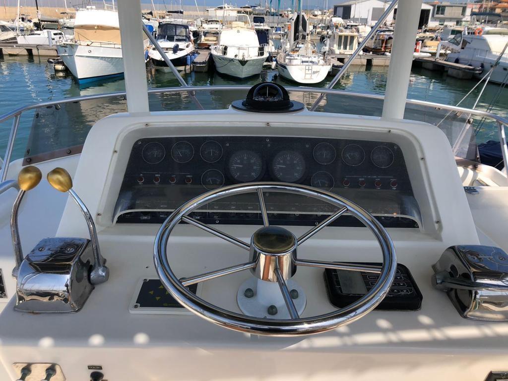 BERTRAM 37 CONVERTIBILE Costruzione 1987 immatricolazione 1990 Motori 2 Caterpillar 3208 da 375 cv ore 300 dalla revisione Serbatoio acqua 450 lt 70 mt catena ancora zincata Impianto 220 volt, 120 volt e 12 volt Generatore 8 kw Pompe sentine automatiche 5 settori 4 sedie regista piu’ tavolo per pozzetto di poppa Tender Honda 2,40 mt con 2,3 cv Ancora di rispetto Eliche di rispetto Cinghie e ricambi di rispetto Passerella 2500 lt carburante Frigo e frizer Impianto luci a led interno 6 estintori più impianto antincendio Wc con box doccia separato Aria condizionata freddo/caldo Spiaggetta poppa Boiler Cuscinerie e copri oblo’ Prese 12 volt Prese 220 Prese 120 volt Stabilizzatore di corrente GPS VHF Raymarine Radar Pilota automatico Stereo Faro profondità Ttop Fly con bimini e chiusura completa Serbatoio acque nere Caricabatterie Flaps idraulici Manuali, documenti e piante mpianti originali Cabina armatoriale a prua con ampio letto matrimoniale aria condizionata e pavimento in teak Cabina ospiti a centro barca doppia con letti sovrapposti aria condizionata e pavimento in teak Ampio bagno con wc elettrico e box doccia separato Ampia dinette trasformabile con mobili in teak,divano a “C”, aria condizionata e pavimento in teak Cucina a livello con ampio piano da lavoro attrezzata con 2 frigoriferi, lavello, forno microonde, tostapane, macchina caffè a cialde Mobile cucina esterno Stoviglie e biancheria su misura Parquet in teak salone e cabine. Salpa ancora elettrico Doccia esterna Pompa acqua esterna Doppia scaletta bagno Fari di illuminazione notturna a poppa e sul fly Zattera