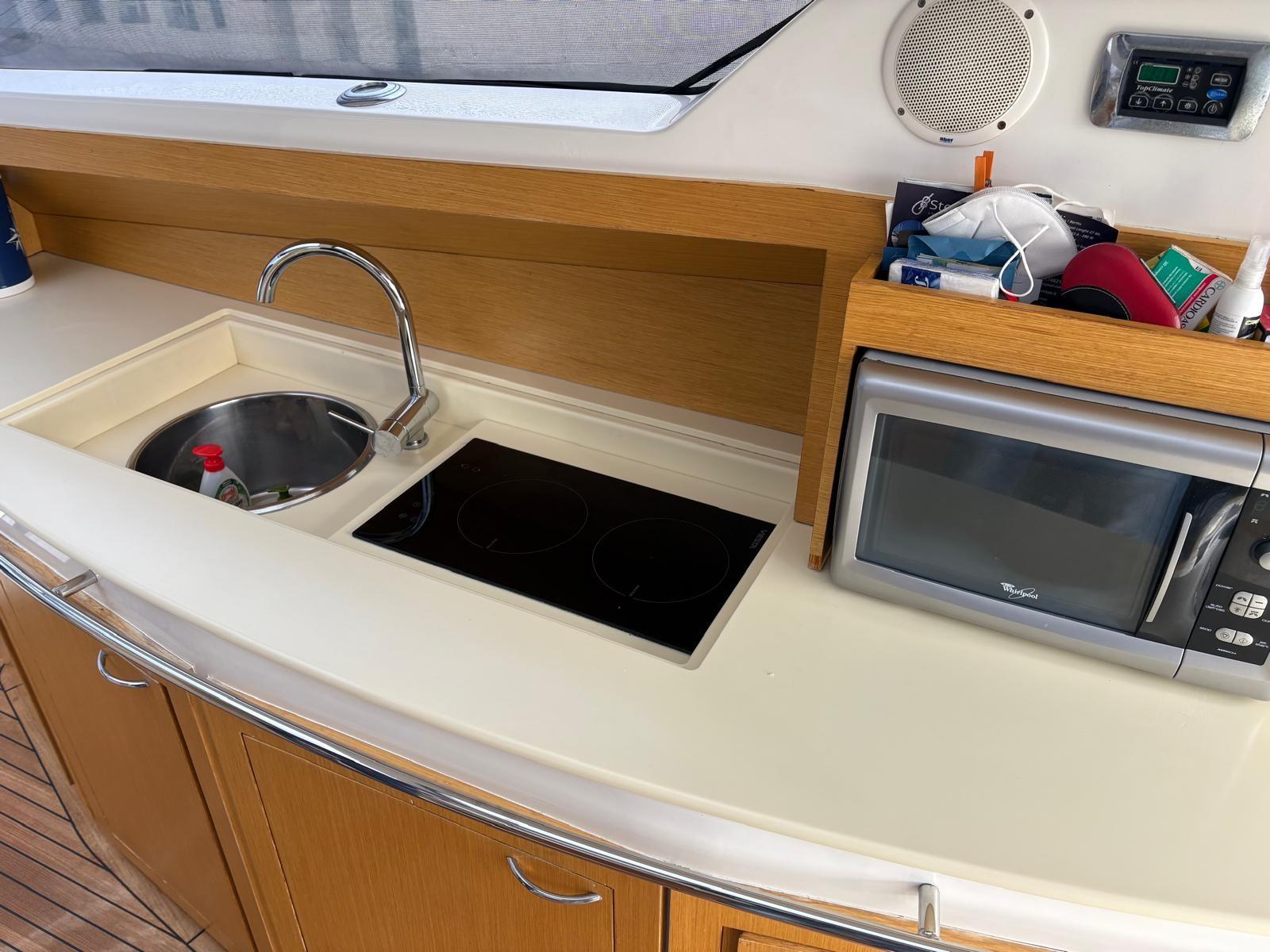 Allarme motore, Allarme sentina, Autoclave, Doccia esterna, Faro orientabile, Garage per tender, Hard top, Impianto antincendio, Indicatori Flaps, Lavandino nel Pozzetto, Luci di cortesia, Passerella, Piattaforma, Pompa di sentina automatica, Pompa di sentina manuale, Pozzetto Teak, Presa 220V banchina, Presa acqua banchina, Raddrizzatore, Salpa Ancore Elettrico, Scaletta da bagno, Tavolo pozzetto.