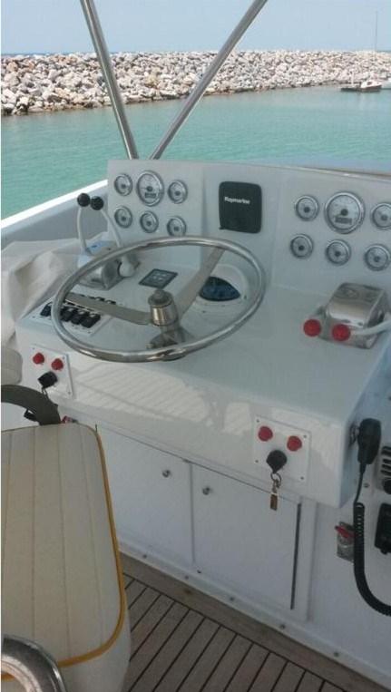Allarme motore, Autoclave, 4 Batterie (120 Sh), Colorazione speciale, Doccia esterna, Faro orientabile, Flap idraulici, Lavandino nel Pozzetto, Passerella, Piattaforma, Pompa di sentina manuale, Porta ingresso, Pozzetto Teak, Presa 220V banchina, Presa acqua banchina, Raddrizzatore, Salpa Ancore Elettrico, Scaletta da bagno, Tavolo pozzetto (smontabile 12 px), Tender.