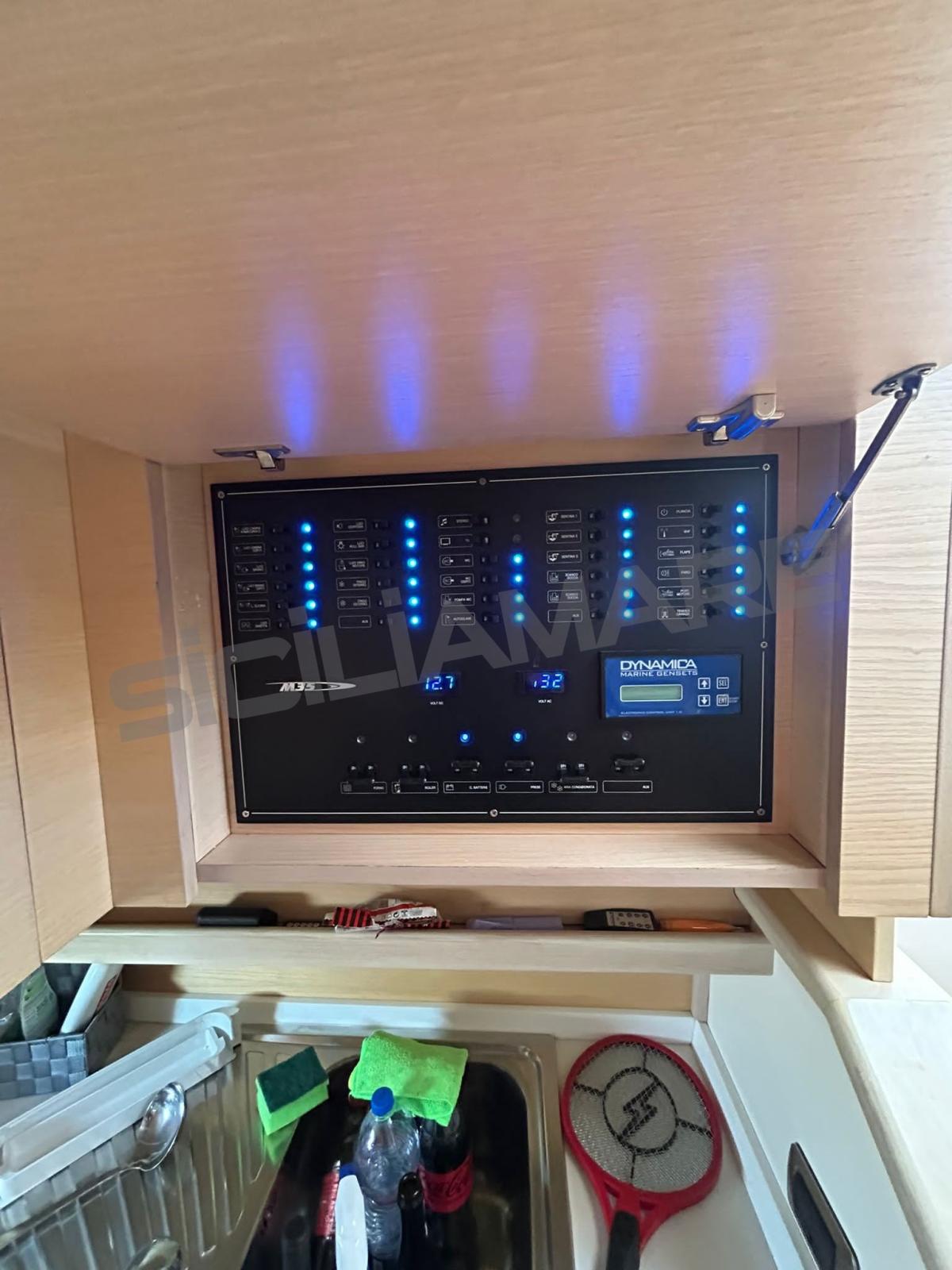 Allarme motore, Autoclave, Doccia esterna, Faro orientabile, Flap elettrici, Hard top, Lavandino nel Pozzetto, Luci di cortesia, Luci subacquee, Passerella (Idraulica a scomparsa), Piattaforma, Pozzetto Teak, Presa 220V banchina, Rollbar, Salpa Ancore Elettrico, Scaletta da bagno, Tavolo pozzetto, Tavolo Salone Abbattibile.